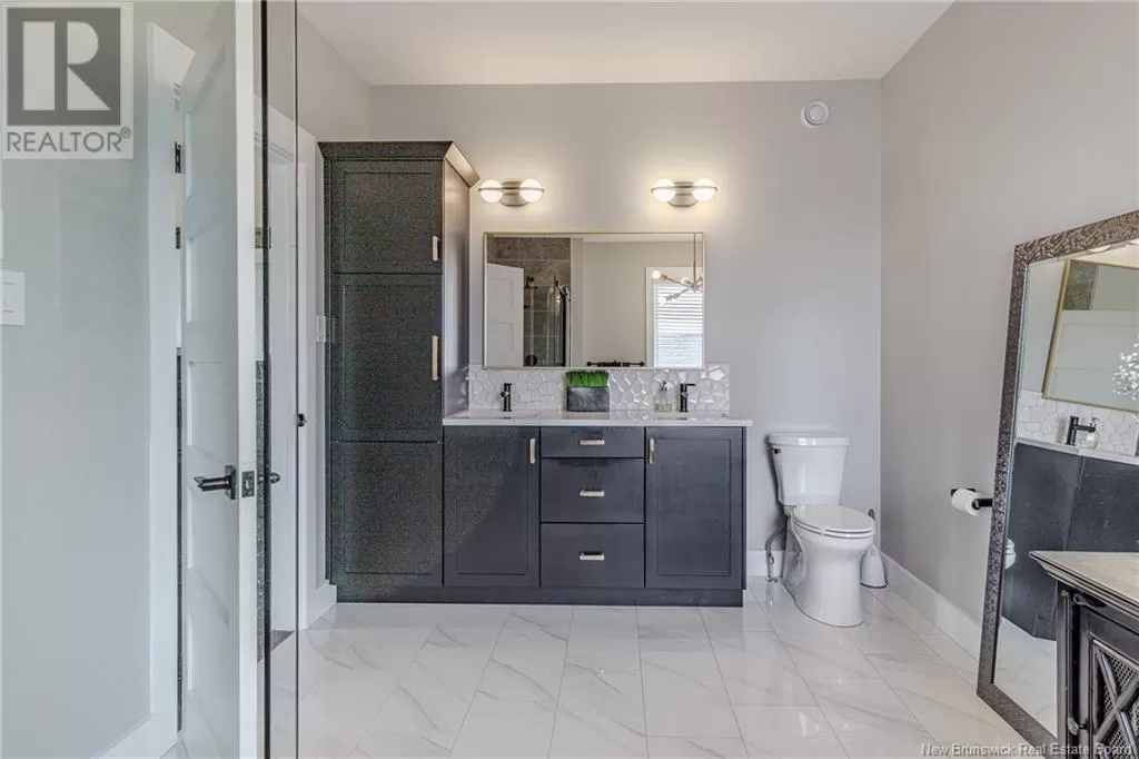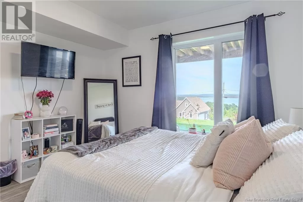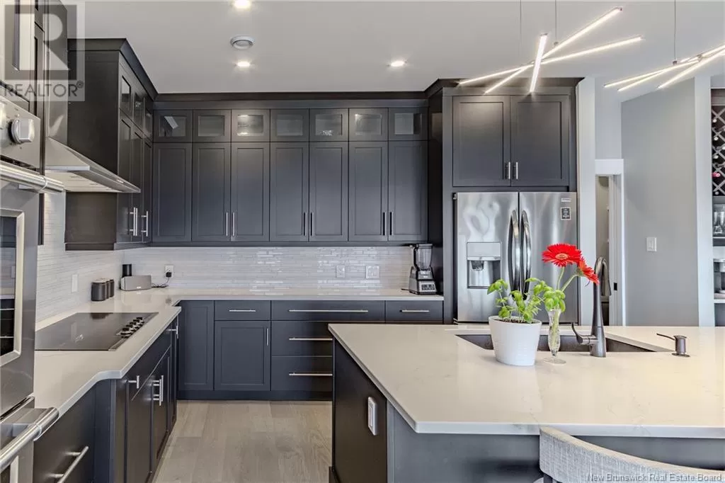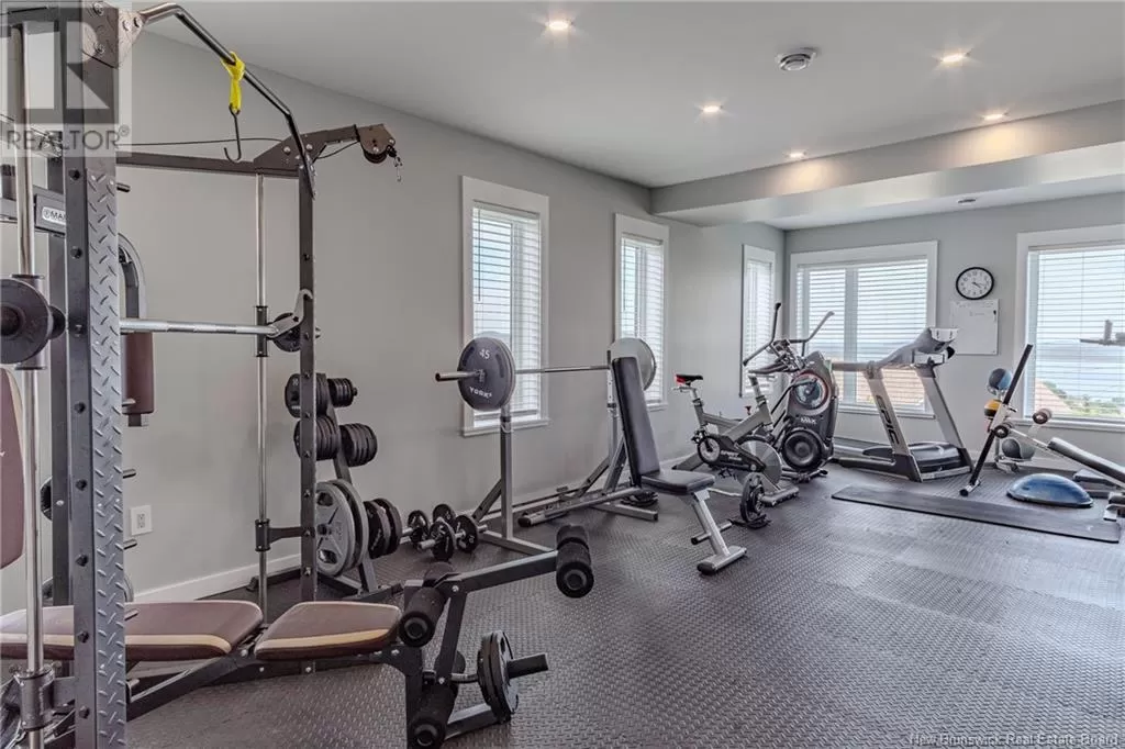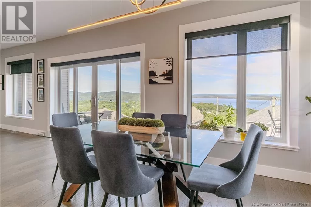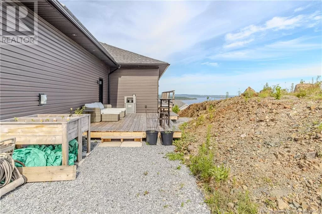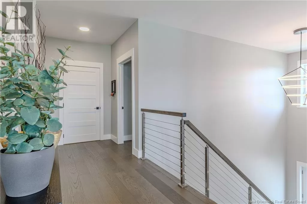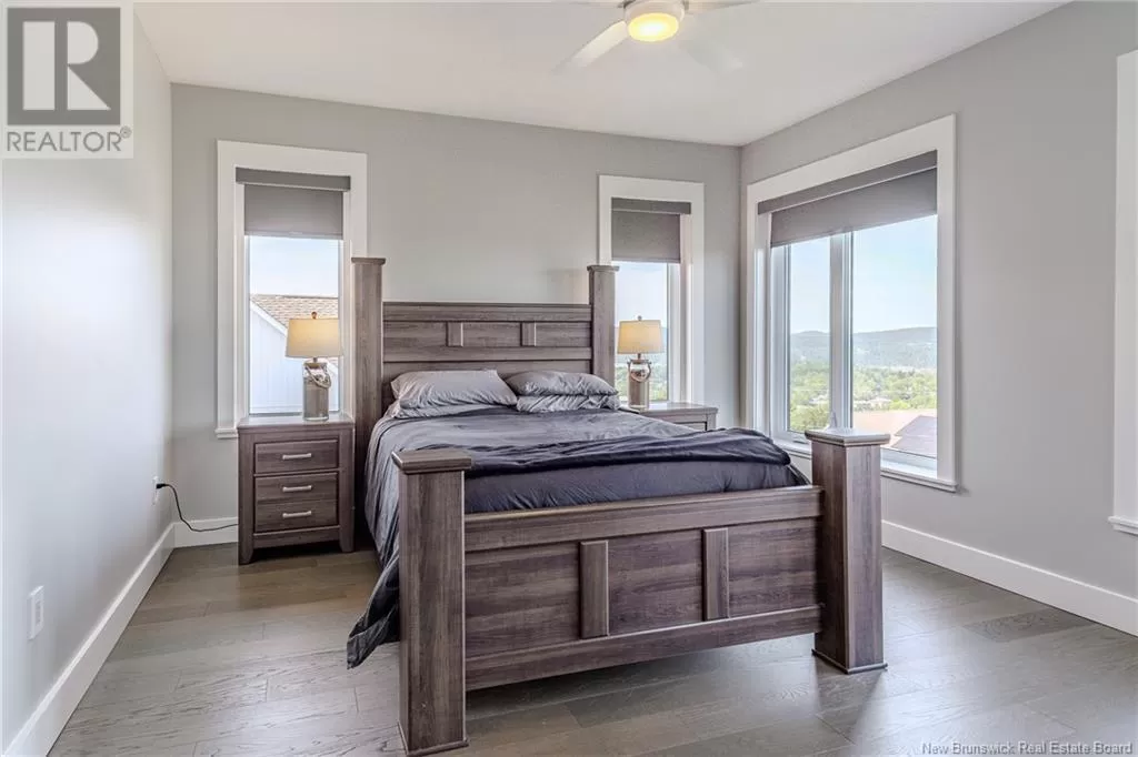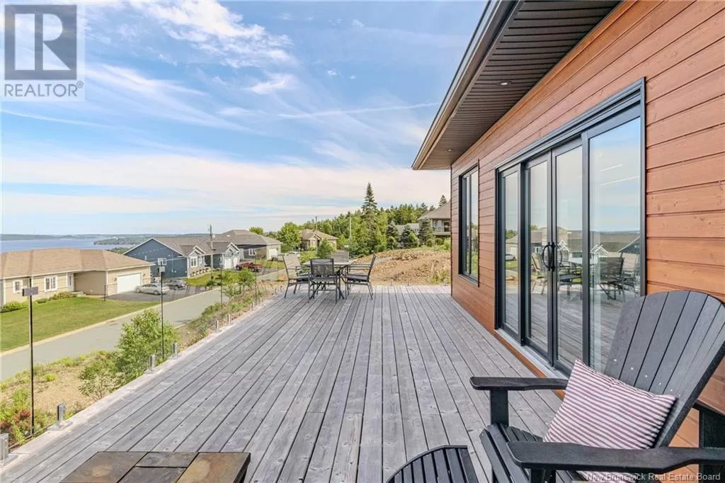 This custom-built, modern, executive-style home is constructed with ICF for maximum efficiency. This home features an amazing 270-degree view of the Saint John River, where watching weekend boaters, sailboat regattas, and even storms roll in is picturesque and relaxing. Large windows provide an unobstructed view of the river from almost every room in the house, including the living room, kitchen, primary bedroom, theater room, downstairs bedroom, and gym (or fifth bedroom). This home offers 4,000 sq. ft. of finished space, with five large bedrooms and three full bathrooms. The front entry is an impressive focal point in this house. The space features a 22-foot ceiling, a custom solid oak stair system, sleek cable-railing banisters, and built-in LED nightlights. The connected, 2-car garage is just under 1,000 sq. ft., wired for 100 amps, with an 11.5-foot ceiling for great overhead storage. Other features include a high-efficiency heat pump for maximum heating and air conditioning comfort, a nine-foot ceiling on both levels, an in-ground lawn watering system, blackout blinds, and custom window coverings, as well as an electrical hookup for a sauna or hot tub behind the garage. Live in a net-zero home! A 12.5 kW rooftop solar system was recently added to this house. Track energy consumption of appliances and fixtures through an energy monitoring system and view solar production through the SolarEdge app to see how much power is being generated. (id:27476)
