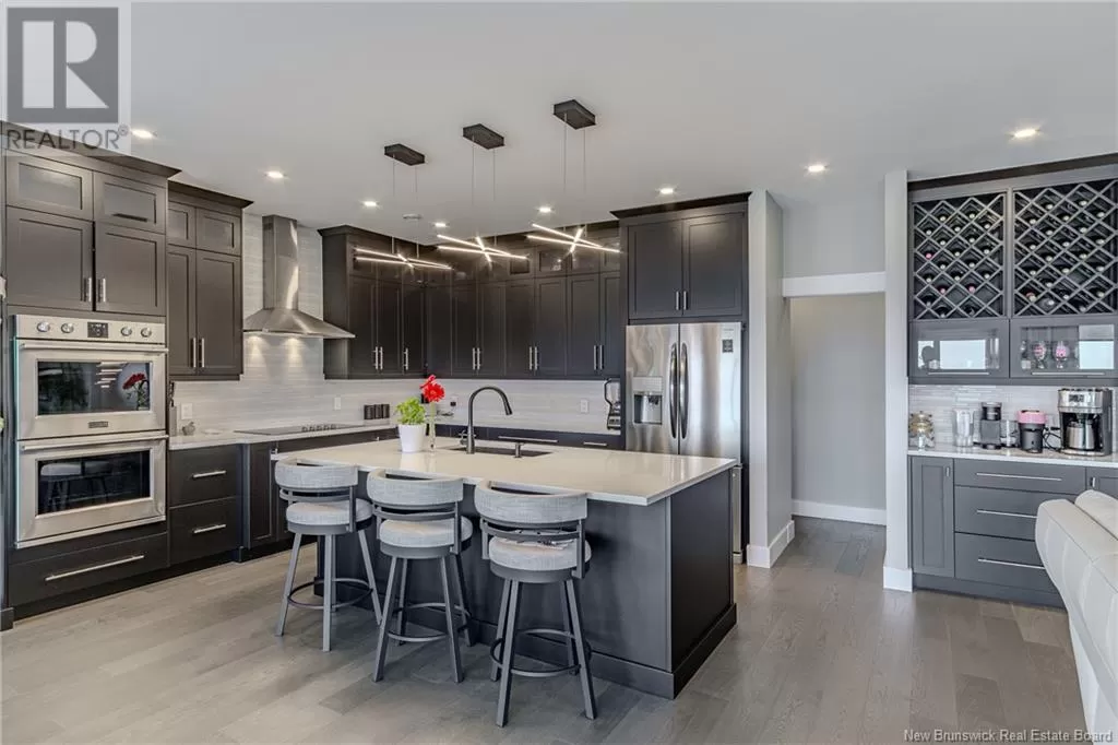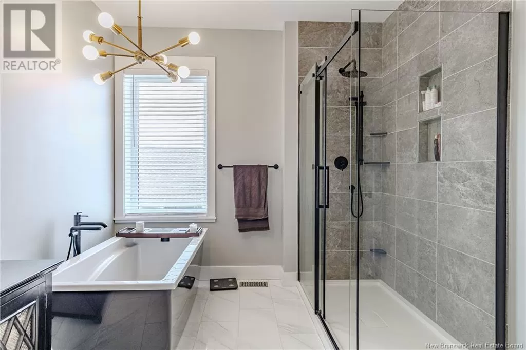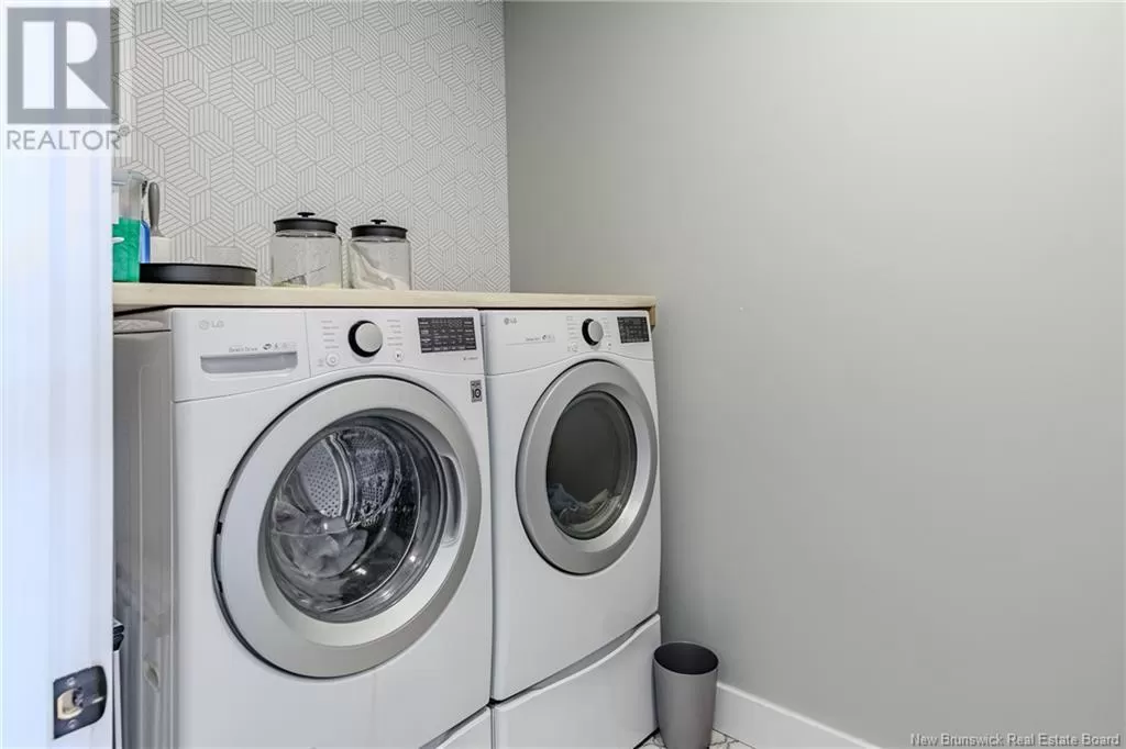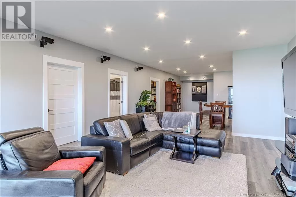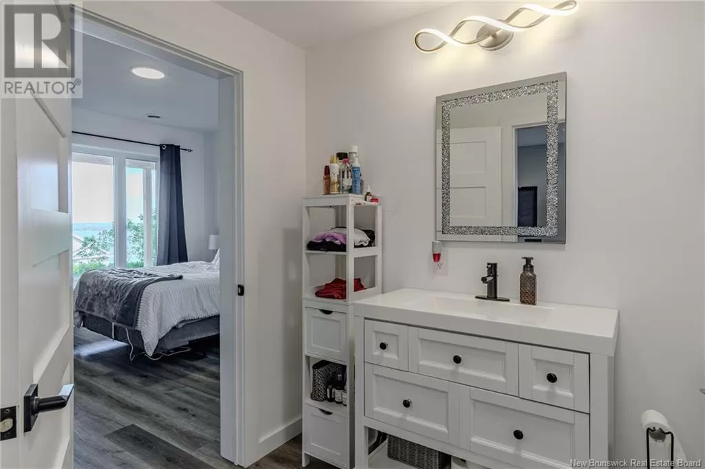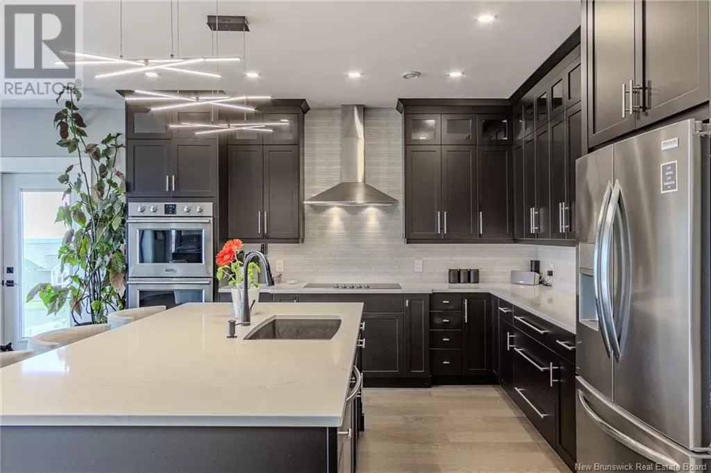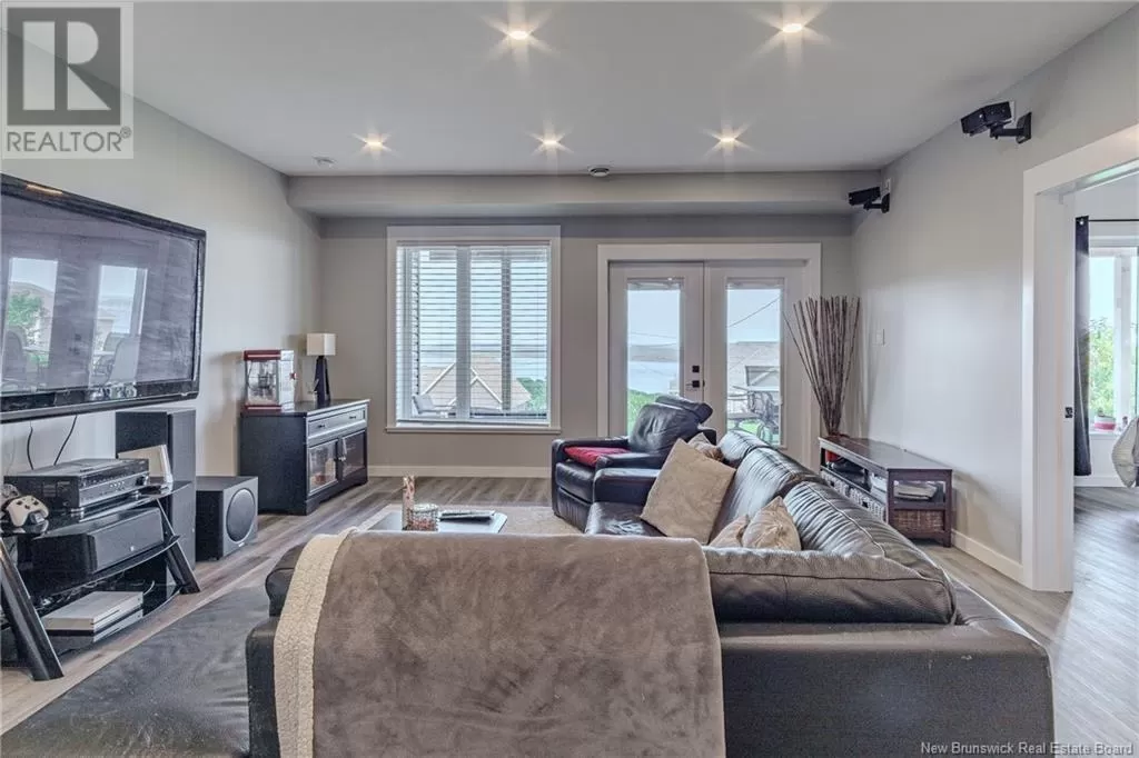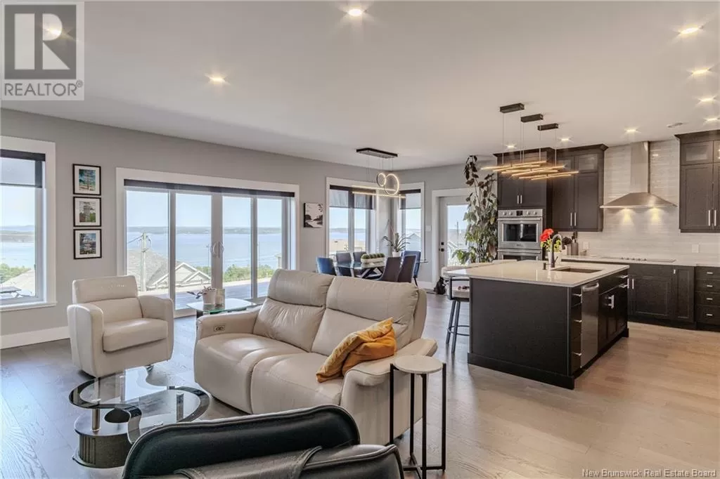 This custom-built, modern, executive-style home is constructed with ICF for maximum efficiency. This home features an amazing 270-degree view of the Saint John River, where watching weekend boaters, sailboat regattas, and even storms roll in is picturesque and relaxing. Large windows provide an unobstructed view of the river from almost every room in the house, including the living room, kitchen, primary bedroom, theater room, downstairs bedroom, and gym (or fifth bedroom). This home offers 4,000 sq. ft. of finished space, with five large bedrooms and three full bathrooms. The front entry is an impressive focal point in this house. The space features a 22-foot ceiling, a custom solid oak stair system, sleek cable-railing banisters, and built-in LED nightlights. The connected, 2-car garage is just under 1,000 sq. ft., wired for 100 amps, with an 11.5-foot ceiling for great overhead storage. Other features include a high-efficiency heat pump for maximum heating and air conditioning comfort, a nine-foot ceiling on both levels, an in-ground lawn watering system, blackout blinds, and custom window coverings, as well as an electrical hookup for a sauna or hot tub behind the garage. Live in a net-zero home! A 12.5 kW rooftop solar system was recently added to this house. Track energy consumption of appliances and fixtures through an energy monitoring system and view solar production through the SolarEdge app to see how much power is being generated. (id:27476)