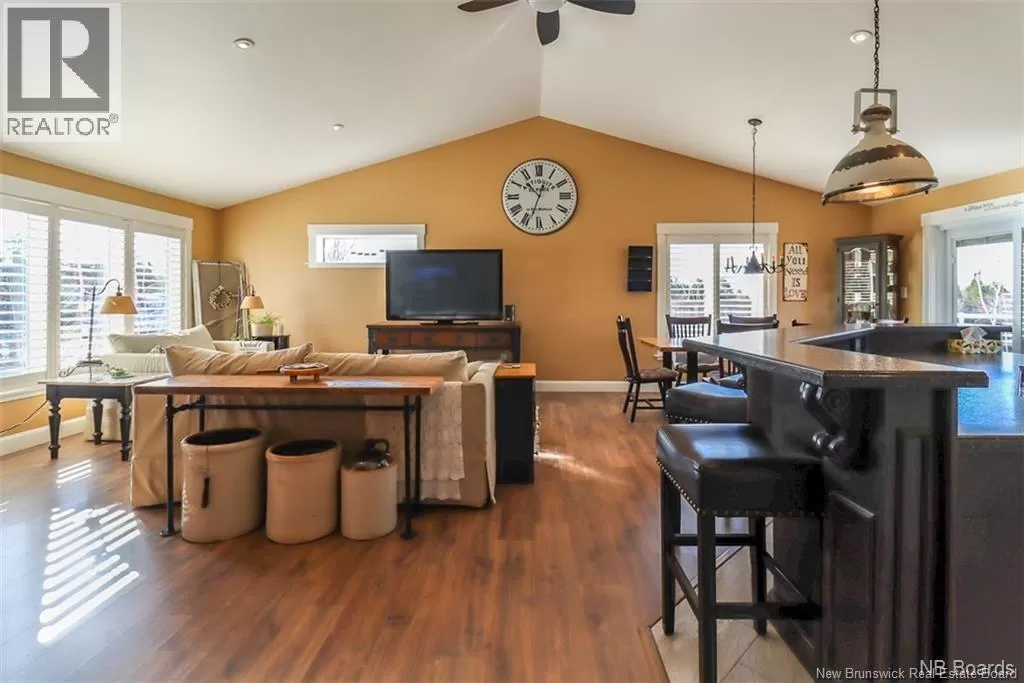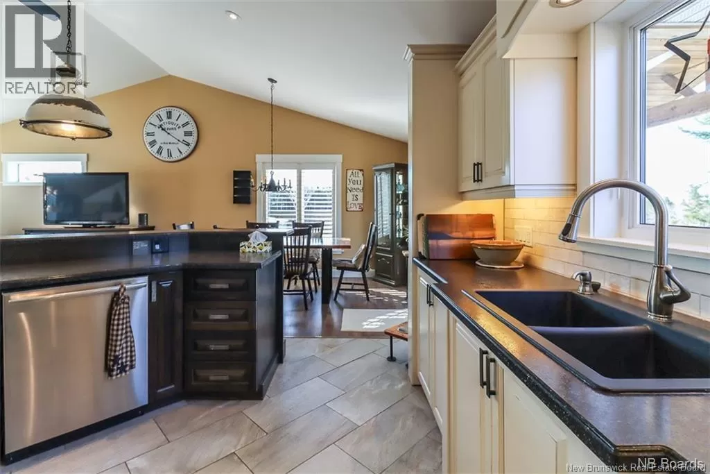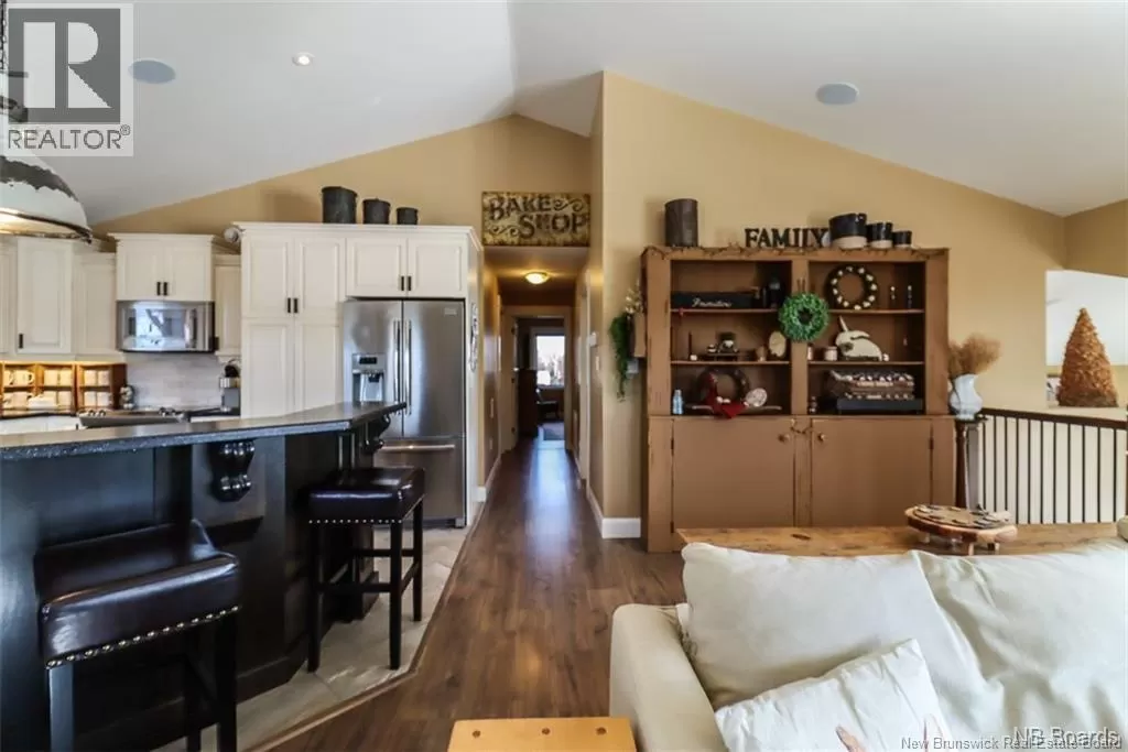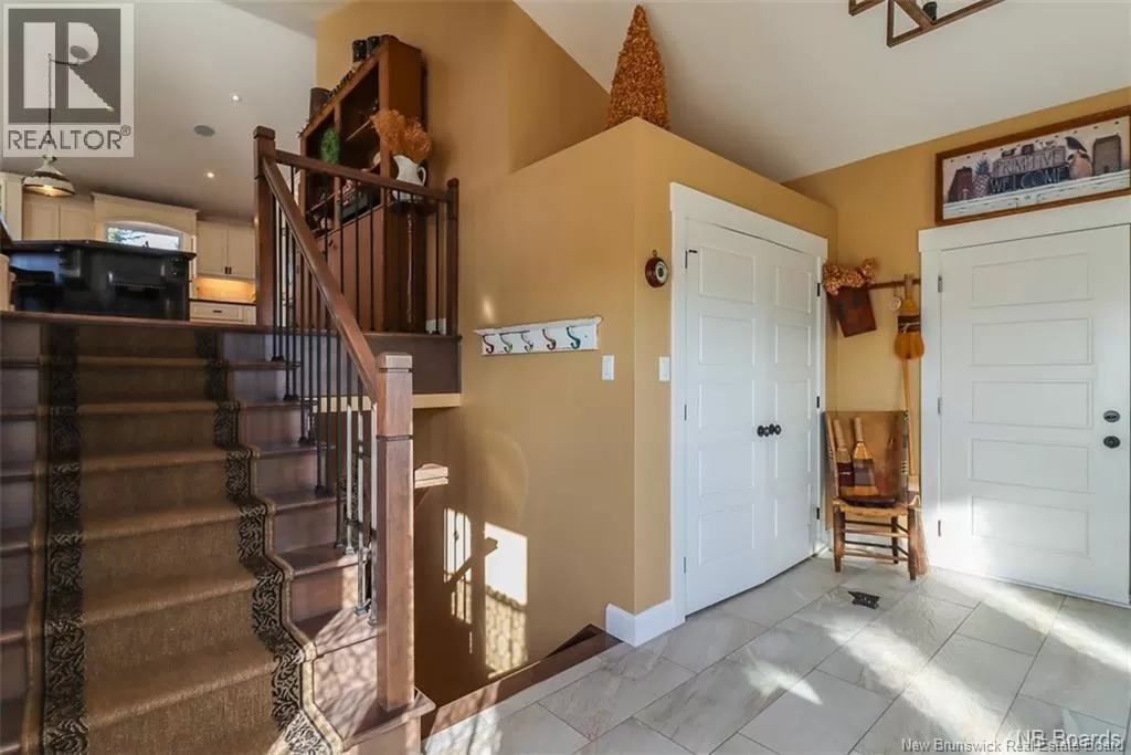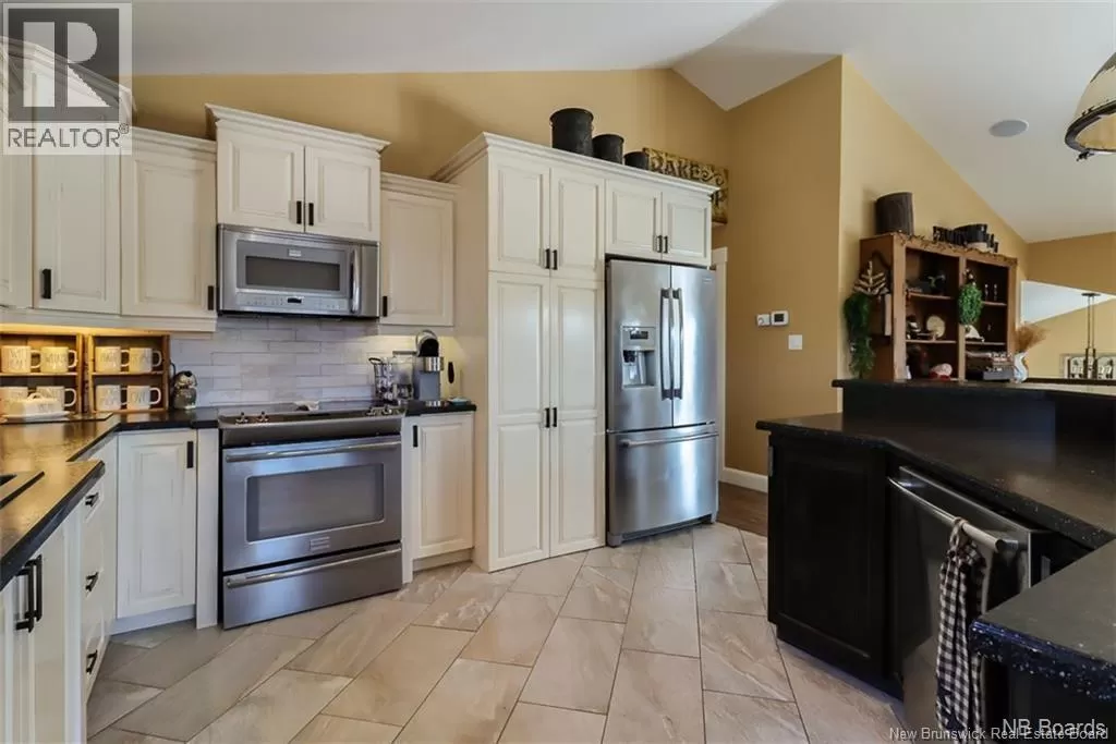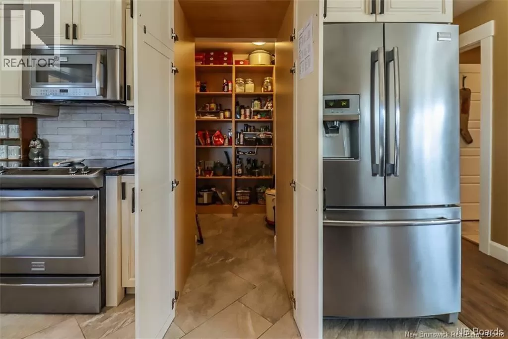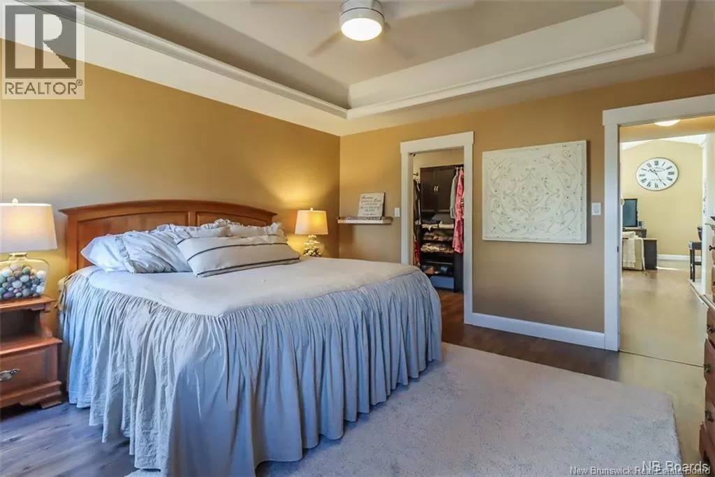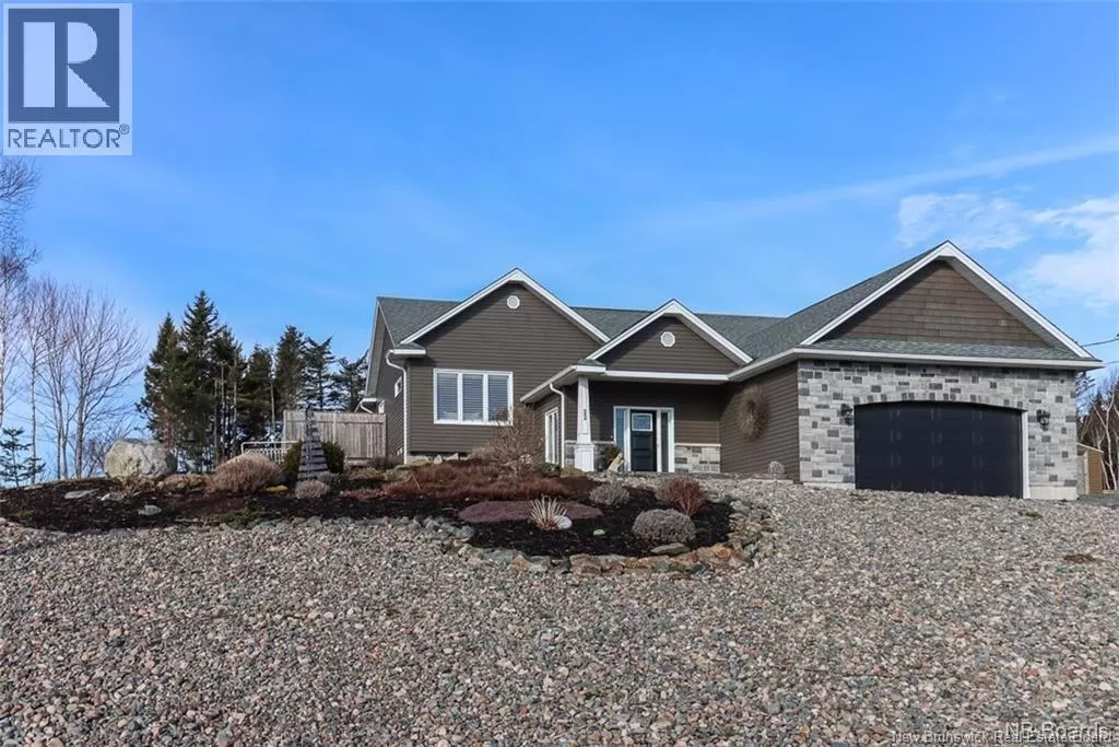 Grand Bay take Woolastook to June to Florence to Maplecrest Stunning designed home with attached double garage and Loft. Located in prestigious neighbourhood in Grand Bay Westfield. Double paved driveway will lead you to a welcoming large front deck entrance with overhang to enjoy morning or evening coffee. Enter into spacious split entry foyer and you will be impressed by the vaulted ceilings and Great room with lots of windows and lighting. Much thought has been put into this custom design including Gourmet Kitchen with Island and hidden walk in pantry. Main floor with laundry room bathroom, 2nd bedroom and primary bedroom complete with gorgeous ensuite. Lower level for additional family room, 3rd bedroom, craft room or possible 4th bedroom. Many Added details to this home such as Ducted heat pump system, built in speakers, ensuite with heated floor,Custom California blinds, heated garage, plugin for generator, rollout drawers in kitchen cabinets, Hickory Laminate flooring throughout main level. Covered back deck overlooking fenced in back yard . (id:27476)