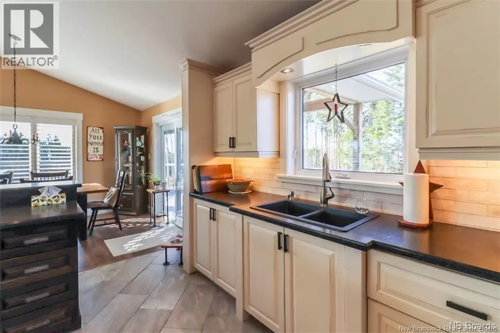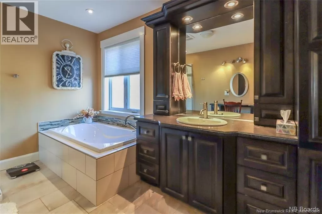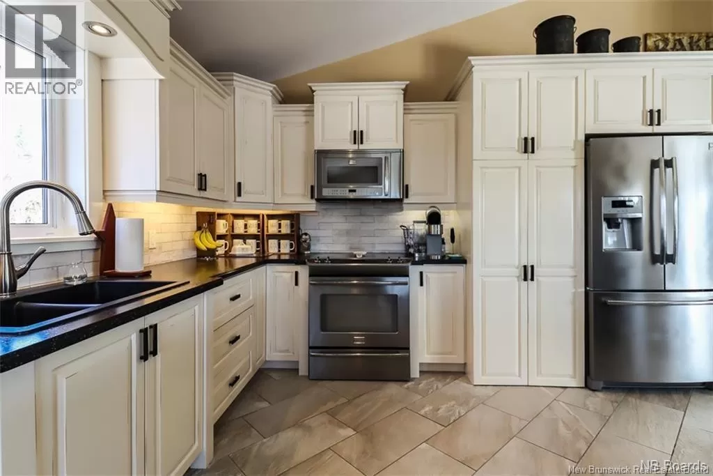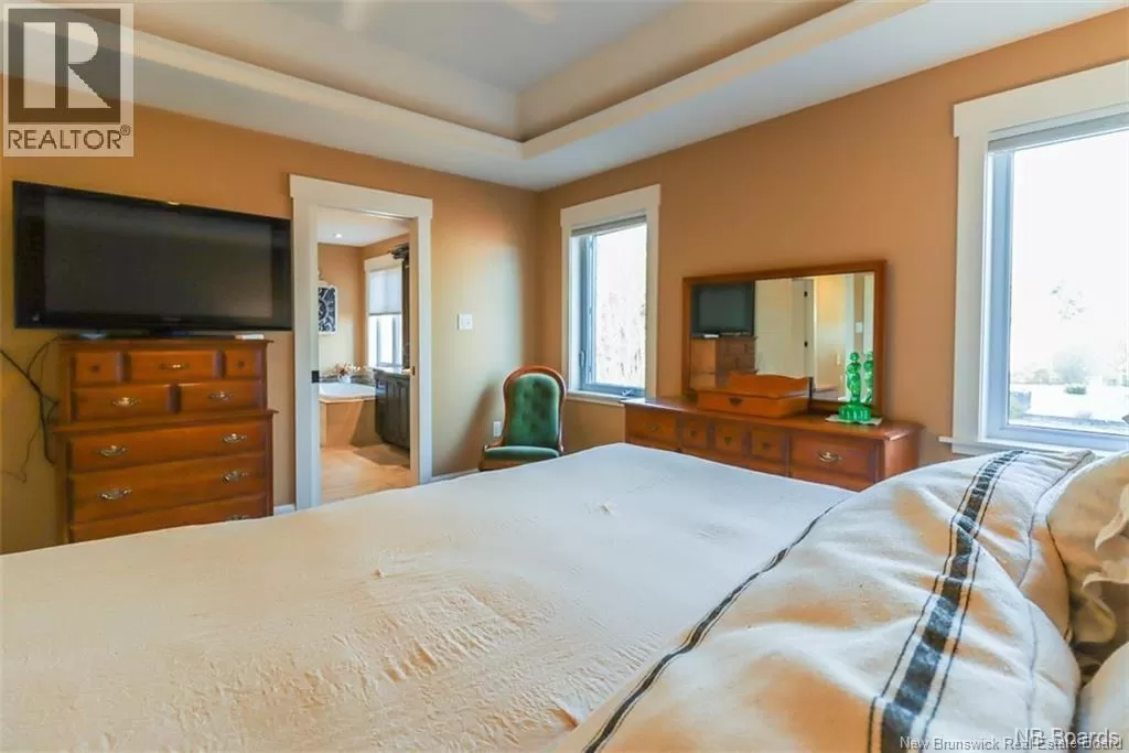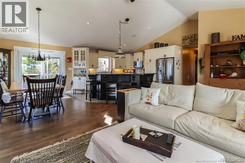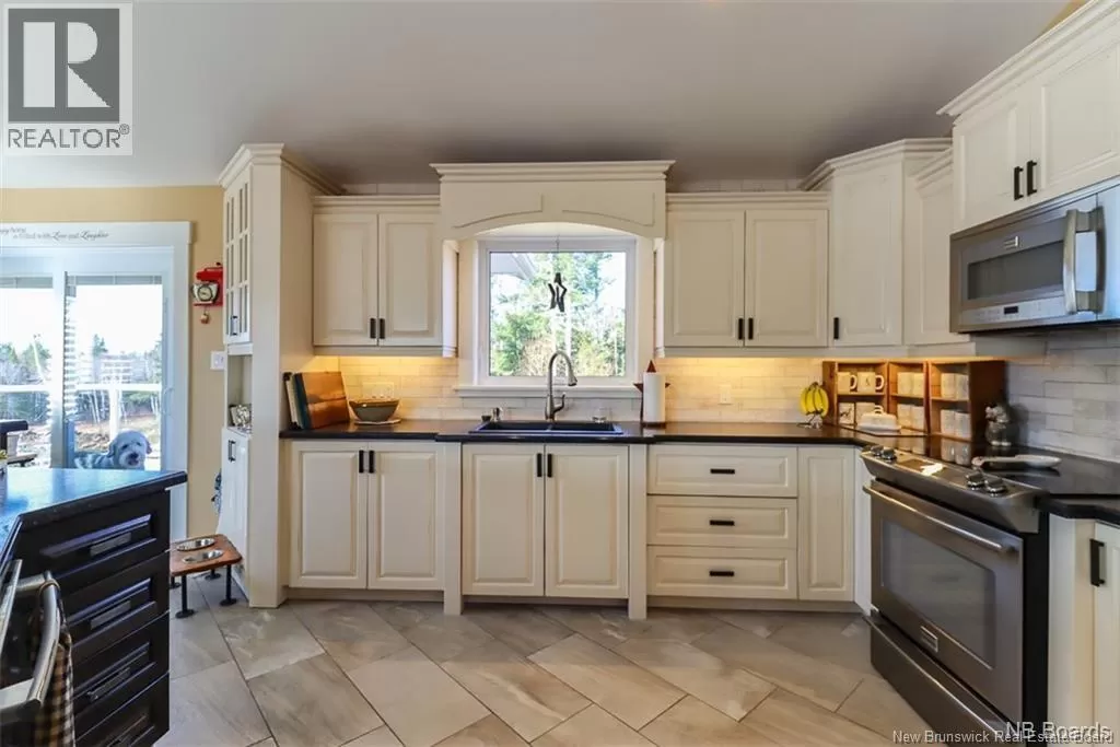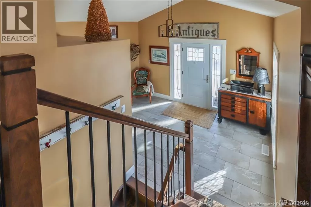 Grand Bay take Woolastook to June to Florence to Maplecrest Stunning designed home with attached double garage and Loft. Located in prestigious neighbourhood in Grand Bay Westfield. Double paved driveway will lead you to a welcoming large front deck entrance with overhang to enjoy morning or evening coffee. Enter into spacious split entry foyer and you will be impressed by the vaulted ceilings and Great room with lots of windows and lighting. Much thought has been put into this custom design including Gourmet Kitchen with Island and hidden walk in pantry. Main floor with laundry room bathroom, 2nd bedroom and primary bedroom complete with gorgeous ensuite. Lower level for additional family room, 3rd bedroom, craft room or possible 4th bedroom. Many Added details to this home such as Ducted heat pump system, built in speakers, ensuite with heated floor,Custom California blinds, heated garage, plugin for generator, rollout drawers in kitchen cabinets, Hickory Laminate flooring throughout main level. Covered back deck overlooking fenced in back yard . (id:27476)