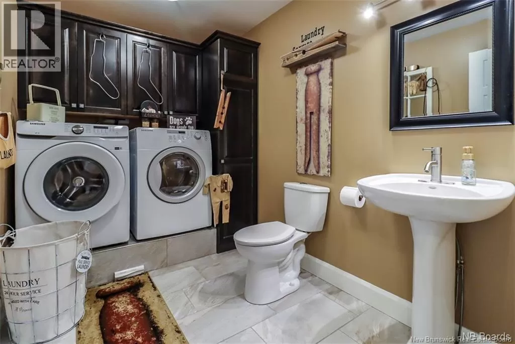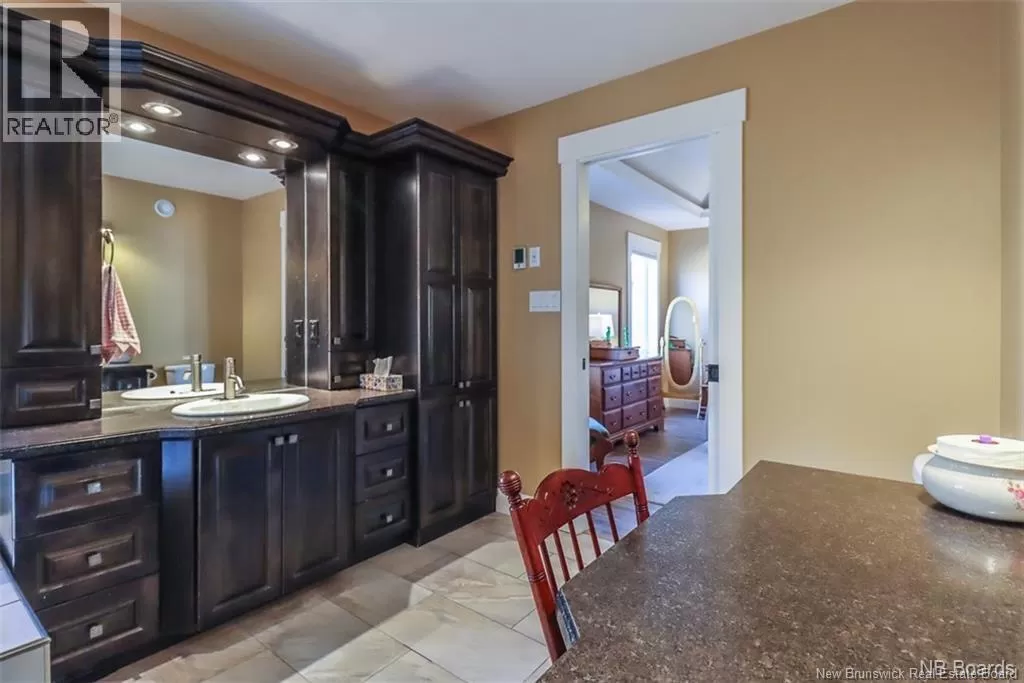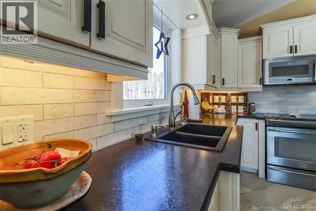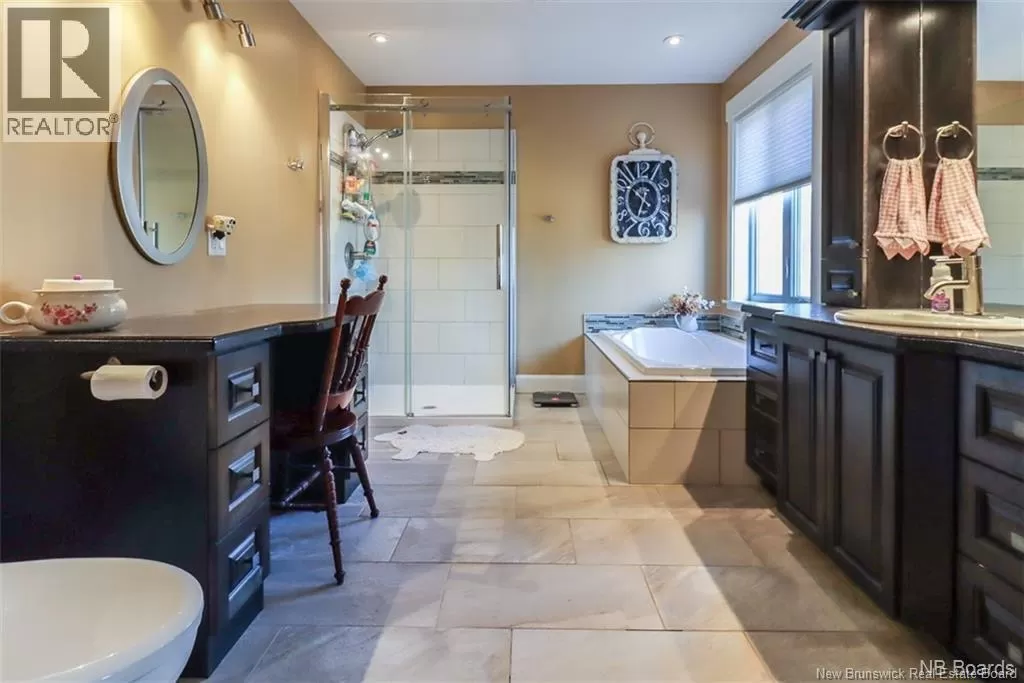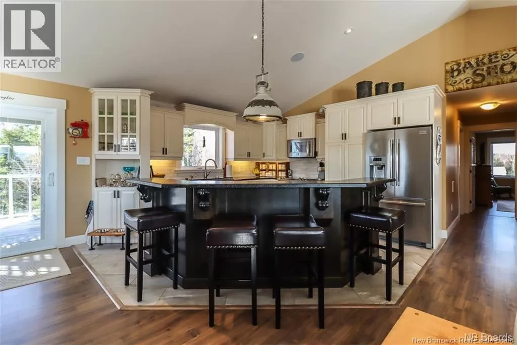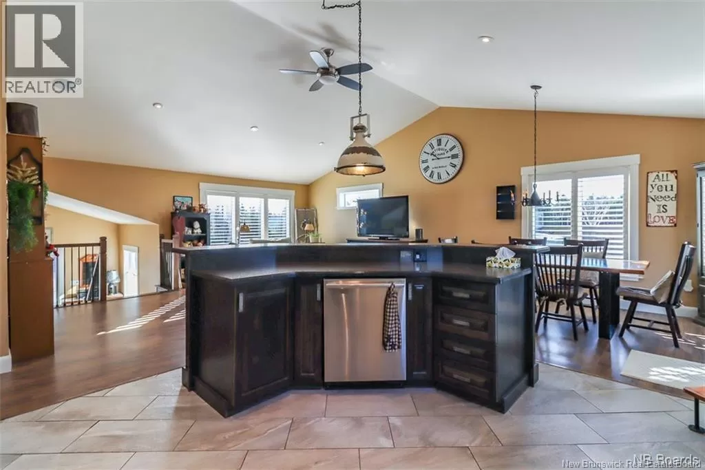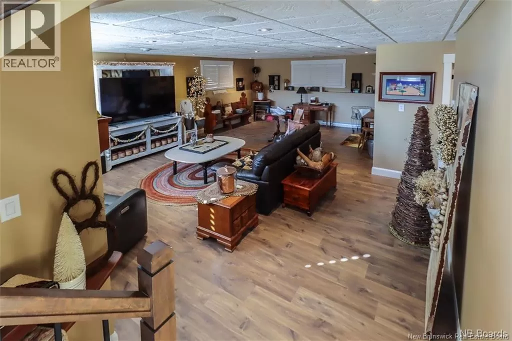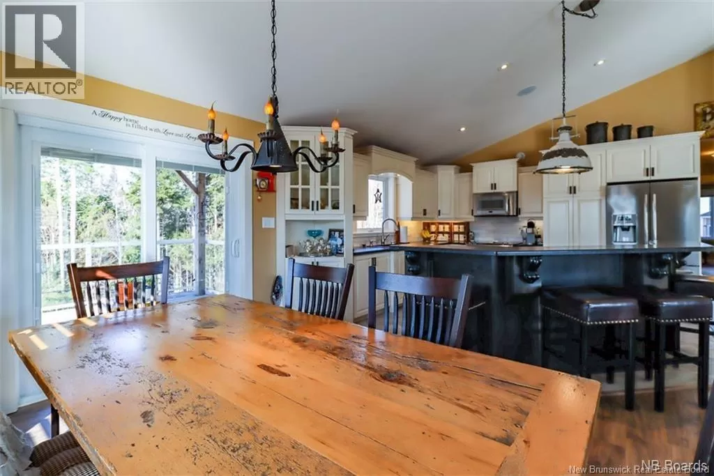 Grand Bay take Woolastook to June to Florence to Maplecrest Stunning designed home with attached double garage and Loft. Located in prestigious neighbourhood in Grand Bay Westfield. Double paved driveway will lead you to a welcoming large front deck entrance with overhang to enjoy morning or evening coffee. Enter into spacious split entry foyer and you will be impressed by the vaulted ceilings and Great room with lots of windows and lighting. Much thought has been put into this custom design including Gourmet Kitchen with Island and hidden walk in pantry. Main floor with laundry room bathroom, 2nd bedroom and primary bedroom complete with gorgeous ensuite. Lower level for additional family room, 3rd bedroom, craft room or possible 4th bedroom. Many Added details to this home such as Ducted heat pump system, built in speakers, ensuite with heated floor,Custom California blinds, heated garage, plugin for generator, rollout drawers in kitchen cabinets, Hickory Laminate flooring throughout main level. Covered back deck overlooking fenced in back yard . (id:27476)