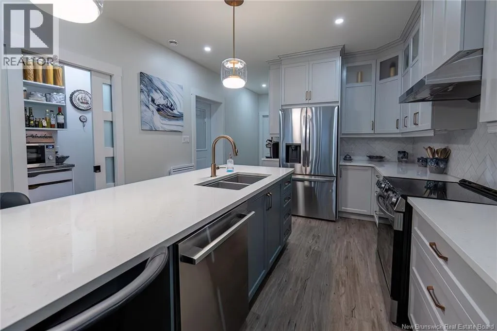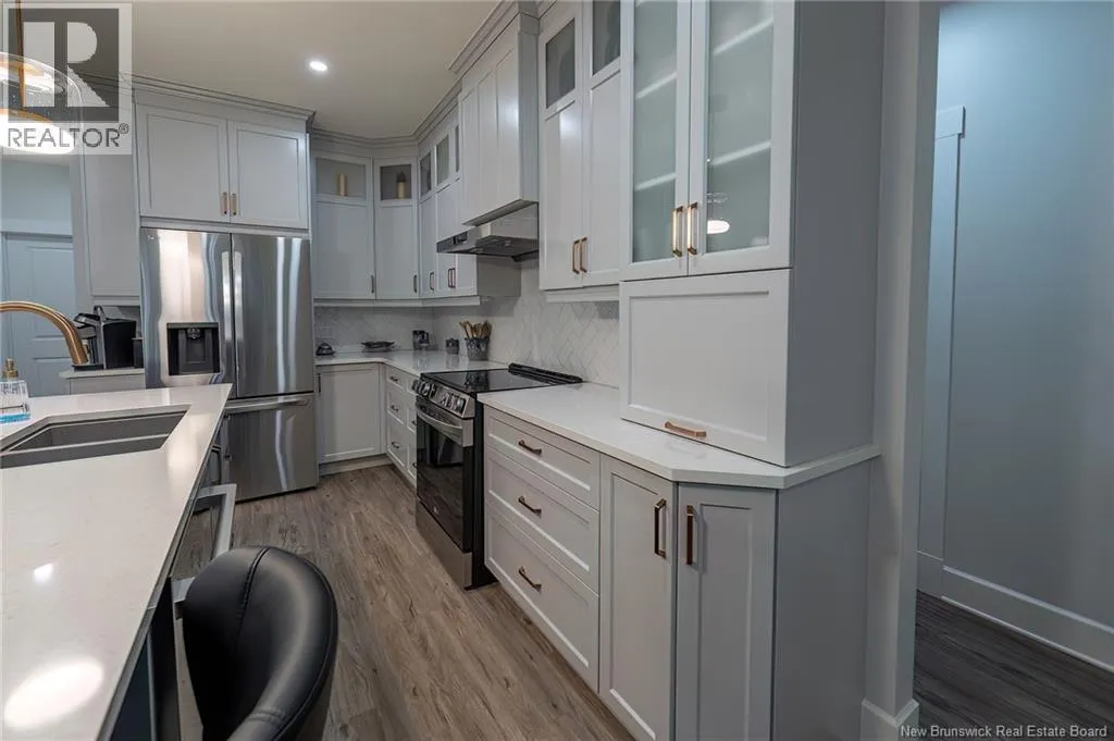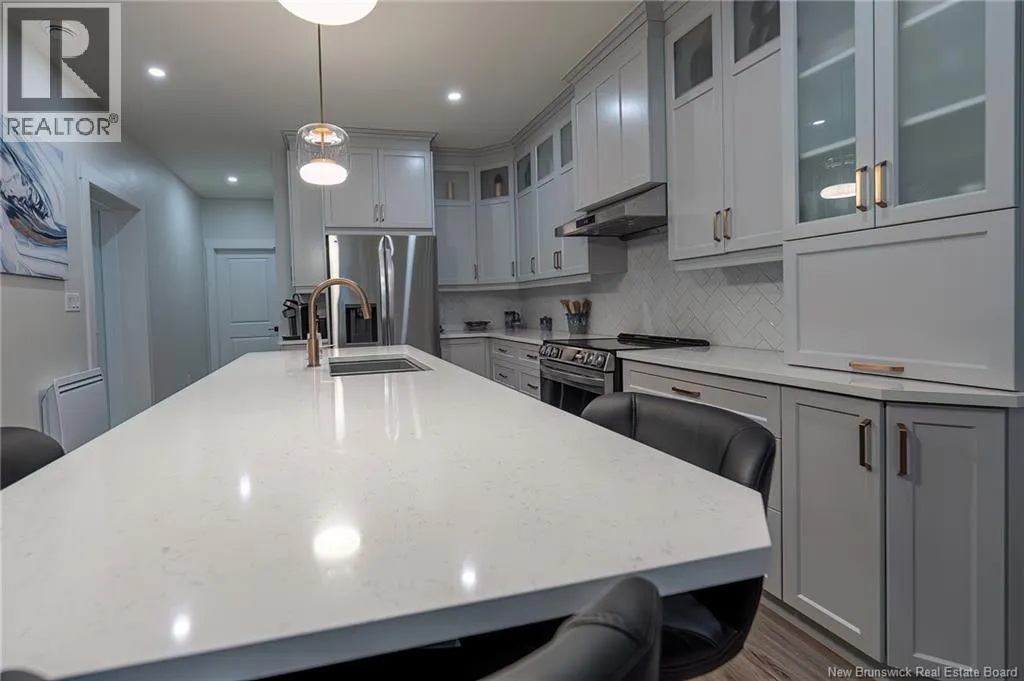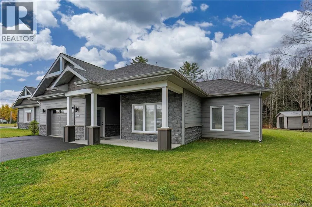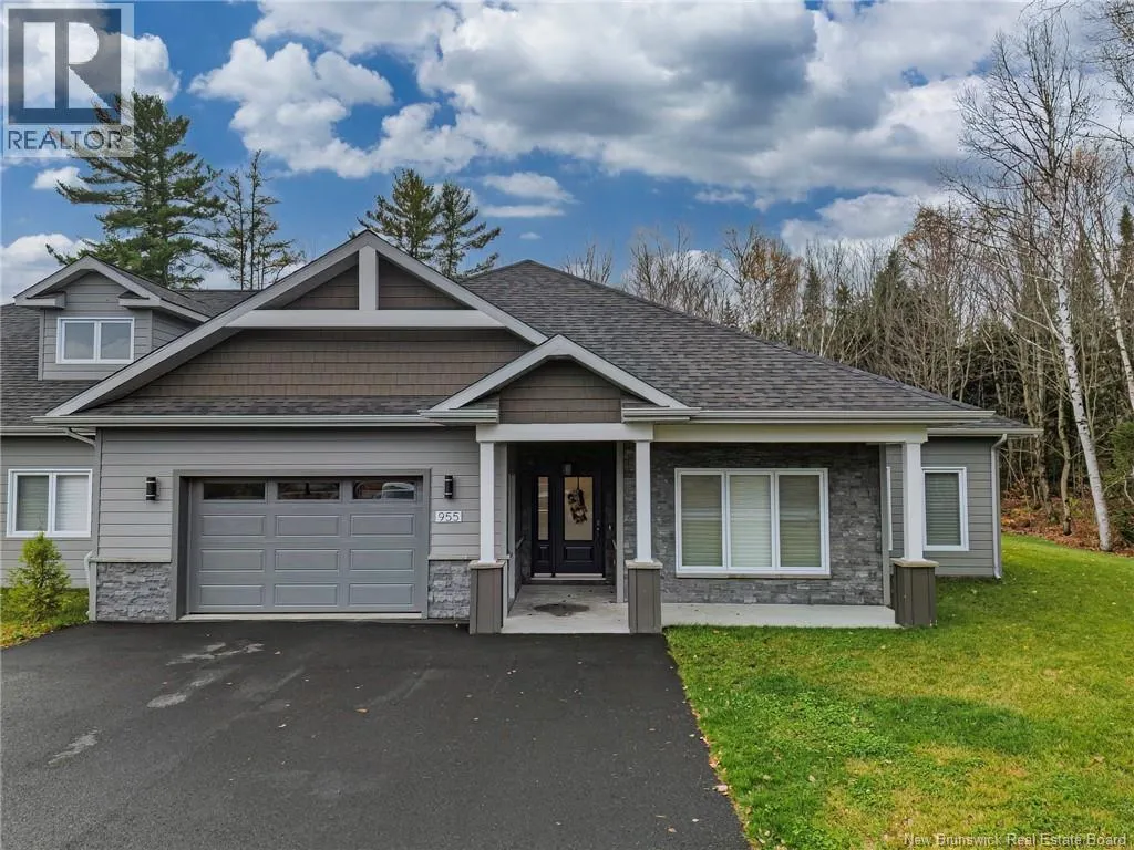 Take Exit79 off Route 2 onto Belanger Street. Turn right onto Everard H Daigle Boulevard. Turn right onto High Street and continue until you reach Broadway Boulevard. From there, head to Main Streetyour destination, 955 Main Street, is nearby. QUICK CLOSING AVAILABLE! Step into this magazine-worthy home, where modern style, chic finishes, and move-in readiness meet comfort. The welcoming foyer modern tiles and a practical closet opens to a thoughtfully designed layout offering space and privacy. Both the primary and guest bedrooms are tucked at the rear; the primary boasts a private ensuite with tiled shower and large walk-in closet, while the guest bedroom is generous with ample storage. The chefs kitchen features a gorgeous quartz counter, a spacious island with seating for 3, granite sinks, and tasteful gold accents, complemented by a walk-in pantry. Designer fixtures and smart blinds enhance modern convenience. Open-concept living and dining areas flow seamlessly to a concrete patio, perfect for relaxing or entertaining. The home also offers a finished attached garage, storage shed, and paved driveway, adding practicality to style. Efficient heat pump, ICF construction, Heated Floors (in both bathrooms) and a cozy electric fireplace ensure year-round comfort. Nestled in a growing, high-end neighborhood just minutes from the golf course and local amenities, this home blends warmth, style, and convenienceready for a lifetime of cherished memories. INCLUSIONS: REFRIGERATOR X2, STOVE, WASHER (AND MINIWASHER) DRYER, DISHWASHER, GENERATOR, 3X BAR STOOLS, WINDOW COVERINGS, SHED (id:27476)