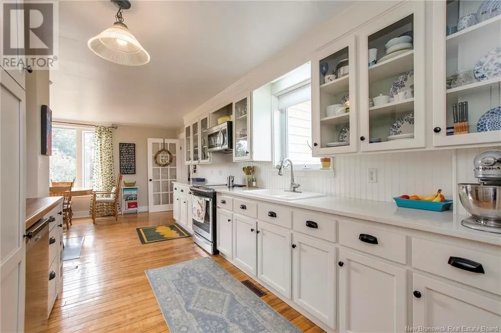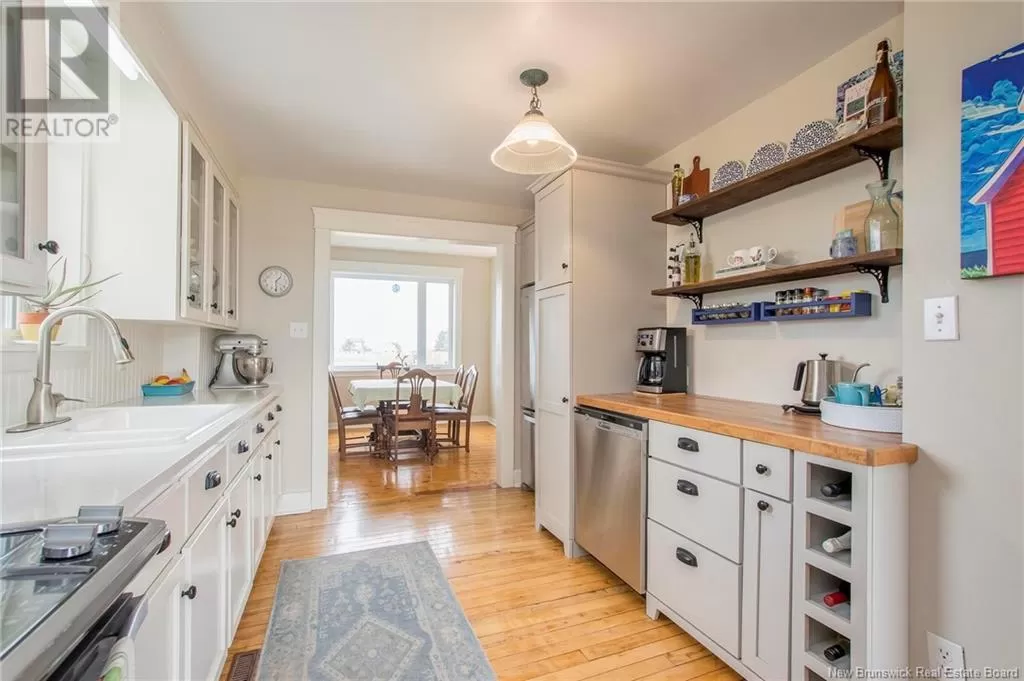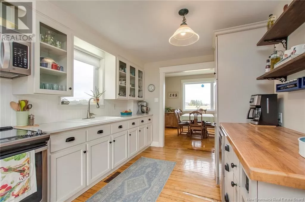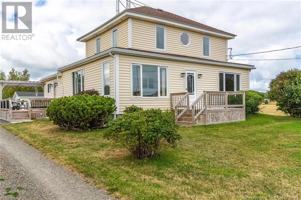 Follow NB-15 E and NB-11 to Chem. Viaduc in Shediac Bridge. Take exit 7 from NB-11 -Take NB-530 N to Chem. de la Côte in Grande-Digue. A rare find in sought-after Cassie Cape, this 9.2-acre property offers stunning water views, deeded water access, and excellent potential for future development. Set back from the road for added privacy, the updated century home retains its original charm while offering modern functionality. The main floor features a spacious entryway with 4pc bath, a newly renovated kitchen with dining nook, formal dining room, living room, and a welcoming front porch. Upstairs includes three bedrooms, an office with built-in closets, and a second 4pc bath. Step outside to an oversized deck perfect for outdoor dining, entertaining, or relaxing while enjoying the peaceful surroundings. Additional highlights include a newer 26x26 detached garage with a beautifully finished one-bedroom apartment (great for guests or rental income), an older garage, and a quaint bunkie for seasonal visitors/currently used for storage. All appliances are included. Private, peaceful, and full of potential this is a rare find in a desirable location. Call for further details or to arrange a viewing. (id:27476)