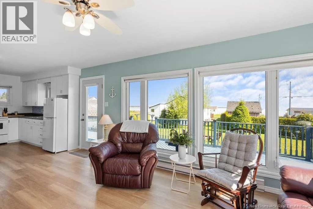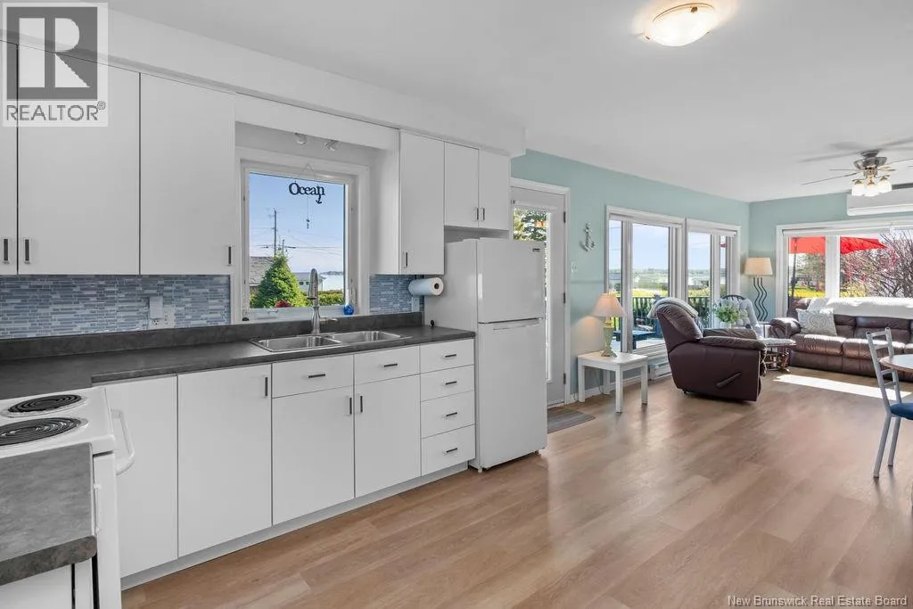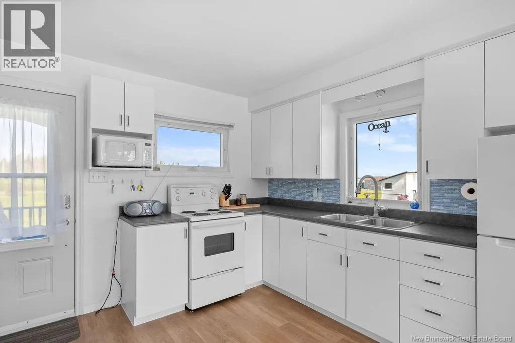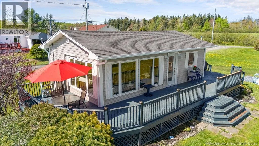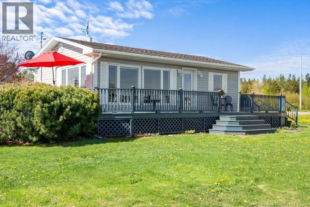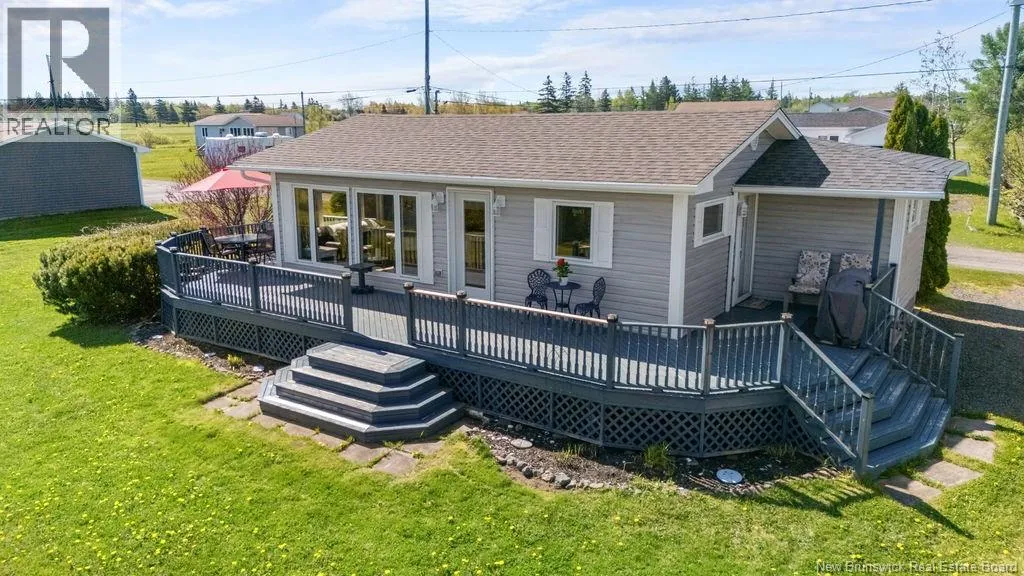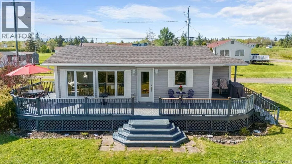 From Route 530 turn onto Chemin Regina, then turn on to Chemin Edgar. Welcome to your very own COASTAL RETREAT in Grande-Digue! This FULLY FURNISHED charming cottage sits on a spacious DOUBLE LOT with breathtaking OCEAN VIEWS and is just a 2-minute stroll to a stunning private beach. Step through the ocean-side entrance into a bright, open-concept living area filled with natural light and panoramic water views from every window. The cozy living room features a mini-split (2022) for additional comfort, while the white eat-in kitchen offers a side entrance for easy BBQ access. The renovated 3-piece bathroom (2024) includes a new shower, vanity, flooring, and sleek lighting. It also has a designated laundry area and convenient linen closet. Two charming bedrooms complete the interior. Outside, enjoy a wrap-around ocean-facing deck, perfect for morning sunrises and evening sunsets. A spacious baby barn adds extra storage and the large level yard allows for plenty of activities. 2024 upgrades include vinyl flooring throughout, a new refrigerator, and water tank. The roof was redone in 2018, and the well-maintained septic was emptied in 2023. It is currently being used as a 3-season cottage, but can easily be winterized for comfortable year-round living. This is seaside living at its bestdont miss this opportunity! (id:27476)