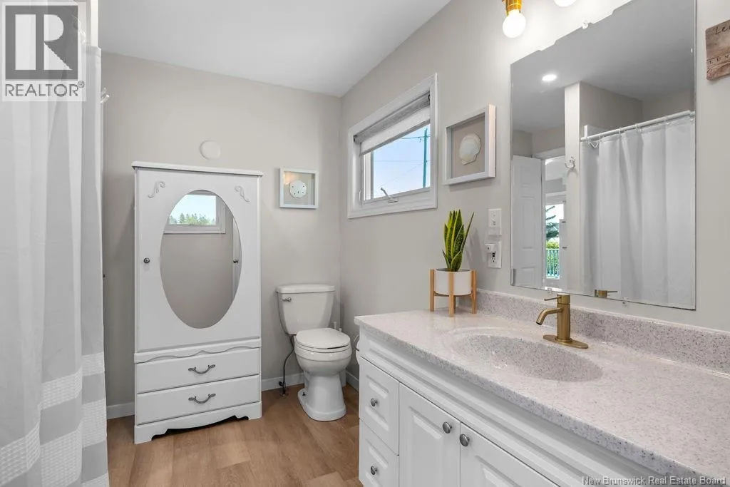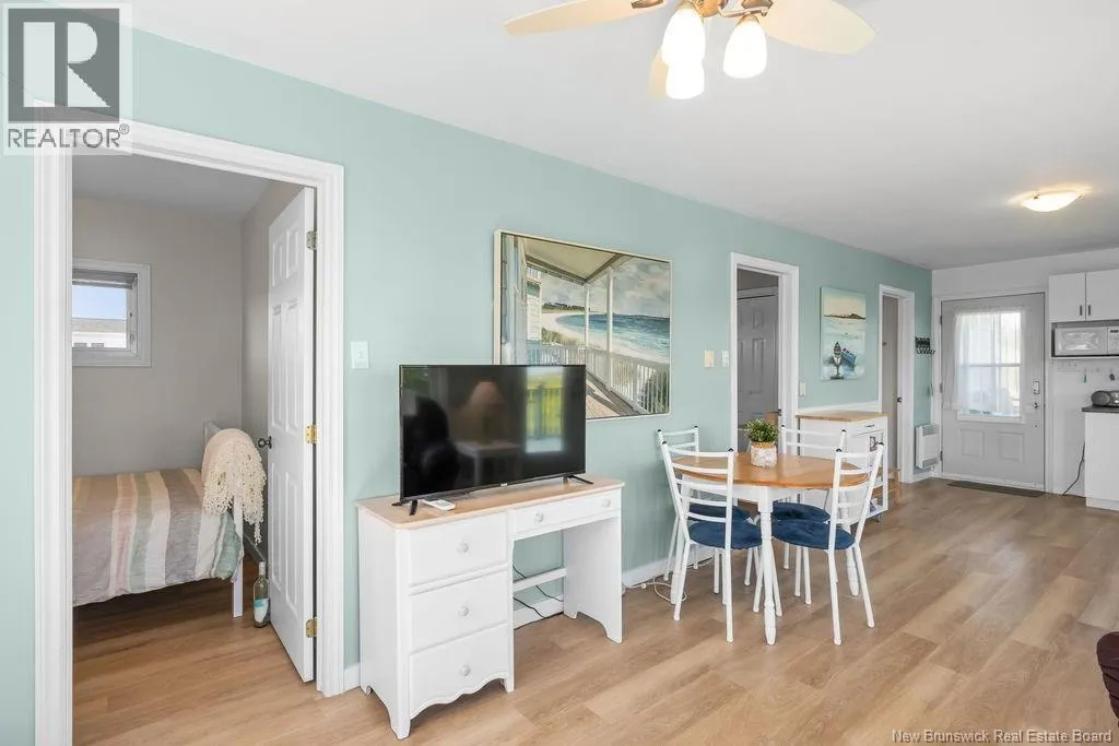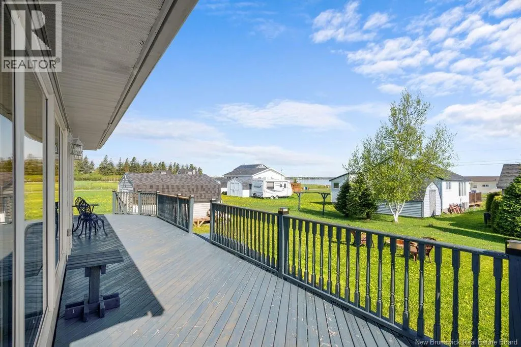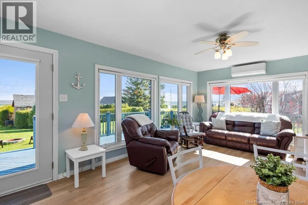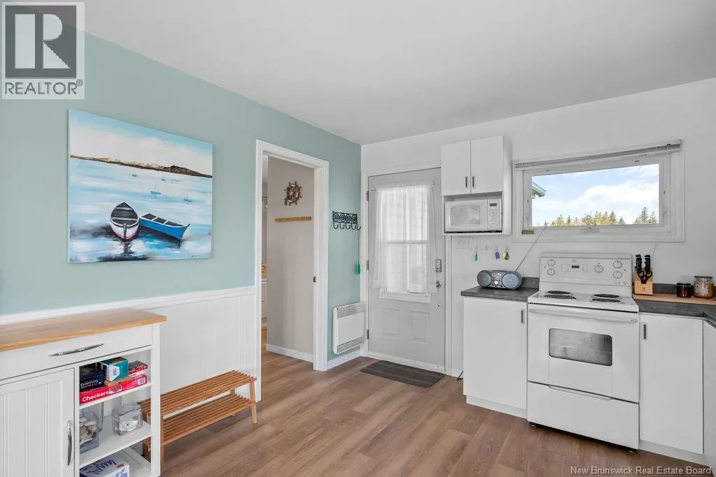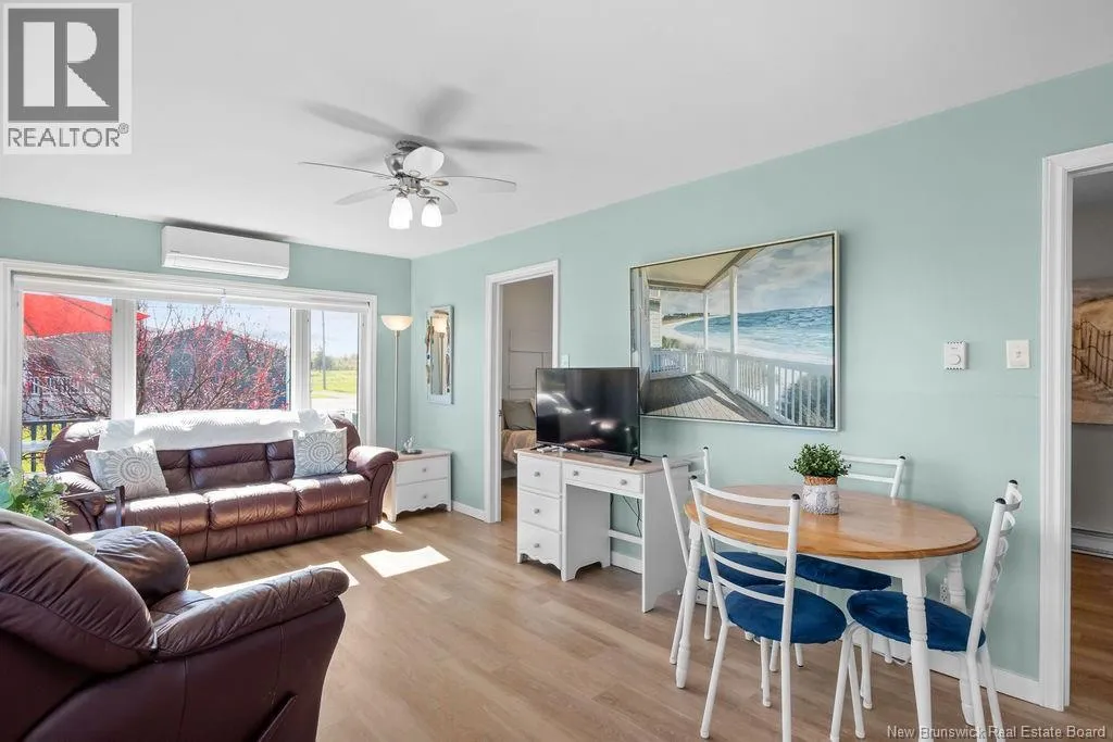 From Route 530 turn onto Chemin Regina, then turn on to Chemin Edgar. Welcome to your very own COASTAL RETREAT in Grande-Digue! This FULLY FURNISHED charming cottage sits on a spacious DOUBLE LOT with breathtaking OCEAN VIEWS and is just a 2-minute stroll to a stunning private beach. Step through the ocean-side entrance into a bright, open-concept living area filled with natural light and panoramic water views from every window. The cozy living room features a mini-split (2022) for additional comfort, while the white eat-in kitchen offers a side entrance for easy BBQ access. The renovated 3-piece bathroom (2024) includes a new shower, vanity, flooring, and sleek lighting. It also has a designated laundry area and convenient linen closet. Two charming bedrooms complete the interior. Outside, enjoy a wrap-around ocean-facing deck, perfect for morning sunrises and evening sunsets. A spacious baby barn adds extra storage and the large level yard allows for plenty of activities. 2024 upgrades include vinyl flooring throughout, a new refrigerator, and water tank. The roof was redone in 2018, and the well-maintained septic was emptied in 2023. It is currently being used as a 3-season cottage, but can easily be winterized for comfortable year-round living. This is seaside living at its bestdont miss this opportunity! (id:27476)