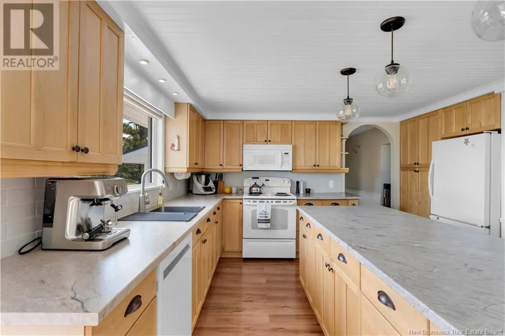 head north on road 530 towards grande-digue, turn right towards caissie cape. Jaillet street is on the right. Welcome to 20 Chemin Jaillet, nestled in the heart of beautiful, Grande-Digue New Brunswick, this well-maintained home is a rare gem thats sure to impress. The house is literally steps away from a gorgeous beach and all your water sport activities awaits. Proudly owned and cared for over the last 15 years, this property sits on a triple lots, so you have room to expand or simply more land to enjoy. The home offers stunning ocean views and a layout designed for comfort and relaxation. The kitchen views alone are breathtaking. Inside, youll find 3 bedrooms and 2 full bathrooms. Two bedrooms are located on the main floor, while the third is in the finished basement. The primary suite includes a private ensuite with a soaker tub, and the second bathroom features a full tub/shower combo. The updated kitchen includes modern appliances, and the mini-split system ensures comfort year-round. A wood stove in the living room adds a cozy touch for winter evenings spent with family and friends. Outside, the home has been remodelled with a durable steel roof and features a spacious detached garage, perfect for hobbyists or extra storage. In the backyard, enjoy a private deck and a 3-year-old hot tub the perfect way to unwind after a day at the beach, just a short walk away. Whether youre looking for a charming cottage or a year-round home by the sea, this property delivers it all. Book your showing today with your favourite realtor. (id:27476)