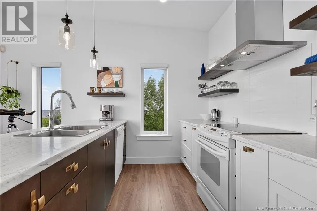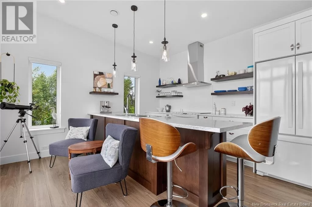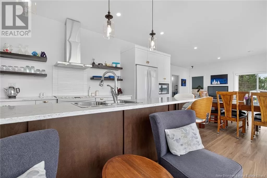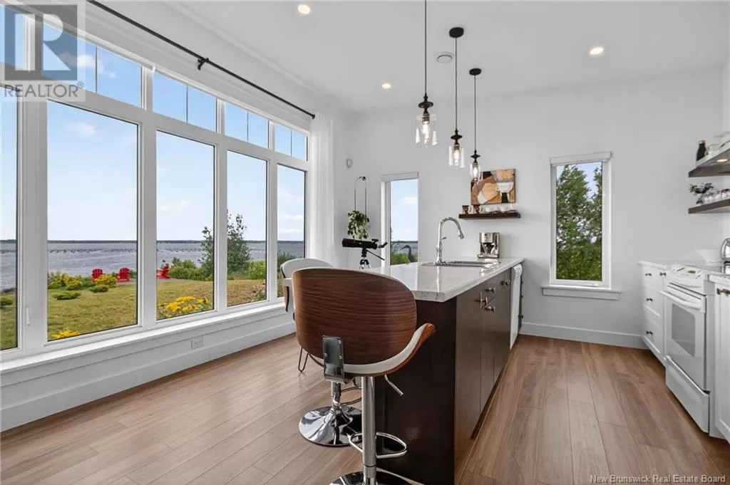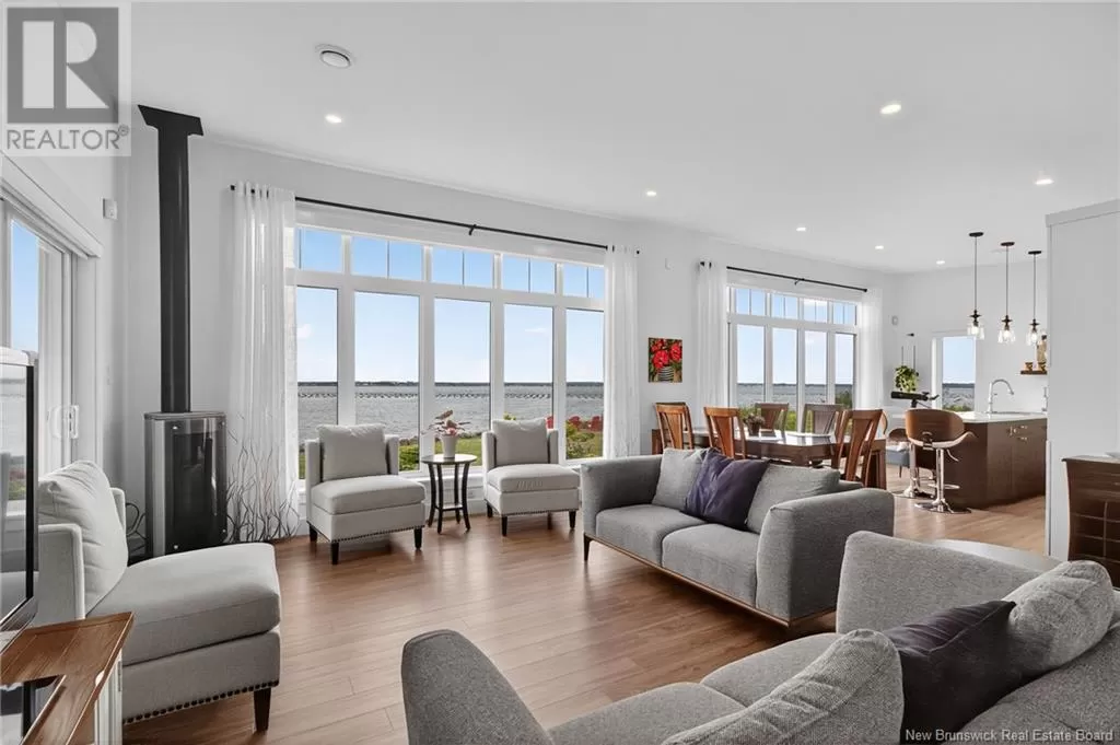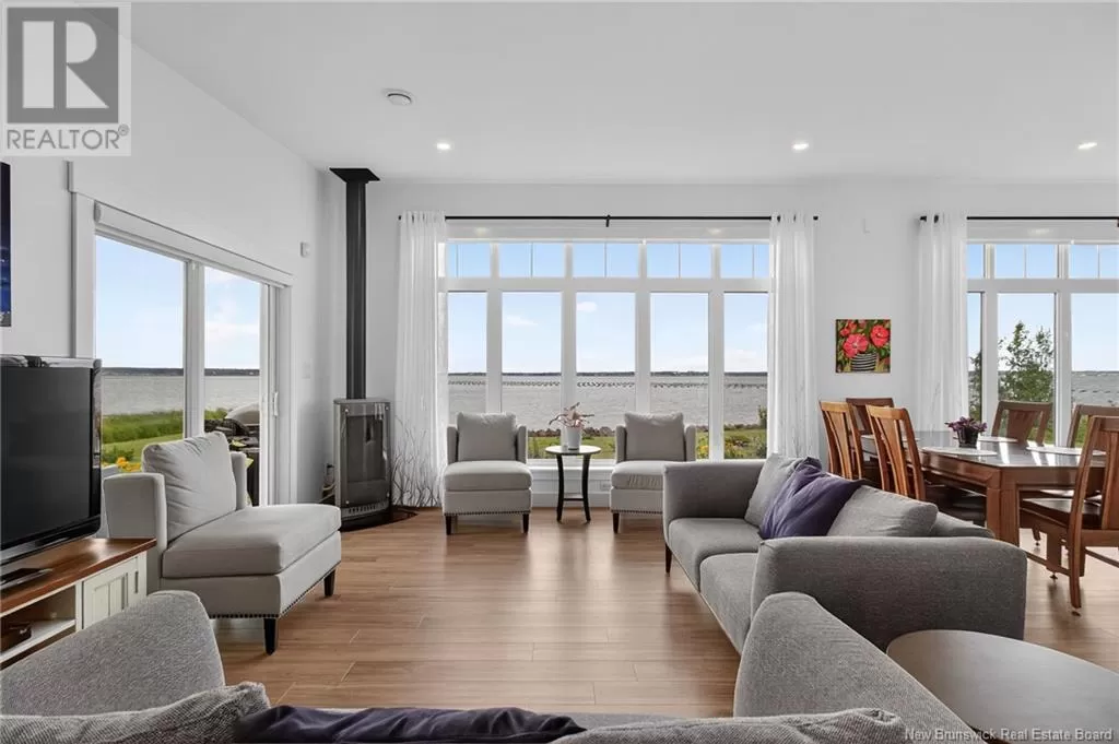 From Highway 11 take the Grande-Digue exit, turn left onto Route 134 , and turn right onto Route 530 *Click on link for 3D virtual tour of this property*Welcome to this exceptional 2021 built waterfront home, set on 10 acres with stunning views of Cocagne & the water. Built for year-round living, the property offers both a private retreat & an exciting opportunity for future development, with the land fully subdividable.A metal roof & engineered rock wall enhance durability & curb appeal.The second access to the water opens the door to a true recreational lifestyle; perfect for kite surfing, paddle boarding, kayaking & boating.Inside,the open-concept living space is flooded with natural light through expansive windows framing the water views.The kitchen features ample cabinetry,a generous island oriented to capture the scenery & a layout that flows seamlessly into the living room.Here, the Paloma propane fireplace adds warmth & comfort,making it an inviting space year-round.2 spacious bedrooms & 4pc bath complete the main level.Comfort is assured with in-floor heating & a mini split for efficient climate control. A propane combi boiler heats water (on demand) and the floor. The property also includes underground wiring, an engineered septic system,exterior propane hook up on patio, 2 RV hookups with electrical,water & sewage connections offering plenty of space for guests or future expansion. Conveniently located minutes from local amenities,20 min. to Shediac & 30 minutes to Moncton,this unique property combines waterfront living, privacy & significant investment potential. (id:27476)