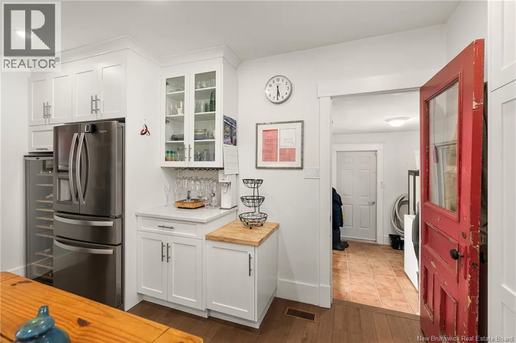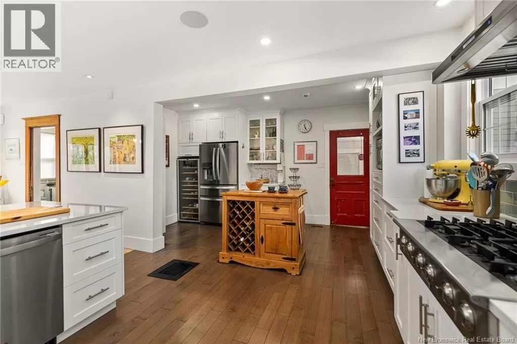 Welcome to this beautifully restored 5-bedroom year-round beach house that perfectly blends the timeless charm of a historic home with the convenience of todays modern amenities. Nestled just steps from the water, this property offers an ideal coastal lifestyle. At the heart of the home is a stunning, chef-inspired kitchen that will delight both foodies and home cooks. It flows seamlessly into the dining room, which overlooks a lush, landscaped backyard featuring an in-ground pool and a covered seating areaperfect for relaxing and entertaining on long summer evenings. Recently refinished hardwood floors add warmth and character throughout. The inviting living room features a cozy propane fireplace, while the classic front porchwith water viewsis ideal for soaking in the beauty of those laid-back summer days. This home includes two full bathrooms, a powder room, and a thoughtful layout, with the private primary suite tucked into its own wing for added comfort and tranquility. Originally transported from Moncton and lovingly reassembled on this picturesque lot, this one-of-a-kind property blends vintage charm with stylish modern updates. Additional highlights include a double-car garage and exceptional craftsmanship throughout. Dont miss your opportunity to own a truly unique coastal retreat in an unbeatable location! (id:27476)