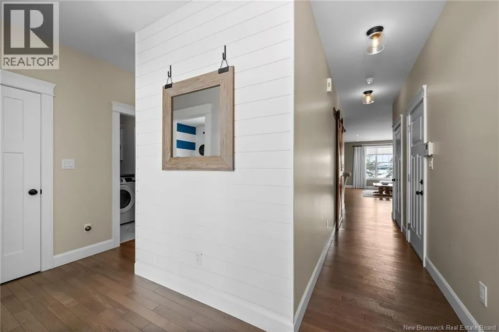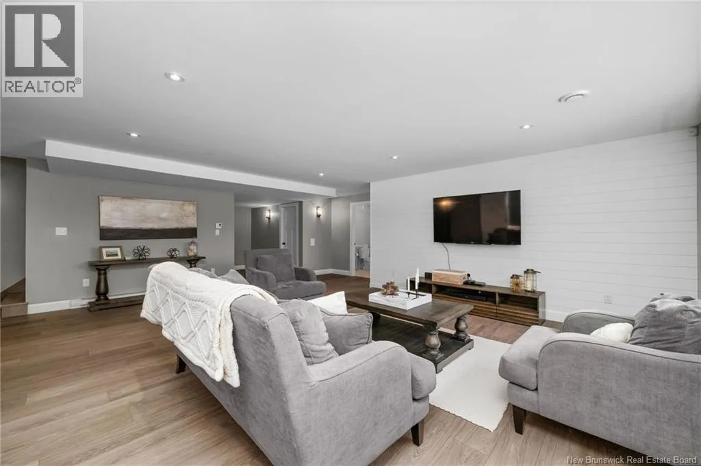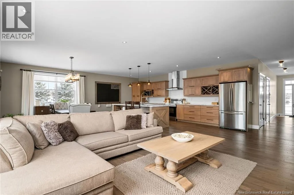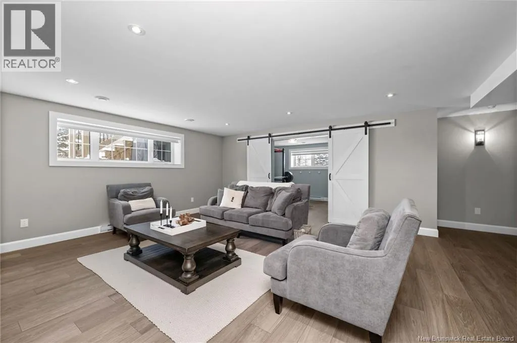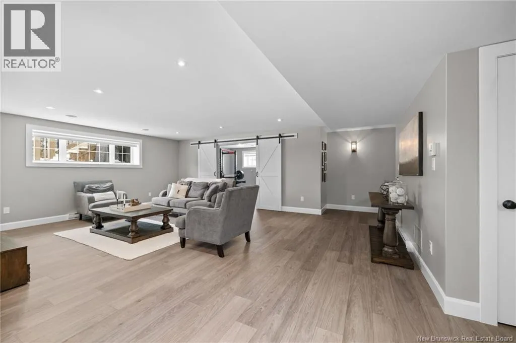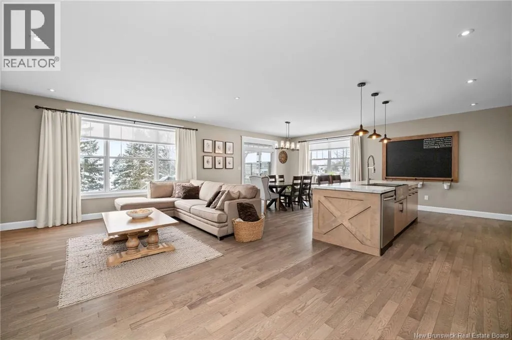 11 North from Moncton. Take exit 7 Grand-Digue, left to Rte 134 then right on the 2nd option for Rte 530 Right onto Moonlight Drive *Click on link for 3D virtual tour of this property*Welcome to this beautifully designed home offering strong curb appeal with its modern exterior, covered front porch, and attached garage. Quality craftsmanship and attention to detail are evident from the moment you arrive.Inside, a bright entrance opens to a spacious open concept main living area. Wide-plank hardwood floors, recessed lighting, and oversized windows create a warm, inviting space filled with natural light. The living room flows seamlessly into the dining area and kitchen, ideal for everyday living and entertaining.The kitchen features a large center island with seating, farmhouse sink, custom cabinetry, stylish pendant lighting, and ample prep space.Bedrooms are well laid out with comfortable room sizes. The primary bedroom includes a private ensuite with modern finishes. Additional bathrooms offer the same clean, cohesive style.The finished lower level adds valuable living space with a family room, guest bedroom, full bathroom, as well as a large playroom/gym area.Outside, enjoy a private backyard plus a registered right-of-way to the beach. Central air provides efficient heating and cooling. A move in ready home offering comfort, style, and long-term value. (id:27476)
