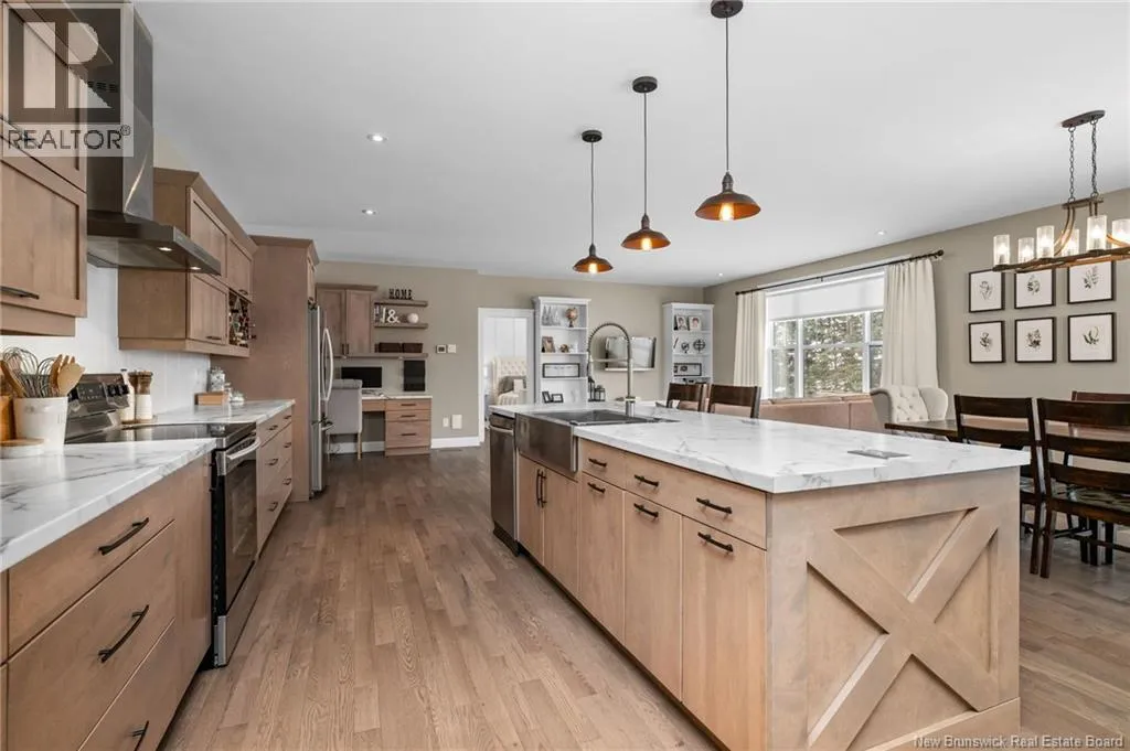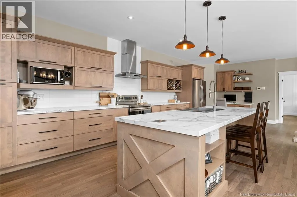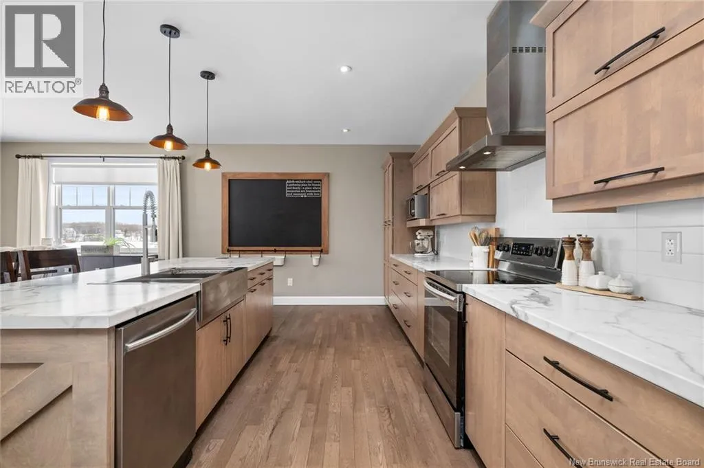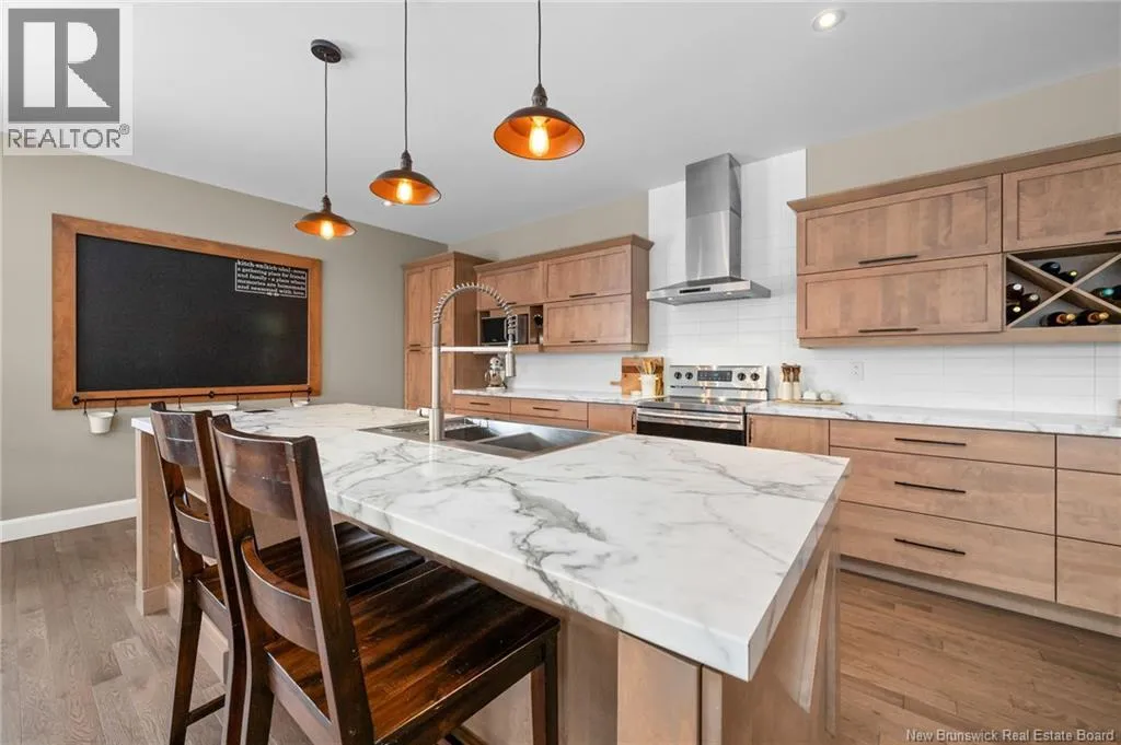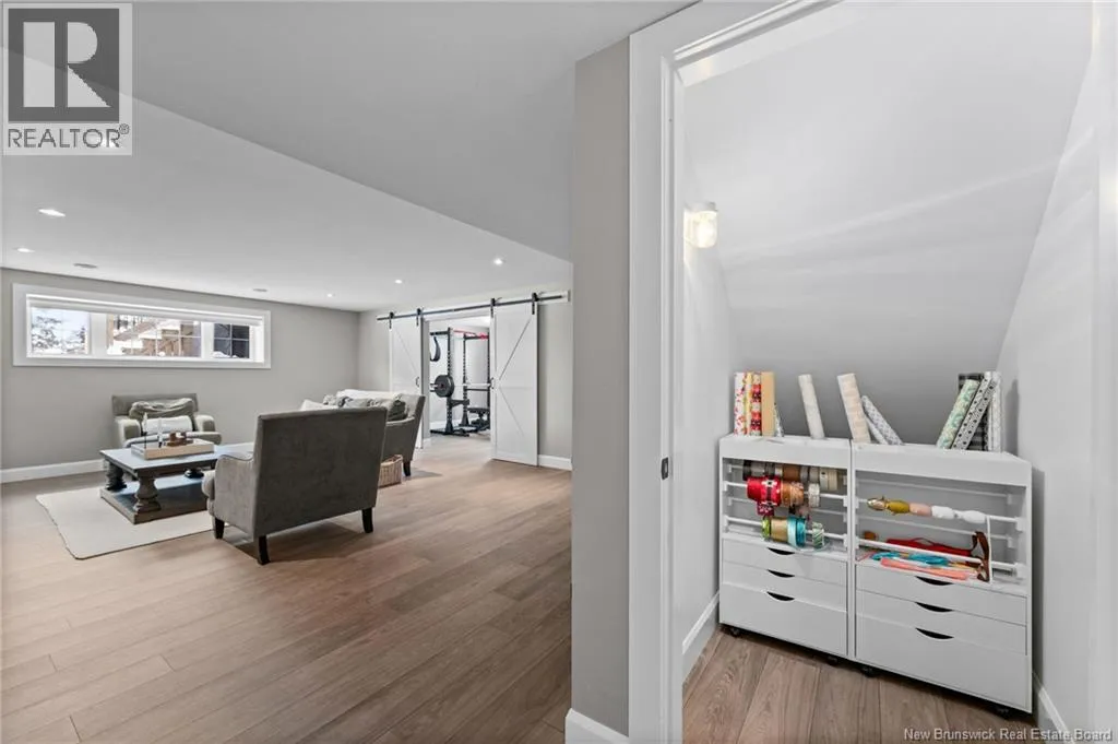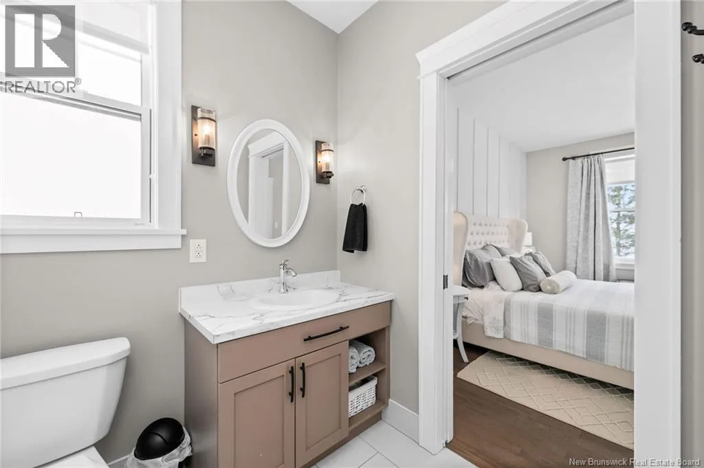 11 North from Moncton. Take exit 7 Grand-Digue, left to Rte 134 then right on the 2nd option for Rte 530 Right onto Moonlight Drive *Click on link for 3D virtual tour of this property*Welcome to this beautifully designed home offering strong curb appeal with its modern exterior, covered front porch, and attached garage. Quality craftsmanship and attention to detail are evident from the moment you arrive.Inside, a bright entrance opens to a spacious open concept main living area. Wide-plank hardwood floors, recessed lighting, and oversized windows create a warm, inviting space filled with natural light. The living room flows seamlessly into the dining area and kitchen, ideal for everyday living and entertaining.The kitchen features a large center island with seating, farmhouse sink, custom cabinetry, stylish pendant lighting, and ample prep space.Bedrooms are well laid out with comfortable room sizes. The primary bedroom includes a private ensuite with modern finishes. Additional bathrooms offer the same clean, cohesive style.The finished lower level adds valuable living space with a family room, guest bedroom, full bathroom, as well as a large playroom/gym area.Outside, enjoy a private backyard plus a registered right-of-way to the beach. Central air provides efficient heating and cooling. A move in ready home offering comfort, style, and long-term value. (id:27476)