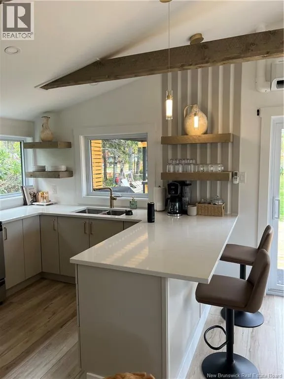 From Grande-Digue take route 530 until you reach Piper Place. Looking for a refined home or cottage lifestyle that blends coastal luxury with year-round comfort? This exceptional retreat offers the perfect mix of a summer oasis and a peaceful winter escape, complete with nearby walking trails, beach access and a welcoming community. Enjoy the relaxed vacation vibe, friendly neighbors, and strong rental potential in both summer and winterideal for personal enjoyment or income generation. This beautifully renovated, winterized coastal home features modern finishes, ocean views, and walking distance to the beach. Cedar accents create inviting curb appeal, while the expansive deck is perfect for entertaining or relaxing and includes a private hot tub. Inside, large windows flood the home with natural light, and a dramatic cathedral ceiling with matching wood finishes adds warmth and character. The open-concept living space comes fully furnished and move-in ready. A newly renovated kitchen and a spa-inspired bathroom showcases contemporary finishes. Two comfortable bedrooms make this an ideal full-time home, vacation escape, or turnkey rental opportunity. Set along a scenic coastal drive ten minutes from the highway, with shoreline views and seaside charm. Its five minutes to Shediac and fifteen to Moncton. With ocean views, modern upgrades, cathedral ceilings, and effortless beach access, this seaside cottage delivers comfort, style, and coastal living at its best. (id:27476)