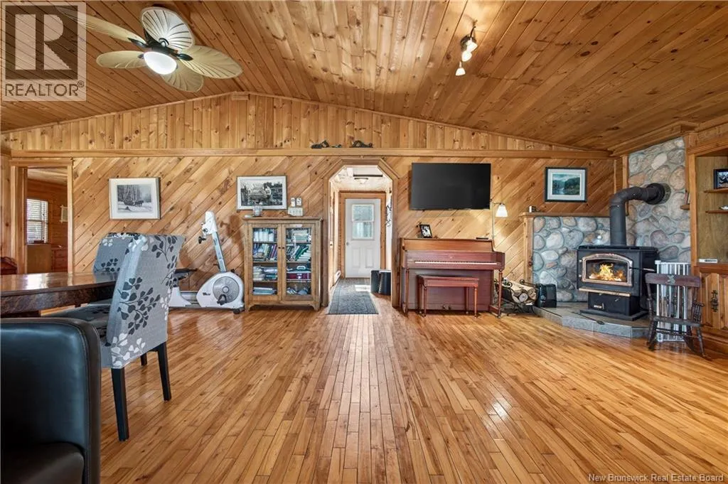 Warm and inviting 2 bedroom log home in Gray Rapids with a lovely waterview and a peaceful country feel. Built in 2008, this home sits on a spacious 1.76 acre lot and offers the charm of log construction with the comfort of modern features. The main level has an open living area with a wood burning stove, a bright kitchen, and two bedrooms. The finished attic bonus room adds extra space for hobbies, a home office, or storage. A screened porch overlooks the river and gives you a quiet place to enjoy the view in any weather. There is also a new deck, a durable metal roof, a wheelchair access ramp, and three sheds for tools and outdoor gear. You are only minutes from Blackville, with quick access to the school, shops, and everyday amenities. Outdoor enthusiasts will appreciate being close to world famous fishing and the natural beauty of the area. A comfortable home in a friendly community, ready for someone to make it their own. (id:27476)