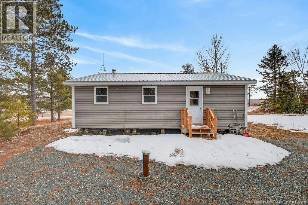 Take Route 420 from Eel Ground, cross the bridge on the right onto Halcomb Road, and follow to 1056 Halcomb Rd Perched on a gradual hill overlooking the Southwest Miramichi River, this 1-acre property offers privacy, mature trees, and plenty of space to expand or further develop. The camp was started and remains semi-finished, presenting a solid structure that is nearly new and ready for your finishing touches. The layout has been thoughtfully designed for 2 bedrooms, 1 bathroom, and an open-concept living and kitchen area, positioned to take full advantage of natural light and river views. The second bedroom is framed but not completed, and the bathroom is also semi-finished, with space in place for a stand-up shower. Many construction materials are already on site, allowing you to continue the build with ease. Exterior improvements include a metal roof, vinyl siding, and vinyl windows. The lot is located in an area known for river-view camps as well as some year-round homes, offering flexibility for seasonal use or future conversion to a full-time residence. There is ample space to add a garage, and the setting would be ideal for a full-length front patio. Imagine taking in evening sunsets over the river. Heating and utilities are partially in place, including a wood stove, thermostats installed for electric baseboard heating (baseboards still in new packaging), and an owned hot water tank. This property offers an opportunity to create your own river-view retreat in a location long appreciated for its fishing and natural surroundings. Property and appliances are sold as-is, where-is (id:27476)