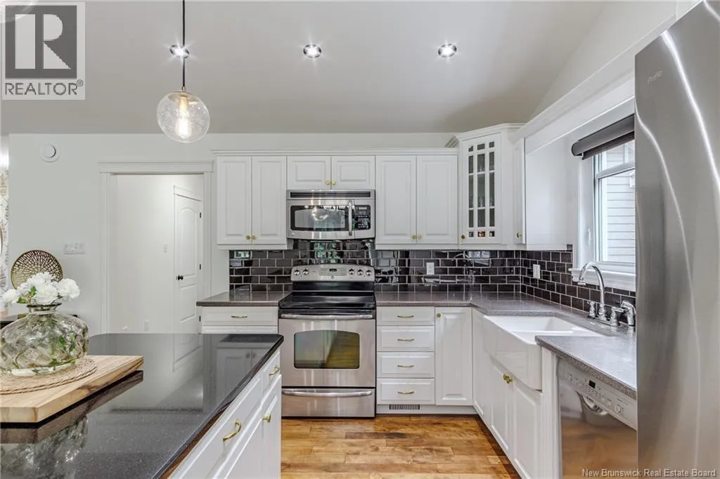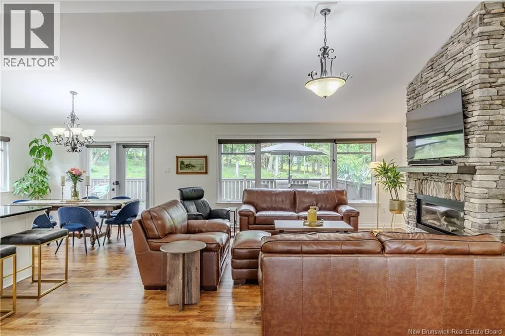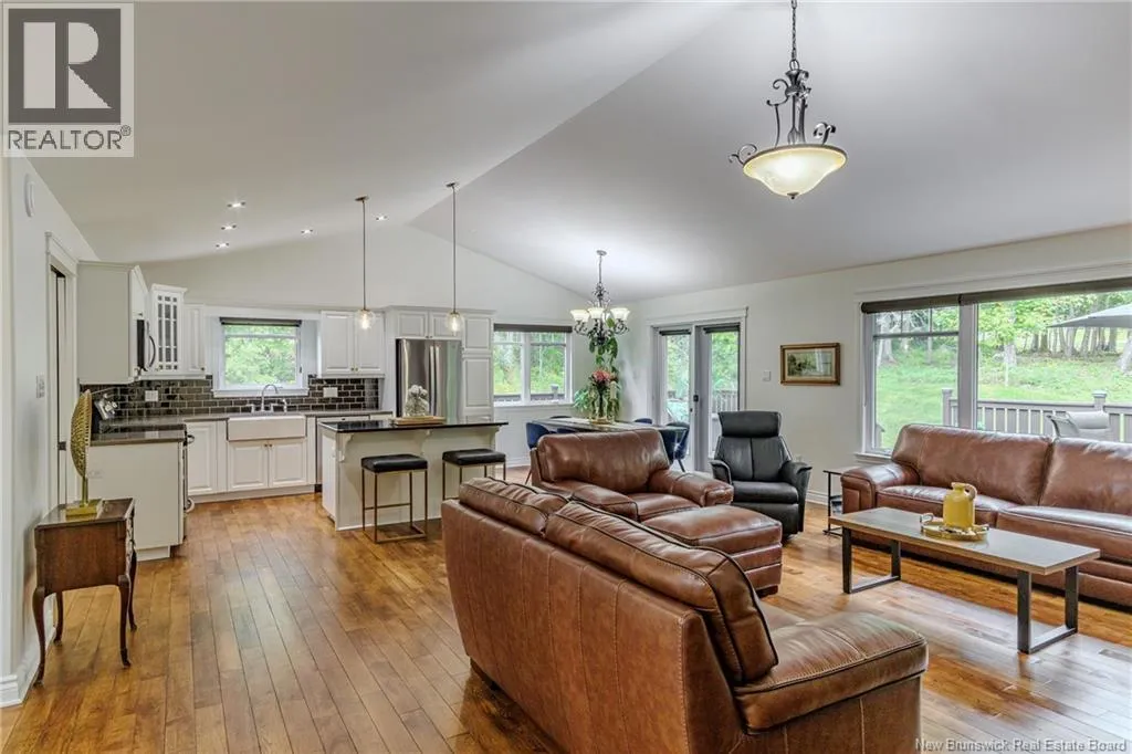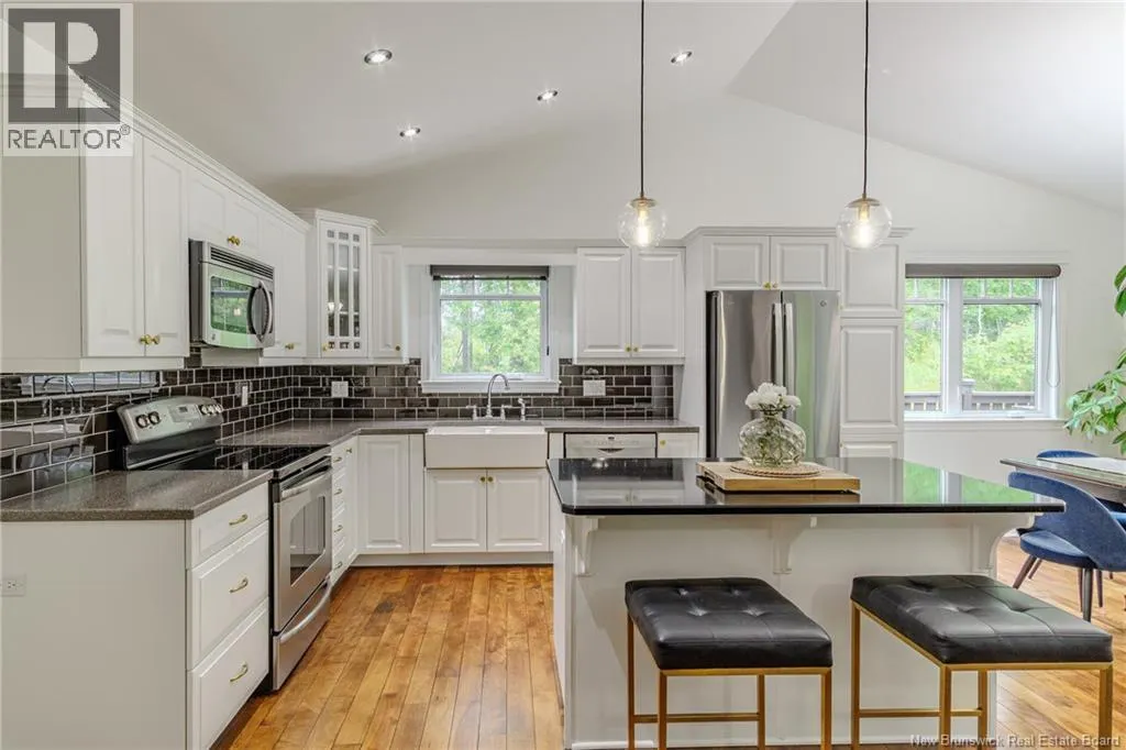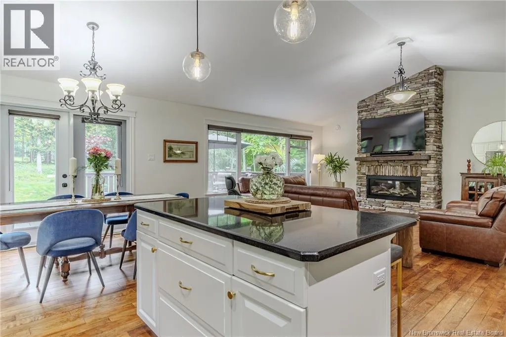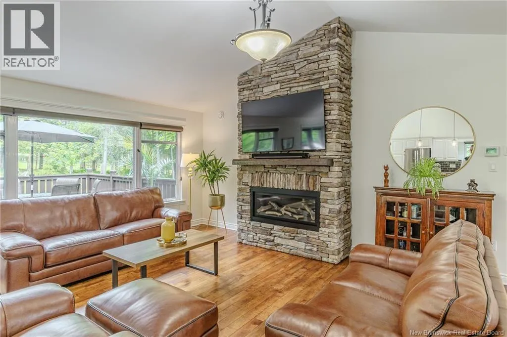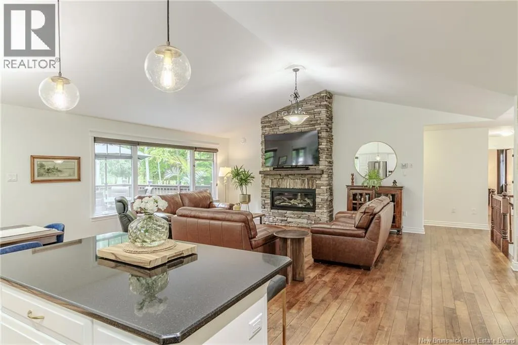 William Bell Drive to Robert Ross Blvd- home on the right. Heres your chance to own a standout home in one of Hamptons most desirable neighbourhoods, perfectly set on the 12th green and framed by brilliant fall colours.This executive ranch bungalow offers timeless design and a warm, welcoming feel- perfect for professional couples, young families, or anyone who loves the beauty of the season. Pride of ownership shines throughout, from the inviting entry to the open main living area with 10-ft vaulted ceilings and a dramatic stone fireplace-the perfect place to gather on crisp evenings.The kitchen features granite counters, white cabinetry, and a central island ready for autumn meals and cozy conversations.Three bedrooms share a stylish main bath with in-floor heating, while the primary suite includes a tray ceiling and generous closet space.Off the kitchen, a mudroom with laundry and powder room leads to an oversized garage with epoxy floors, soaring ceilings, and a finished loft for a studio, gym, or creative space.The bright lower level includes a spacious family room ideal for fall movie marathons, two flex rooms, a custom-tiled full bath, and a practical mudroom with walk-up access to the garage. Outside, savour the season from the 27Ã13 back deck or side deck, overlooking the 12th green with stunning autumn views Apple picking, pumpkin patches, and colourful hiking trails are minutes away, adding to the cozy small-town charm of Hampton. All within walking distance to the new Summit Centre-a vibrant hub for health and wellness. (id:27476)