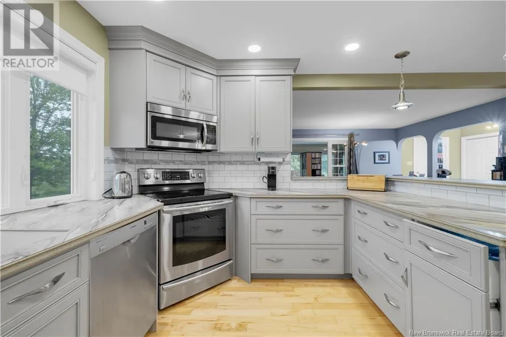 HAMPTON- MAIN-DUTCH POINT-BRANSCOMBE LANE Welcome to this charming and well-maintained home nestled on 1.4 acres in a gorgeous, private settingjust minutes from all amenities. This 3-bedroom bungalow is in excellent condition and move-in ready for its next family. Enjoy the ease of one-level living with a thoughtful layout, plus a basement offering approximately 1,300 sq ft of additional space. The basement features updated insulation, and a cozy wood stoveperfect for added comfort and efficiency. Step into the stunning 40-foot, three-season sunporchan ideal space for relaxing or entertaining. The kitchen has been beautifully upgraded with an Avondale design, and the home features gleaming hardwood and tile flooring throughout. Located just a 10-minute walk to the river, town parks, and scenic walking trails, youll love the outdoor lifestyle this property offers. Imagine having your own pond and charming covered bridge right on your landalong with plenty of local wildlife! The detached double garage (24x32) (OWN ELECTRICAL PANEL)provides tons of storage or workspace. This truly is a wonderful home with so many extrasdont miss your chance to make it yours. looking for a peaceful lifestyle this home and location would be perfect. (id:27476)