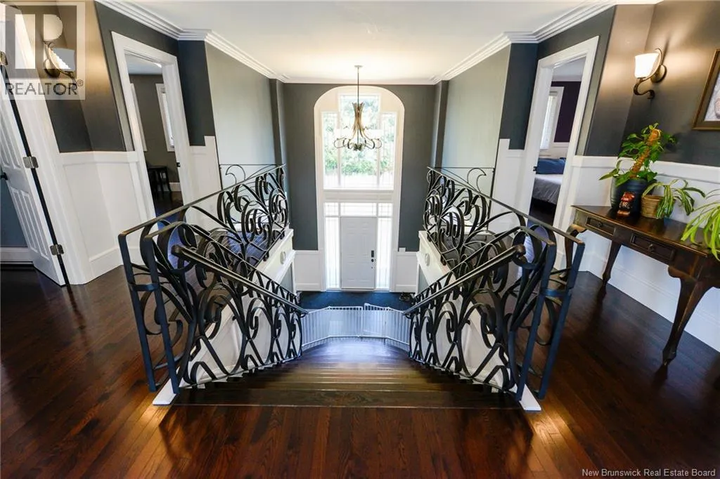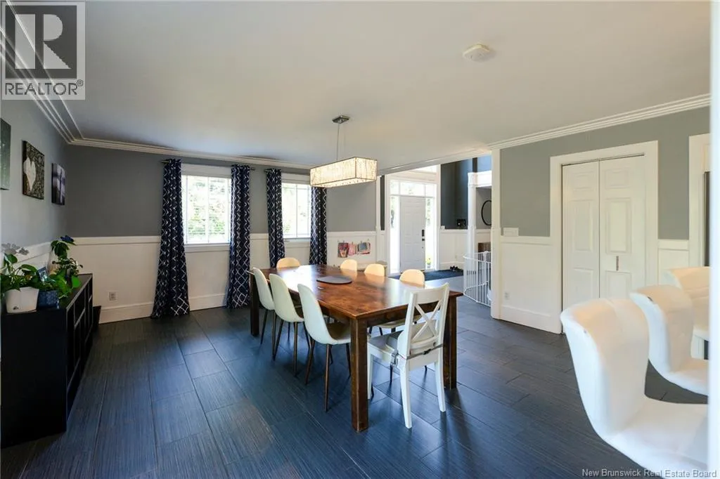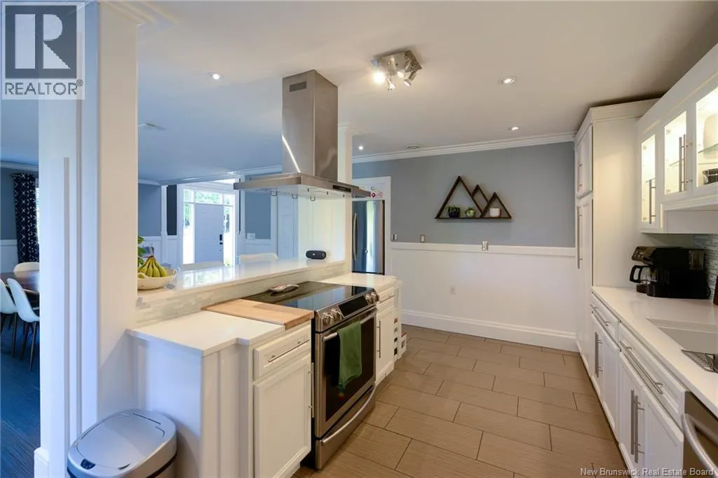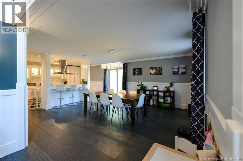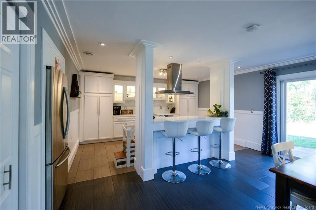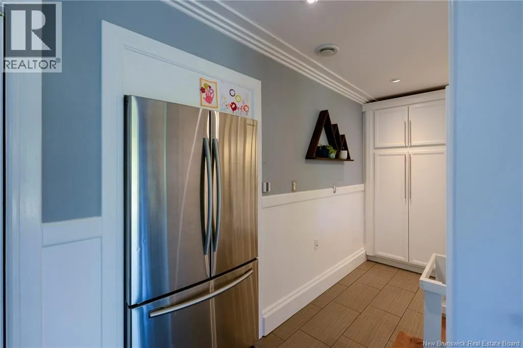 Route 845 Welcome to this stunning and pristine custom-built 4-bedroom, 2-bathroom home perfectly nestled in a peaceful country setting. Located less than 5 minutes to Hampton and 25 minutes to Rothesay/Quispamsis this beautiful home could be yours! Thoughtfully designed with timeless craftsmanship and modern comfort, this home offers the best of both worlds. The heart of the home is the chefs kitchen, featuring a large island, quartz countertops, glass backsplash, and modern stainless steel appliances. The open dining area easily accommodates a very large table, making it perfect for hosting family and friends. Custom details shine throughout with crown moulding, wainscoting, heated tile floors on the main level, and hardwood floors upstairs. The striking flared staircase with wrought iron railings leads to spacious bedrooms, including an oversized primary suite. The luxurious main bath boasts a soaker tub and walk-in shower. The large finished two-car garage includes built-in drawers and is prepped for in-floor heat. Outside, enjoy just under 2 acres with a babbling brook at the back, fenced yard-perfect for pets and kids, 16x10 shed, paved driveway with turnaround, covered patio, and a second-level deck with glass railing. This home has been extremely well cared for and is waiting for new owners. Call your REALTOR® today to book a private viewing! (id:27476)