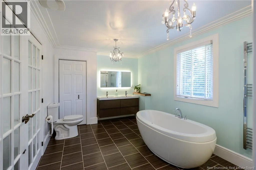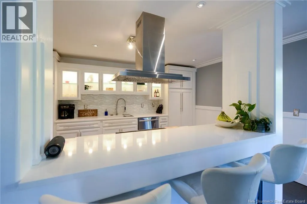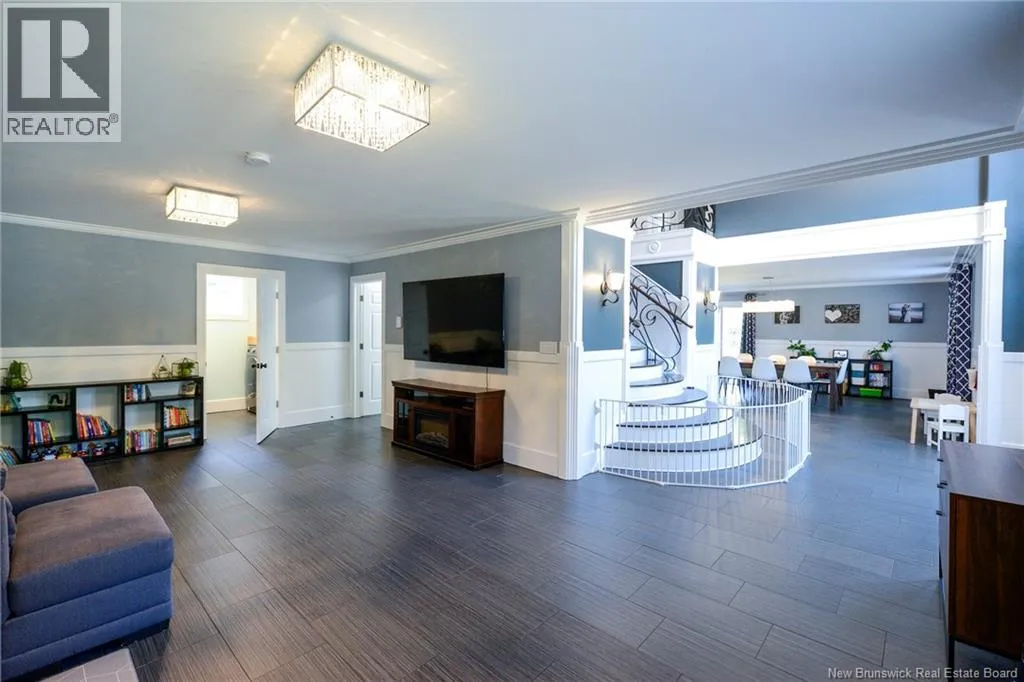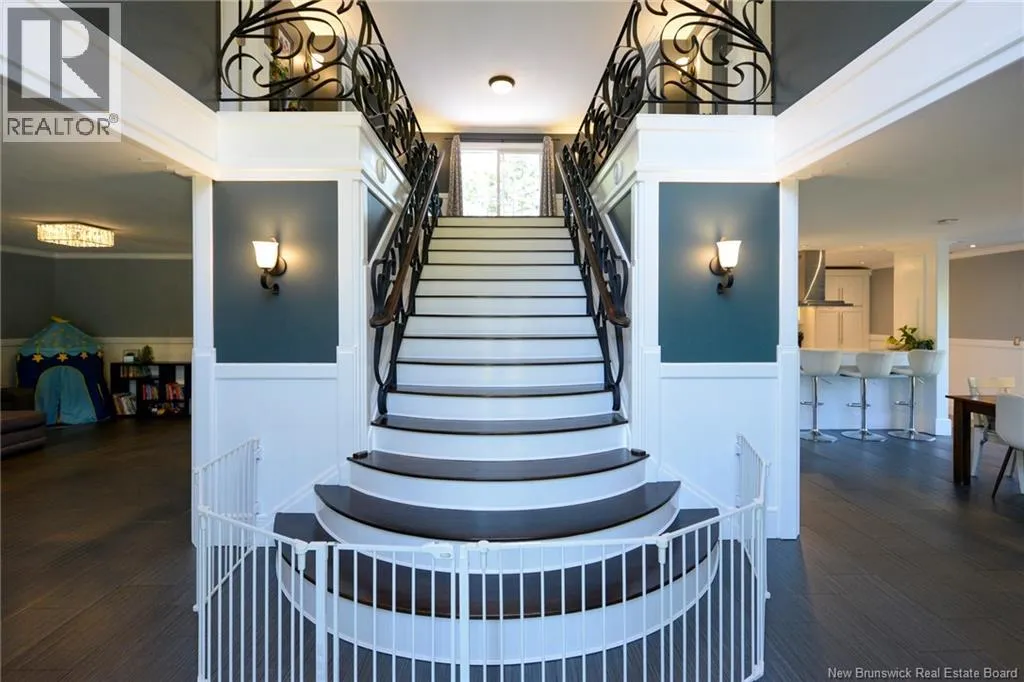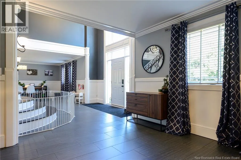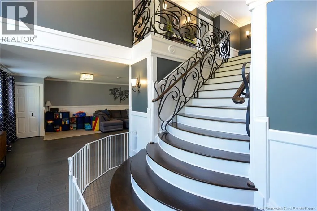 Route 845 Welcome to this stunning and pristine custom-built 4-bedroom, 2-bathroom home perfectly nestled in a peaceful country setting. Located less than 5 minutes to Hampton and 25 minutes to Rothesay/Quispamsis this beautiful home could be yours! Thoughtfully designed with timeless craftsmanship and modern comfort, this home offers the best of both worlds. The heart of the home is the chefs kitchen, featuring a large island, quartz countertops, glass backsplash, and modern stainless steel appliances. The open dining area easily accommodates a very large table, making it perfect for hosting family and friends. Custom details shine throughout with crown moulding, wainscoting, heated tile floors on the main level, and hardwood floors upstairs. The striking flared staircase with wrought iron railings leads to spacious bedrooms, including an oversized primary suite. The luxurious main bath boasts a soaker tub and walk-in shower. The large finished two-car garage includes built-in drawers and is prepped for in-floor heat. Outside, enjoy just under 2 acres with a babbling brook at the back, fenced yard-perfect for pets and kids, 16x10 shed, paved driveway with turnaround, covered patio, and a second-level deck with glass railing. This home has been extremely well cared for and is waiting for new owners. Call your REALTOR® today to book a private viewing! (id:27476)