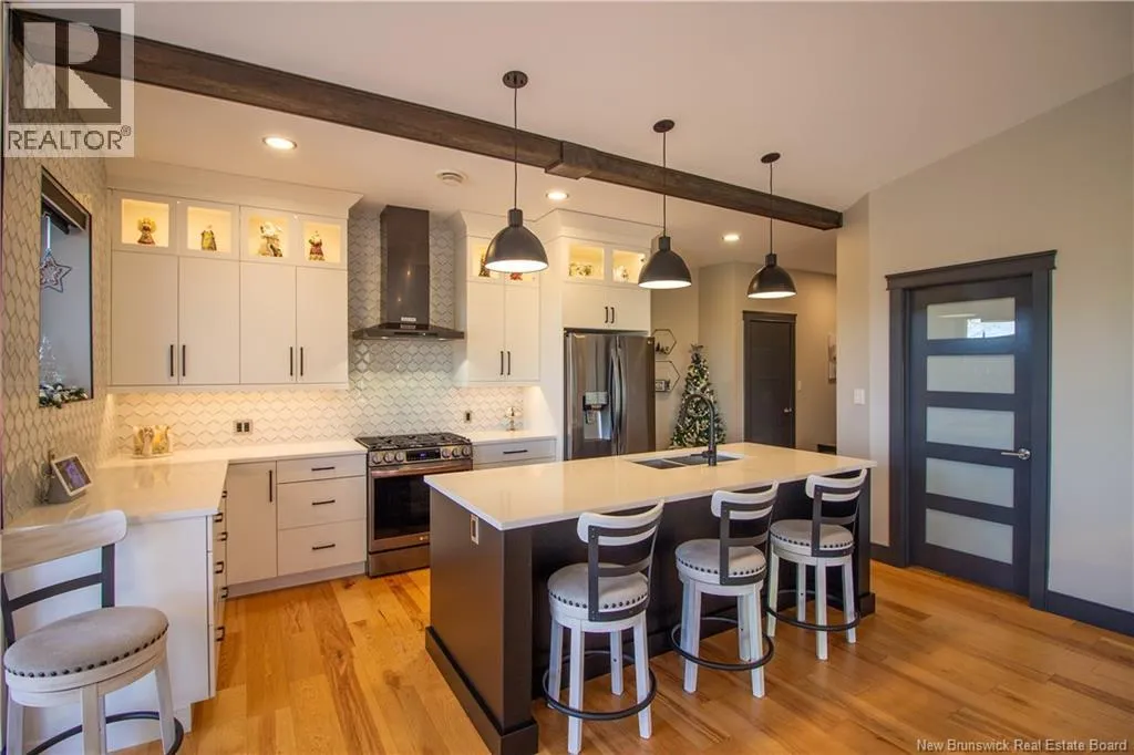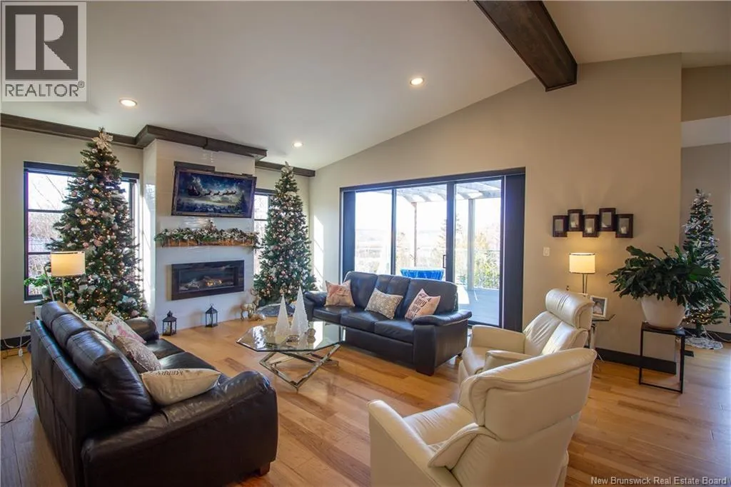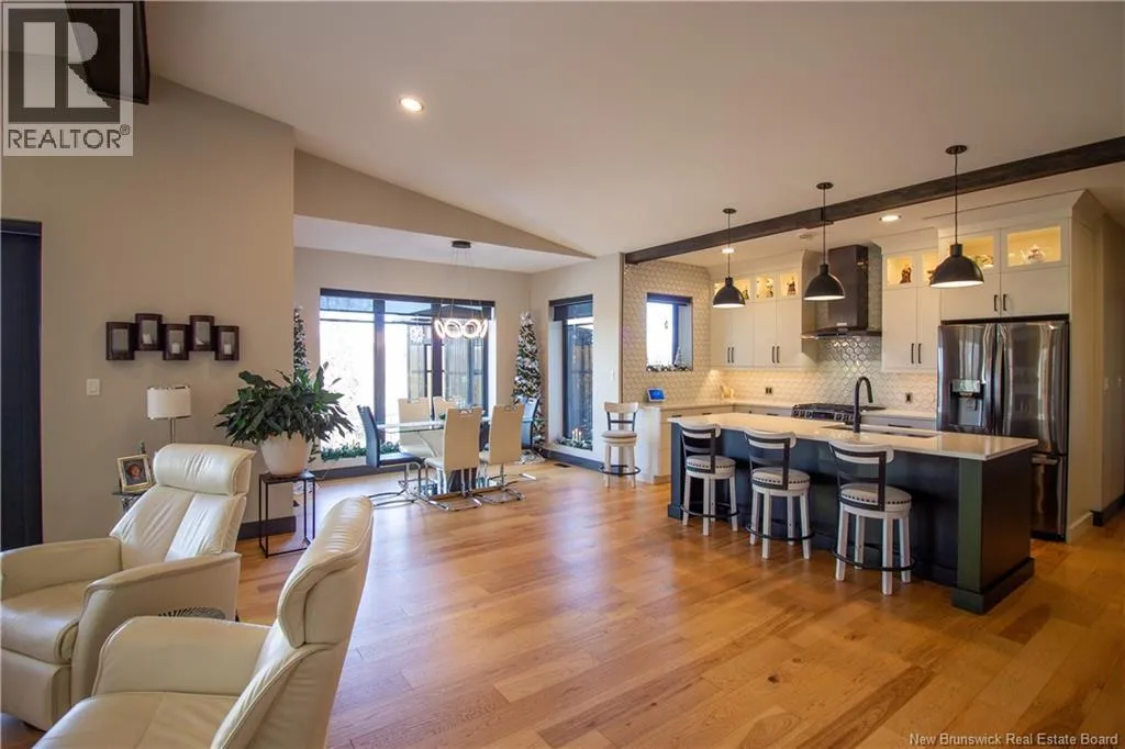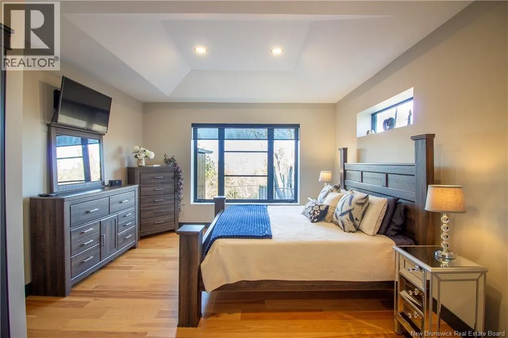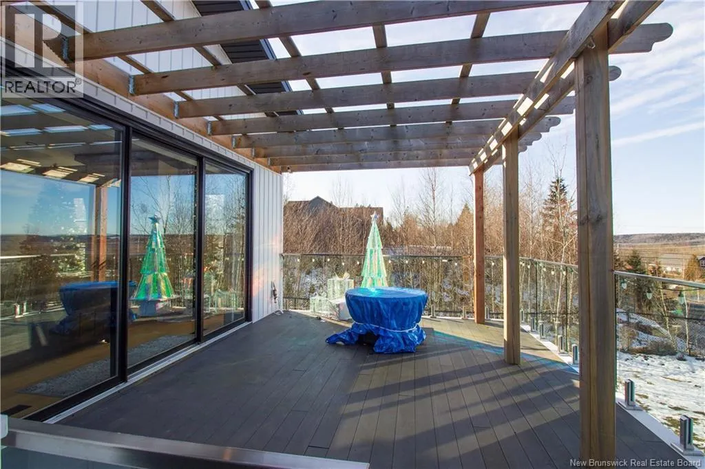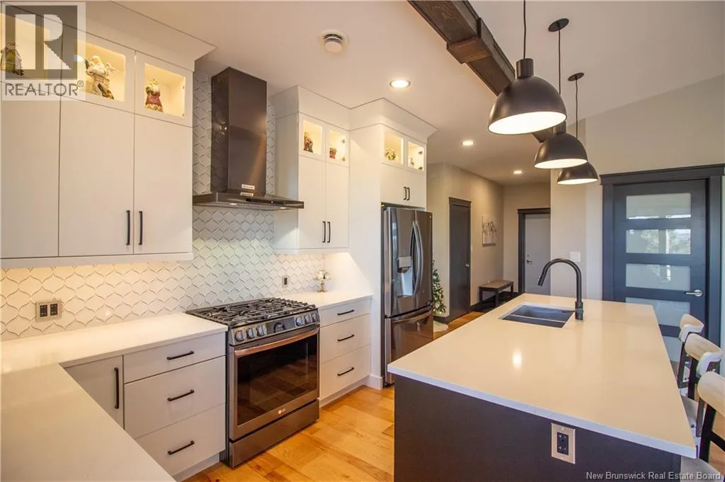 William Bell Dr to Robert Ross Blvd Welcome to 11 Robert Ross, this exceptional home is located 10 minutes from Quispamsis and walking distance to the new Summit Centre. Contemporary design and tasteful finishes, no expense spared. Stamped concrete covered fron veranda. Off the foyer you will find 2 bedrooms with large windows and 4 pc bath with laundry. Large living room with vaulted ceilings, fireplace, patio door to back deck (Composite) with pergola and glass rails looking over Darlings Lake and stunning sunsets. Open concept with stunning kitchen with quartz counters, cabinet lighting, walk in pantry with microwave and cabinetry, island, gas range and bright dining room. Master bedroom features a tray ceiling, pot lights, picture window, walk in closet and 4 pc ensuite with pocket door and custom dual head shower. Attached heated garage boasts epoxy floor, glass door, and a roll up screen door to enjoy the fresh air and add to your living space. Tile and engineered hardwood floors throughout main level. Down features a bar with sink, large sauna, family room, 2 bedrooms and a non-conforming bedroom. 4 pc bath, storage mechanical room, 2nd mechanical room with storage, ducted heat pump and generator panel. Fully finished basement with pot lights throughout, ICF foundation to the roof. Detached 2nd garage, fenced yard with lighting, concrete patio with enclosed hot tub, soffet lights, metal roof, central vac, and much more. Call today. (id:27476)