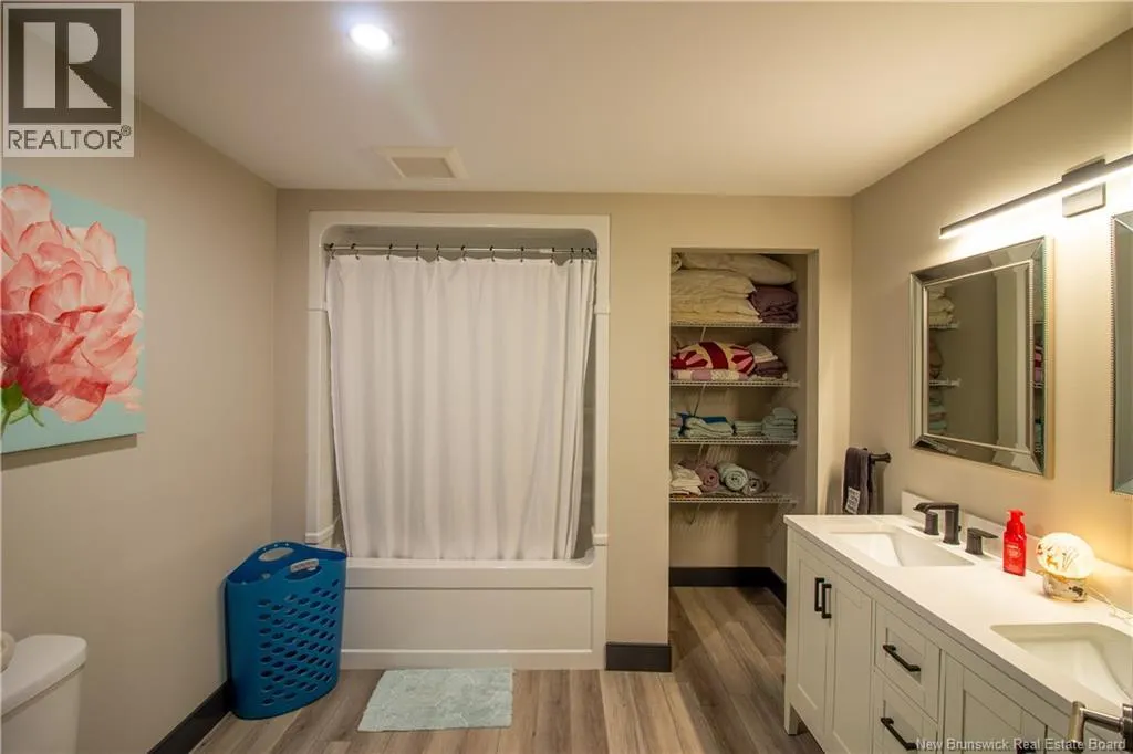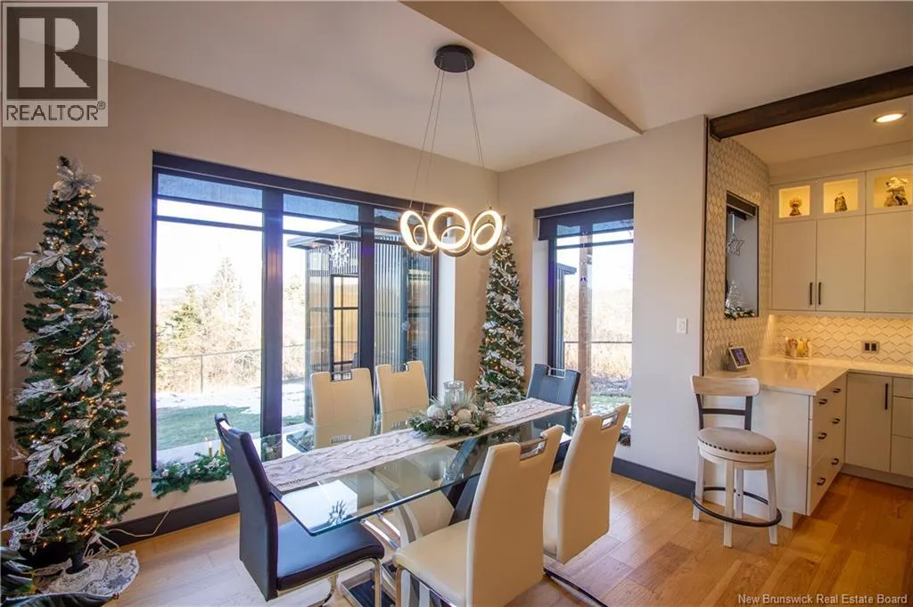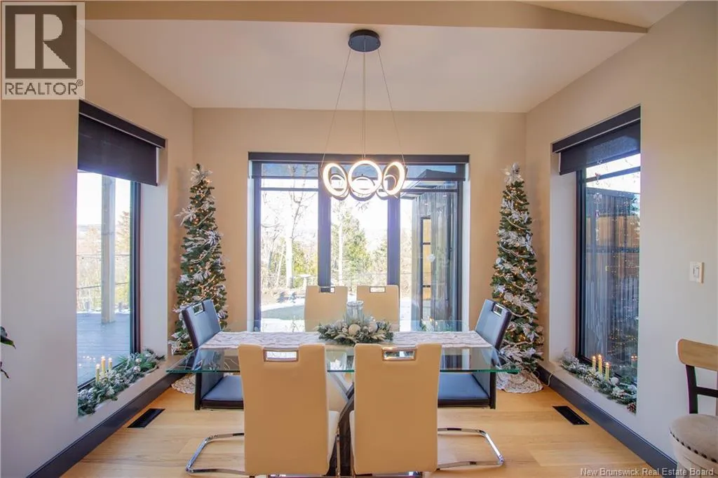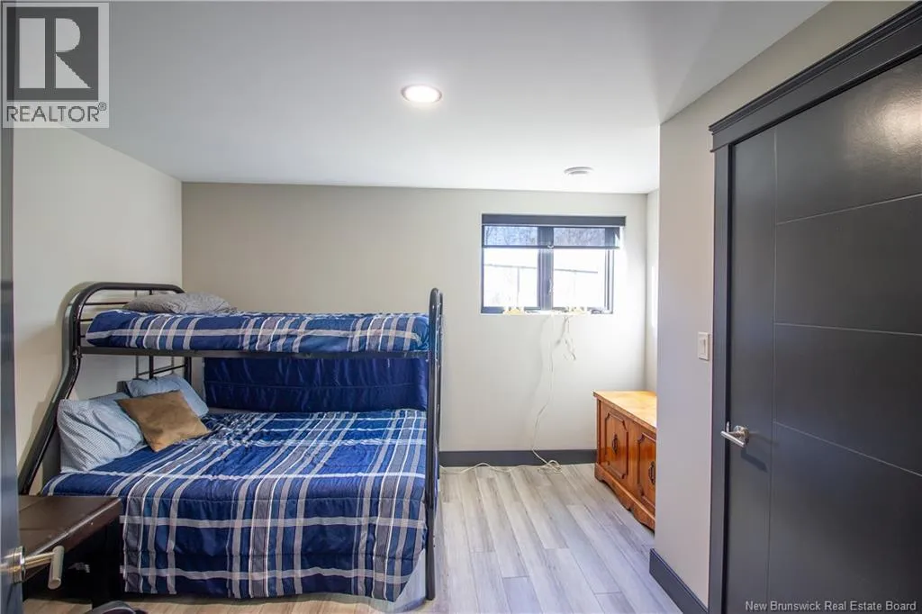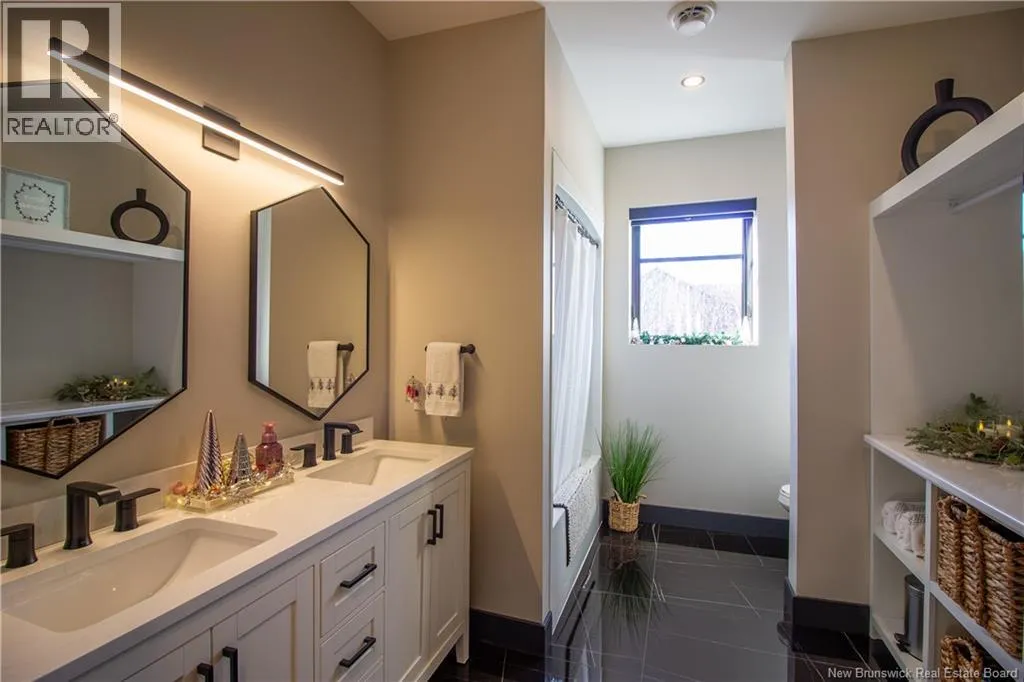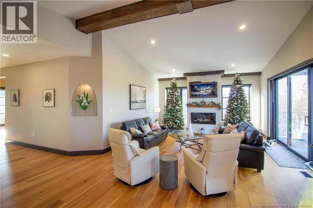 William Bell Dr to Robert Ross Blvd Welcome to 11 Robert Ross, this exceptional home is located 10 minutes from Quispamsis and walking distance to the new Summit Centre. Contemporary design and tasteful finishes, no expense spared. Stamped concrete covered fron veranda. Off the foyer you will find 2 bedrooms with large windows and 4 pc bath with laundry. Large living room with vaulted ceilings, fireplace, patio door to back deck (Composite) with pergola and glass rails looking over Darlings Lake and stunning sunsets. Open concept with stunning kitchen with quartz counters, cabinet lighting, walk in pantry with microwave and cabinetry, island, gas range and bright dining room. Master bedroom features a tray ceiling, pot lights, picture window, walk in closet and 4 pc ensuite with pocket door and custom dual head shower. Attached heated garage boasts epoxy floor, glass door, and a roll up screen door to enjoy the fresh air and add to your living space. Tile and engineered hardwood floors throughout main level. Down features a bar with sink, large sauna, family room, 2 bedrooms and a non-conforming bedroom. 4 pc bath, storage mechanical room, 2nd mechanical room with storage, ducted heat pump and generator panel. Fully finished basement with pot lights throughout, ICF foundation to the roof. Detached 2nd garage, fenced yard with lighting, concrete patio with enclosed hot tub, soffet lights, metal roof, central vac, and much more. Call today. (id:27476)