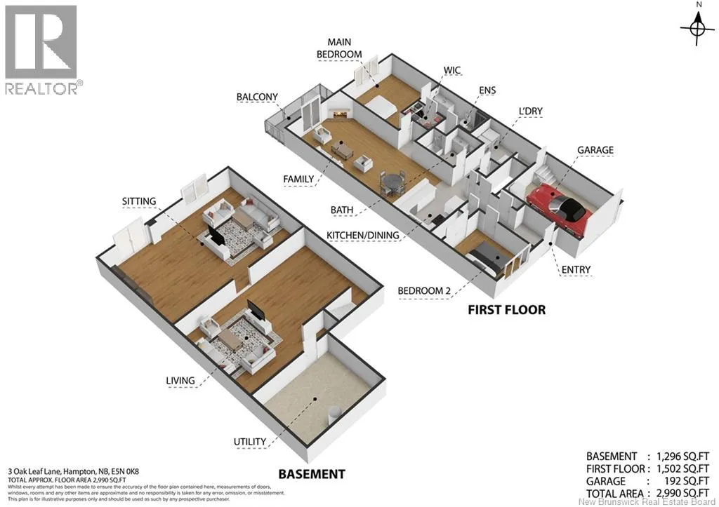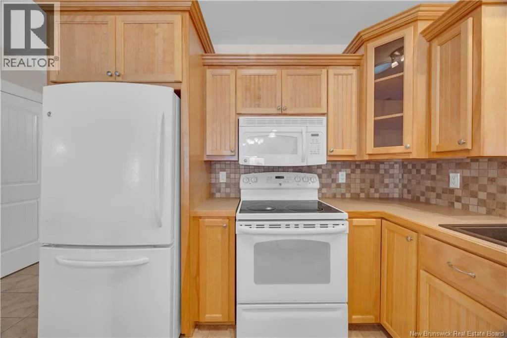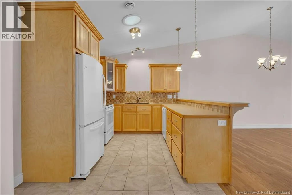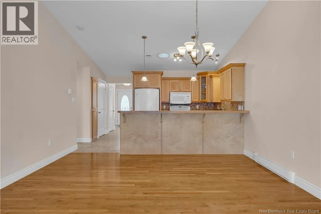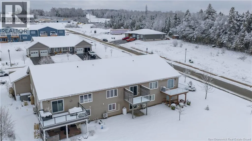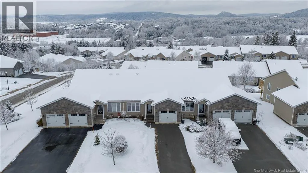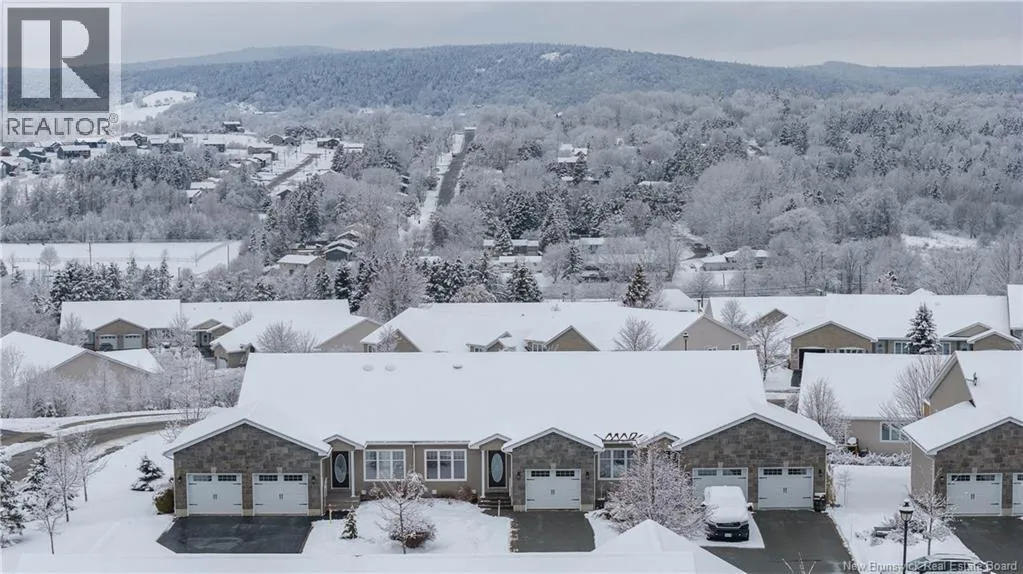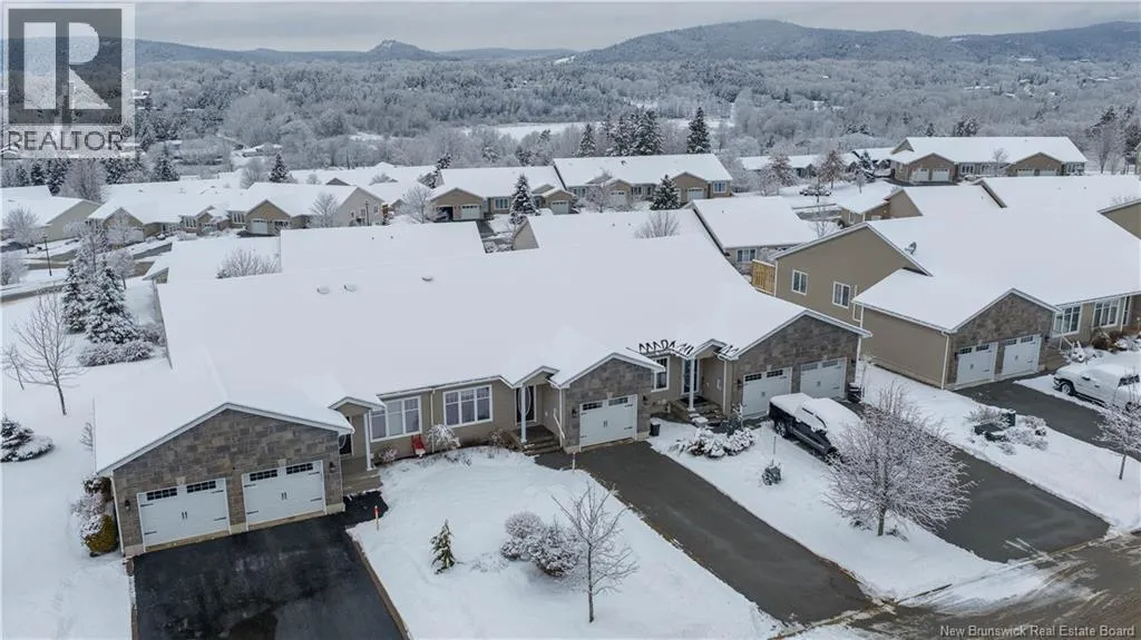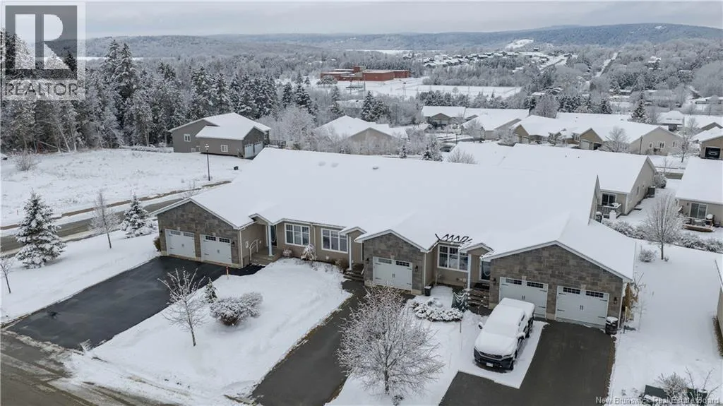 Turn onto Elmwood Drive from William Bell Drive. Turn right onto Oak Leaf and #3 is on the left side. Welcome to 3 Oak Leaf Lane, a beautifully maintained 2-bedroom, 2-bath garden home with a single attached garage, located in the desirable and friendly community of Hampton, NB. This spacious home offers stunning sunset and horizon views, an inviting open concept kitchen, dining and living room, gleaming hardwood floors, warm maple cabinetry, and the comfort of two owned heat pumps. The generous primary bedroom also features a glorious view, a large ensuite and walk in closet, while a second bedroom or home office, full bath, and laundry add everyday convenience on the main level. The walk-out basement is partially finished and already plumbed for an additional bathroom, making it easy to customize to your needs. Ideally located 2 minutes from the golf course and all amenities, and with a monthly fee of $160 covering snow removal, lawn maintenance, and water, this is low-maintenance living at its finest. (id:27476)