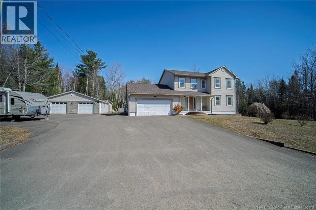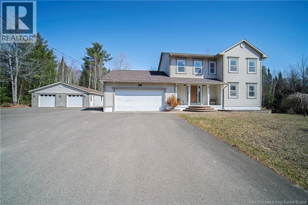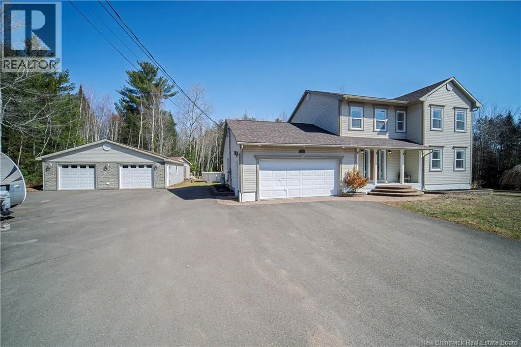Broad Road towards Geary, left onto Colton Drive Space, updates, and serious garage space. This two-storey home delivers. Main floor features updated kitchen with stylish finishes, bright dining area, and easy flow into living room, making everyday living and entertaining feel effortless. Main floor laundry room and convenient pantry add practical function right where you need it. Upstairs, huge primary bedroom offers walk-through closet and beautifully updated ensuite bath, while two additional bedrooms and full main bath complete the second level. Lower level adds even more living space with family room warmed by pellet stove, 4th bedroom, den/office, and 3rd full bath. Outside, this property keeps giving with attached double car garage with heat pump, detached oversized double car garage with heat pump, and above-ground pool ready for summer fun. Forced air heating and air conditioning, central vac, generator panel, and new roof shingles in March 2026 add comfort and peace of mind. Fantastic location. Minutes to Oromocto. (id:27476)