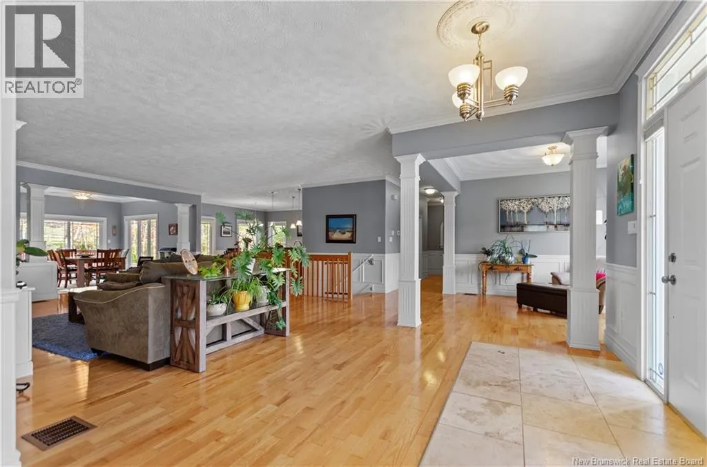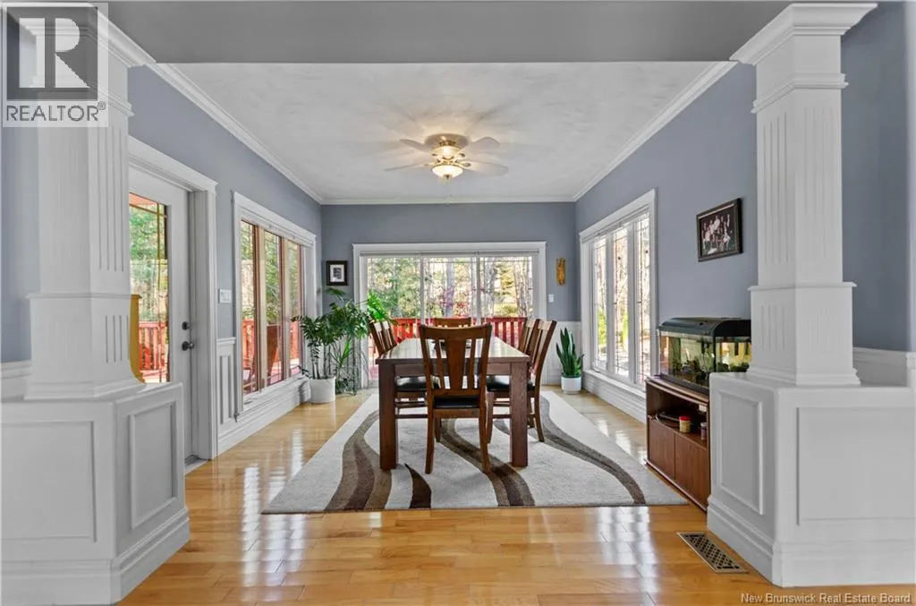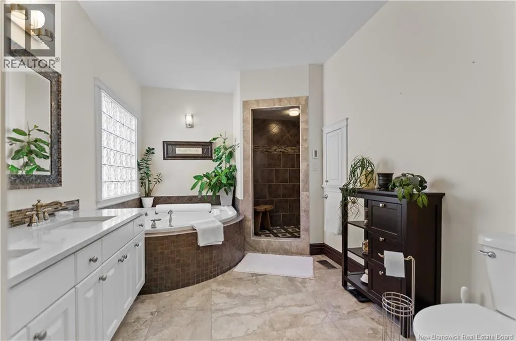 Hanwell to Eaglewood to Starling Spacious bungalow situated on a generous corner lot in the desirable Eaglewood subdivision. Offering over 2,300 sq ft of finished space on the main floor alone, plus a fully developed basement, this home provides ample room for the whole family. The main level features three generously sized bedrooms, including a primary suite with a luxurious ensuite boasting a tiled shower, heated floors, and a corner tub. The open-concept kitchen, dining nook, and living room create a welcoming and functional living space, while the separate formal dining area includes garden door access to a large, covered patioperfect for entertaining or relaxing in the private backyard. This level is complete with a main floor laundryroom, beautiful den and a full bath. The fully finished lower level adds even more versatility with a fourth bedroom complete with its own ensuite, a dedicated gym area, a media room, and abundant finished storage space. The property is complete with an attached double garage, a spacious 30' x 36' detached garage, and a full heat pump system for year-round comfort (id:27476)