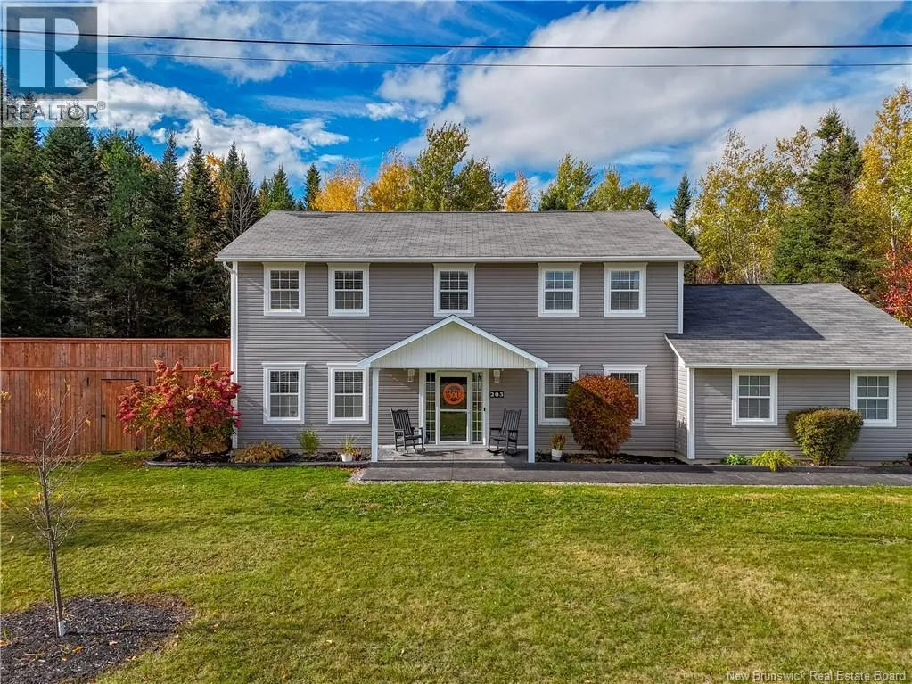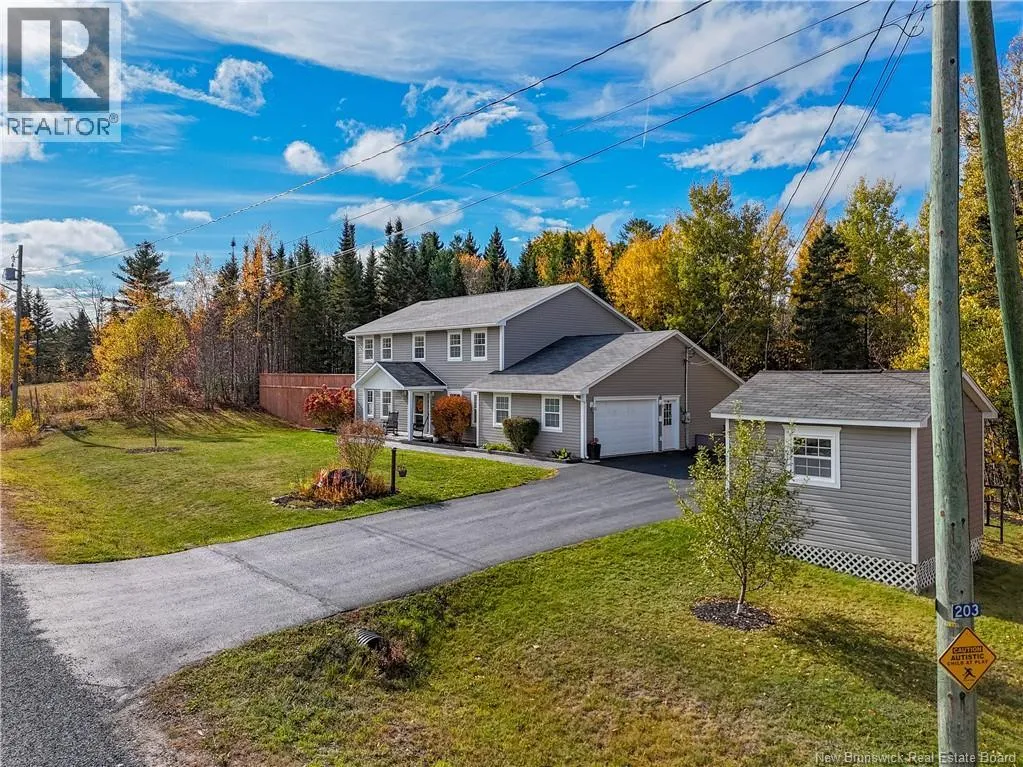 Hanwell Road, turn right on Marlow, left on Green Avenue to civic #203 Discover this spacious 4-bedroom, 2-storey home with an attached garage, located in a prestigious neighborhood on a beautifully landscaped lot. A newly added front extension features a stamped concrete walkway leading to a grand entryway with a closet, flanked by a den and office. The open concept main floor includes a large kitchen with ample cabinetry, a walk-in pantry and island, flowing into the dining and living areas with a cozy propane fireplace. Patio doors open to a 2-tiered composite deck (38x10 and 17x10) installed a year ago and a fenced backyard. On one side of the house, you will find an 18 ft heated saltwater pool. Additional main floor features: a large mudroom, laundry, 2-piece bath, utility room, with a backyard and garage access. Upstairs offers four generous bedrooms, including a primary suite with walk-in closet and 4-piece ensuite, plus another full bath. Outside, enjoy apple trees, a rhubarb patch, a clothesline, and a private lot with a brook. Well maintained and full of charm-this home is perfect for family living. (id:27476)