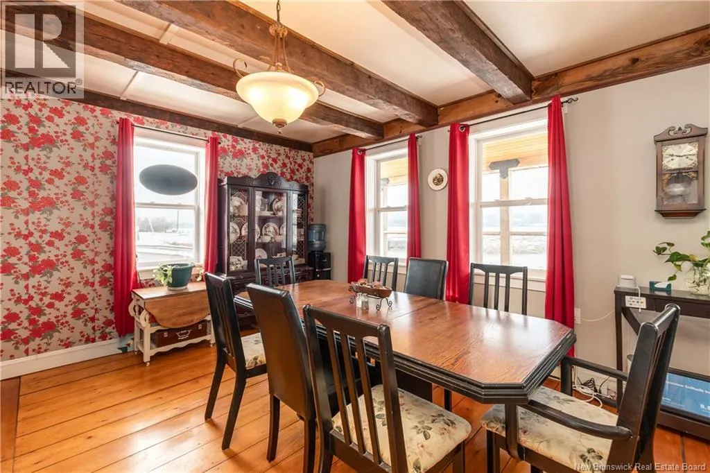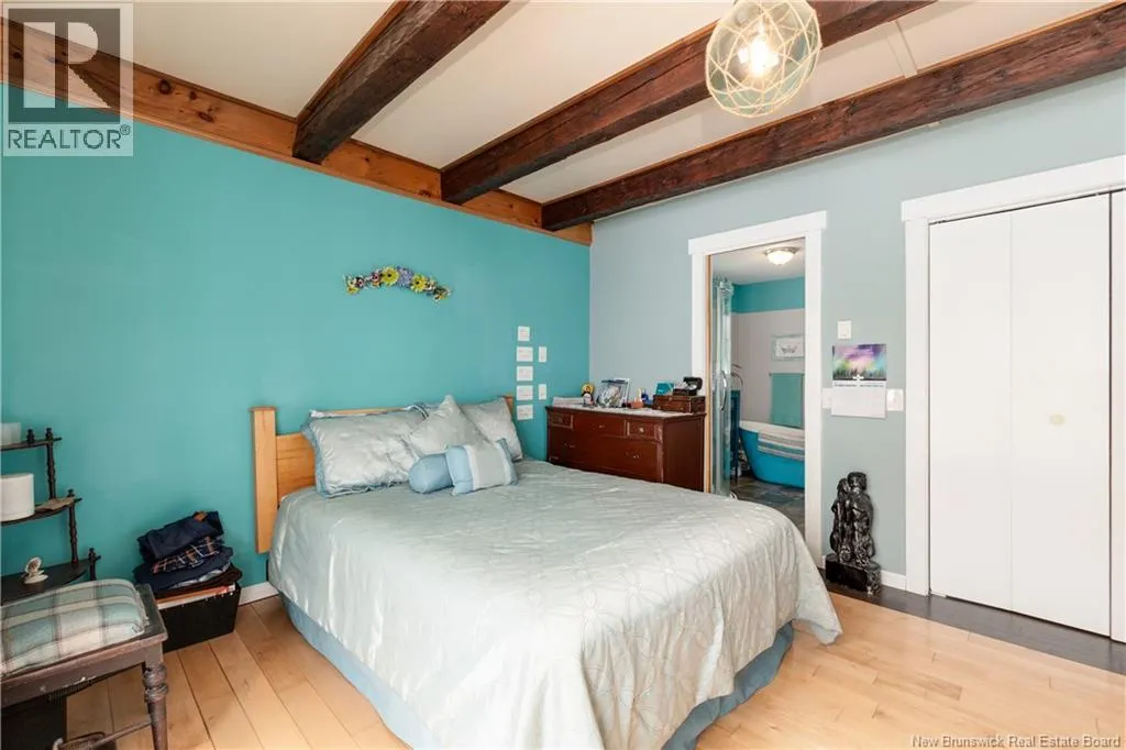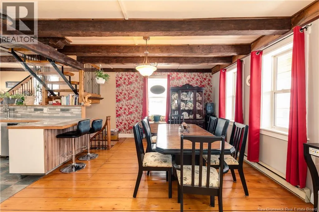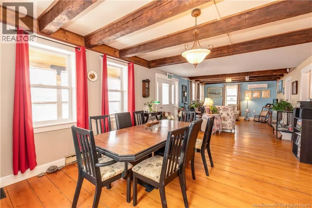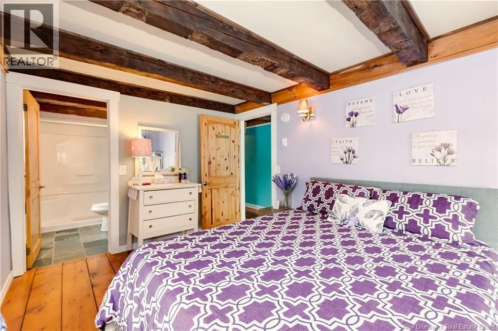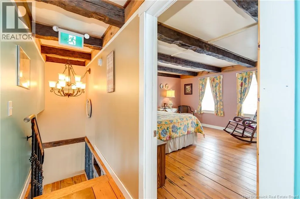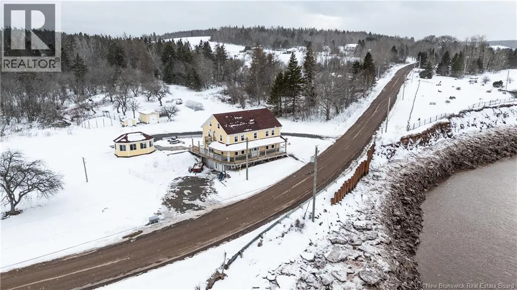 Take Route 114 from Moncton all the way to the village of Riverside-Albert (56 kms). At the Bank of New Brunswick Museum, go straight onto Route 915 for 4 kms,then turn left onto Mary's Point Road. Go 1.3 kms and turn into the driveway on the right. Welcome to Mountainview Solitude Inn at 186 Marys Point Road in Harvey. A beautifully restored shipbuilders home, rebuilt from the studs up, blending original charm with modern comfort, exposed axe-hewn ceiling beams on both levels, and beautifully restored wood floors. Currently operating as a successful B&B, the property offers 5 bedrooms, 5 bathrooms, and a double car garage. The main floor features a private owners suite (1 bed, 1 bath), along with a welcoming living room, dining area, and kitchen; perfect for hosting or everyday living. Upstairs, four spacious guest bedrooms each include their own ensuite bath, ensuring comfort and privacy. Set on approximately 2.5 acres, the property enjoys peaceful water views of the Shepody River with the Caledonia Mountains in the background making this a serene retreat-like setting. Located near Mary's Point, renowned for its remarkable shorebird activity, its a dream destination for bird watchers and nature lovers. With septic and water services in place for expansion via a lane giving access to three cleared sites for cottages, cabins, or domes. Continue as a B&B, host retreats, expand accommodations, or create your private escape. Popular destinations nearby include Mary's Point Beach, Cape Enrage & Sawmill Creek Bridge, plus Broadleaf Ranch & Studio On The Marsh. A rare opportunity blending lifestyle, income potential, and natural beauty; contact your REALTOR® to book your private showing. (id:27476)