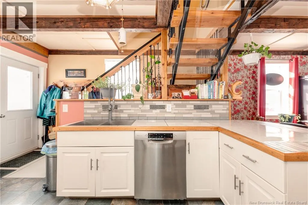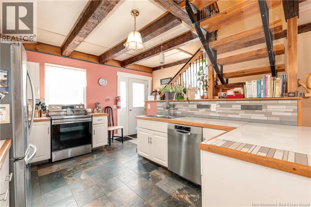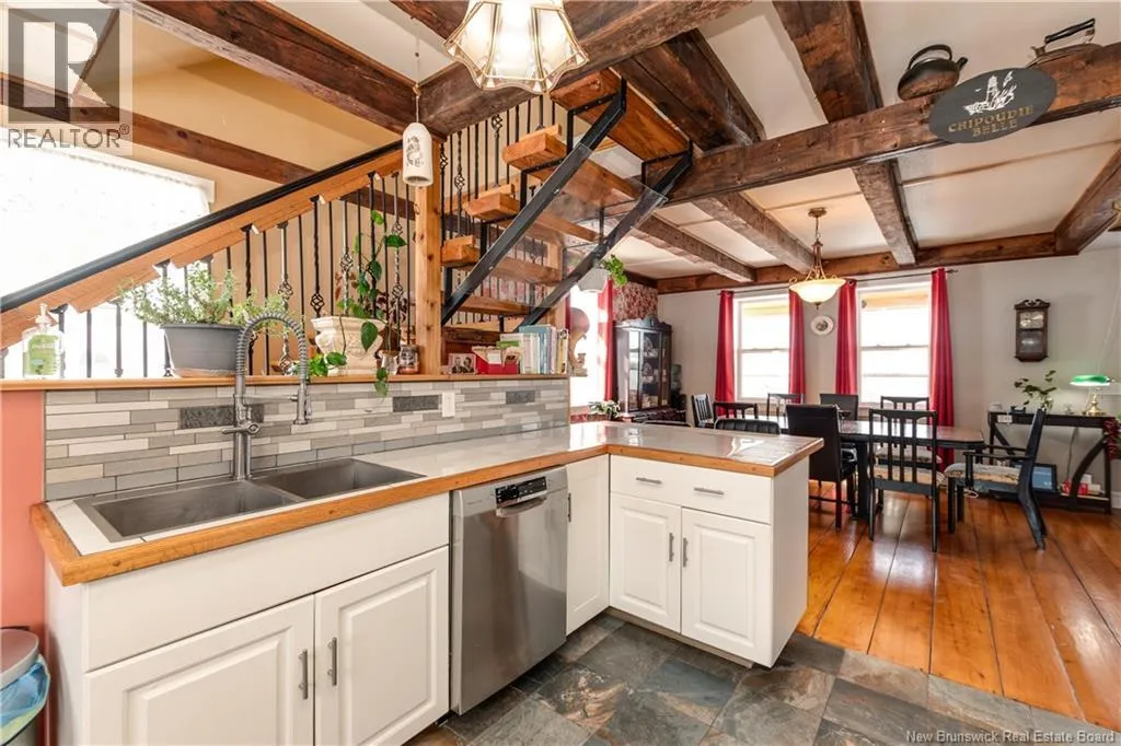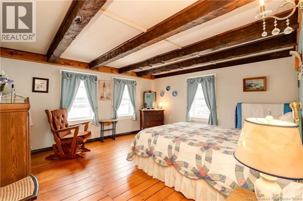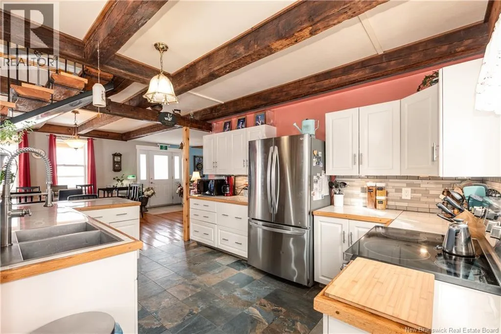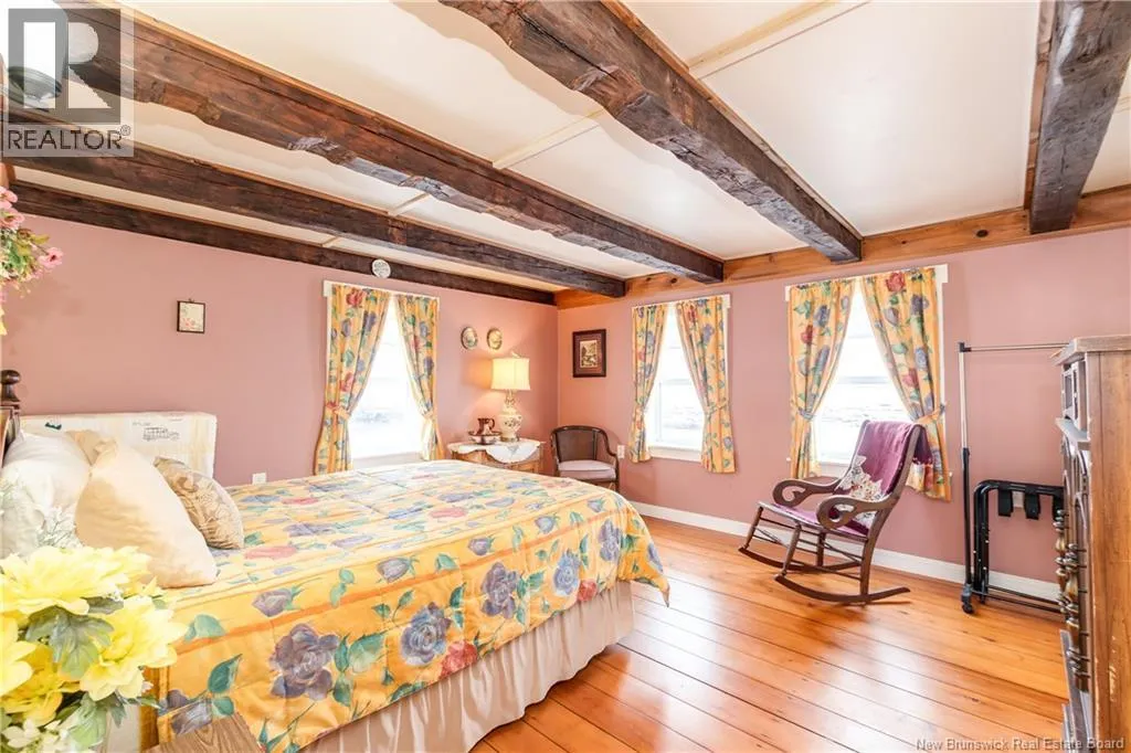 Take Route 114 from Moncton all the way to the village of Riverside-Albert (56 kms). At the Bank of New Brunswick Museum, go straight onto Route 915 for 4 kms,then turn left onto Mary's Point Road. Go 1.3 kms and turn into the driveway on the right. Welcome to Mountainview Solitude Inn at 186 Marys Point Road in Harvey. A beautifully restored shipbuilders home, rebuilt from the studs up, blending original charm with modern comfort, exposed axe-hewn ceiling beams on both levels, and beautifully restored wood floors. Currently operating as a successful B&B, the property offers 5 bedrooms, 5 bathrooms, and a double car garage. The main floor features a private owners suite (1 bed, 1 bath), along with a welcoming living room, dining area, and kitchen; perfect for hosting or everyday living. Upstairs, four spacious guest bedrooms each include their own ensuite bath, ensuring comfort and privacy. Set on approximately 2.5 acres, the property enjoys peaceful water views of the Shepody River with the Caledonia Mountains in the background making this a serene retreat-like setting. Located near Mary's Point, renowned for its remarkable shorebird activity, its a dream destination for bird watchers and nature lovers. With septic and water services in place for expansion via a lane giving access to three cleared sites for cottages, cabins, or domes. Continue as a B&B, host retreats, expand accommodations, or create your private escape. Popular destinations nearby include Mary's Point Beach, Cape Enrage & Sawmill Creek Bridge, plus Broadleaf Ranch & Studio On The Marsh. A rare opportunity blending lifestyle, income potential, and natural beauty; contact your REALTOR® to book your private showing. (id:27476)