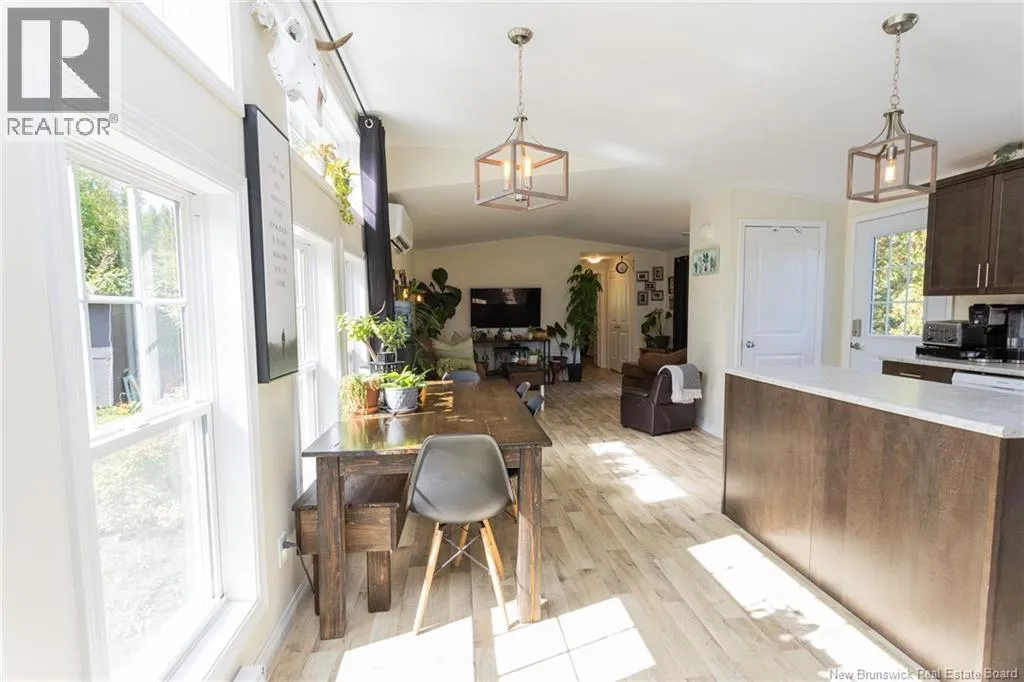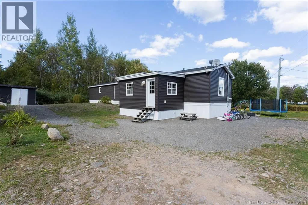 From Route 3 take Tweedside Road. Continue to Stairs Lane on left and go straight to bottom then keep left. Continue keeping left until civic on left just past Caribou Point Road Sitting on a nice 1 acre lot with the beautiful Oromocto Lake in sight, awaits this nearly new mini home with over 1300 sq ft of finished living space. This custom home features an added 16 x 10 mudroom, 3 bedrooms, 2 baths, and large central kitchen & dining area with cathedral ceiling and upper transom windows creating a very open and spacious atmosphere. The Primary bedroom has an ensuite bath & large closet and is at 1 end of the home for added privacy. The home is generator ready and has a ductless mini split heat pump for added comfort & efficiency. Also complimenting this property is a 16 x 20 storage building that's finished inside, above ground pool and play area for the kids out back within the small wooded area. Stairs Lane is a private year round road just off the Tweedside Road and is just minutes from the Village of Harvey. (id:27476)