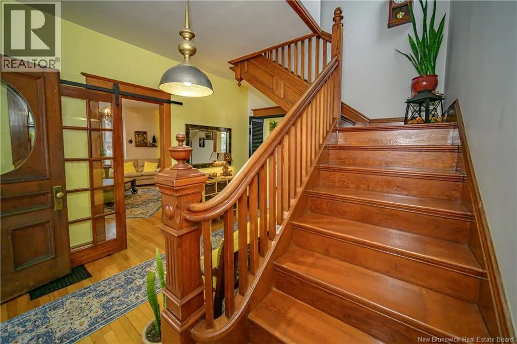 Rte 3 thru Harvey village, 9 km to York Mills/Rte 635 just beyond 'World Famous' Briggs & Little Woolen Mill to #3481, 'Sign Up' Introducing An Exceptional Property...Immaculate, Move In Ready Century Home complete w/Carriage House with 250' shoreline on Golden Pond, a.k.a. Briggs & Little Mill-Pond, York Mills (part of the Magaguadavic River system).The storybook setting speaks for itself. Vintage Victorian style home loaded with the character and charm of yesteryear, while retaining these characteristics:10' high ceilings, hardwood floors throughout & exquisite woodwork, this home has undergone quality upgrades: kitchen and bathroom renos, windows & doors, light fixtures, electrical, heat pump, interior paint, etc. The home consists of a welcoming south-facing sunporch overlooking the water, gracious front foyer, double parlour living/dining rooms w/fireplace, spacious country kitchen and a back mudrm/laundry on the main floor. Upst: affords 4 bedrooms & full bath. As well, there is the generous 38x30 carriage house w/loft offering ample space for garage, studio, work shop, etc. The property is a 'stones throw'from the World Famous Briggs 'n Little Woolen Mill and offers water views from virtually every room in the home. Please view our video. As well, go to the Harvey Rural Community website for more info on the area. (id:27476)