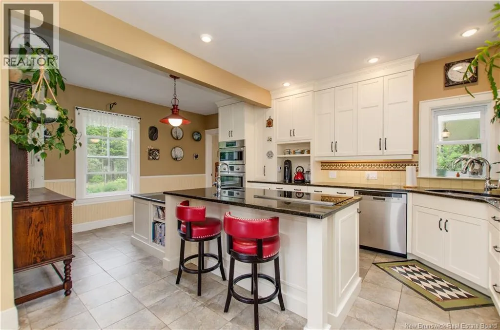 Route 114 onto Route 915 Welcome to 575 Route 915 on Fundys Coastal Drive. Set on two acres, this meticulously maintained property blends the timeless charm of a century home with a thoughtfully designed contemporary addition.Connected on both levels, the two spaces offer excellent flexibility for family living or potential B&B income.The original three-bedroom, 1.5-bath home is set up as a vacation rental & features a wrap-around porch,widows walk,bay windows, & a beautiful winding staircase. The addition offers a private entrance and a custom kitchen that opens to a bright, open-concept living and dining area with a woodstove and views of the landscaped, fenced backyard. Upstairs, the expansive primary bedroom offers the option to be divided into an additional bedroom or home office. The spa-inspired bathroom includes a walk-in shower and soaker tub. Additional highlights include an attached double garage, basement with in-floor heating, extensive flower and vegetable gardens, multiple decks, a screened-in porch, mature trees, sheds, and a chicken coop. Updates include the roof (2009), windows (2014),& front porch (2017). Enjoy a private rural setting just minutes from village amenities,with scenic hiking trails and beautiful beaches nearby. This is more than a home,it's a private rural lifestyle property,offering space, serenity,income opportunity & timeless character in a setting that is removed from the noise of the world. (id:27476)