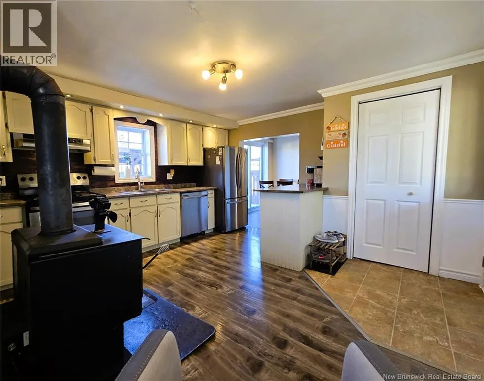 From Tracadie, turn toward Chemin Louis G Daigle, turn onto Sylvain St. the house will be on your left, you need to drive in a small alley. This home has received significant upgrades that represent real savings for the coming years: asphalt shingle roof, PVC windows, copper wiring and a 100-amp breaker panel, all replaced in 2010. Plumbing is copper and PVC. Heating and cooling are provided by a new heat pump, baseboard heaters and a wood stove. The crawl space is insulated at the ceiling, protecting the main floor above. Inside, there is an entry with closet, a dining area with wood plank ceiling, a functional kitchen with cabinets and pantry with barn-style door, a spacious living room with wood plank walls and well-kept floors, as well as a primary bedroom of good size with access to a balcony in need of repair and two additional bedrooms upstairs via carpeted staircase. Outside, the home features faux brick and beige vinyl siding, a shed and a private back deck. The location is excellent: school, church, convenience store with restaurant, community hall and ATV trails nearby, only 12 minutes from Tracadie (hospital and shops), 10 minutes from beaches and close to the Tracadie River. Tracadie is a dynamic town in the Acadian Peninsula offering a hospital, supermarkets, restaurants, cafés, schools, cultural and sports activities, as well as privileged access to beaches and trails. An affordable and functional home that combines comfort, peace of mind and a practical location! (id:27476)
