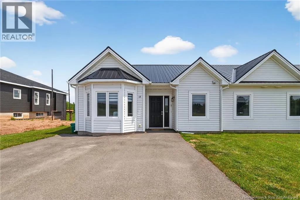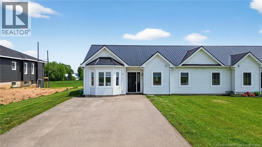 Riverview to Hillsborough to Salem Rd; up the hill to Braam on the right; 19 is on the right; left side unit IMMEDIATE OCCUPANCY AVAILABLE! Talk about ease of living in the beautiful countryside. CONVENIENCES OF THE CITY; CALMNESS OF THE COUNTRY in this CHARMING ONE-LEVEL LIVING SEMI-DETACHED, built on a slab. This home offers a literal breath of fresh air. Located in the landscape of Hillsborough yet only minutes from Riverview & Moncton, here you will enjoy serenity away from the hustle & bustle. The large deck in the back overlooks an over-sized, glorious backyard for that feeling of spaciousness and provides a 10x10 garden shed. Beautiful, bright & airy, the inside will not disappoint with its openness and everything you need in a one-level living home. Welcome to this beautiful 2 bedroom home where youll enter to the inviting foyer and into the open concept of a large living room with 3 bright beautiful windows plus patio doors to the back deck, a spacious dining area, and a stylish kitchen with plenty of rich wood, shaker style cabinetry & a large Island with counter seating for three. The primary bedroom is roomy and offers ample space along with its W/I closet & 4 PC Ensuite. A second bedroom at the front is perfect for guests; along with the main 2 PC bath. The Laundry/Utility room completes the living space; everything at your finger tips. HEATED FLOORS THROUGHOUT; METAL ROOF; all window blinds are included; Mini-Split heat pump in the open concept living area; all rooms have a separate elect wall heater. A charming find in an ideal location. (id:27476)
