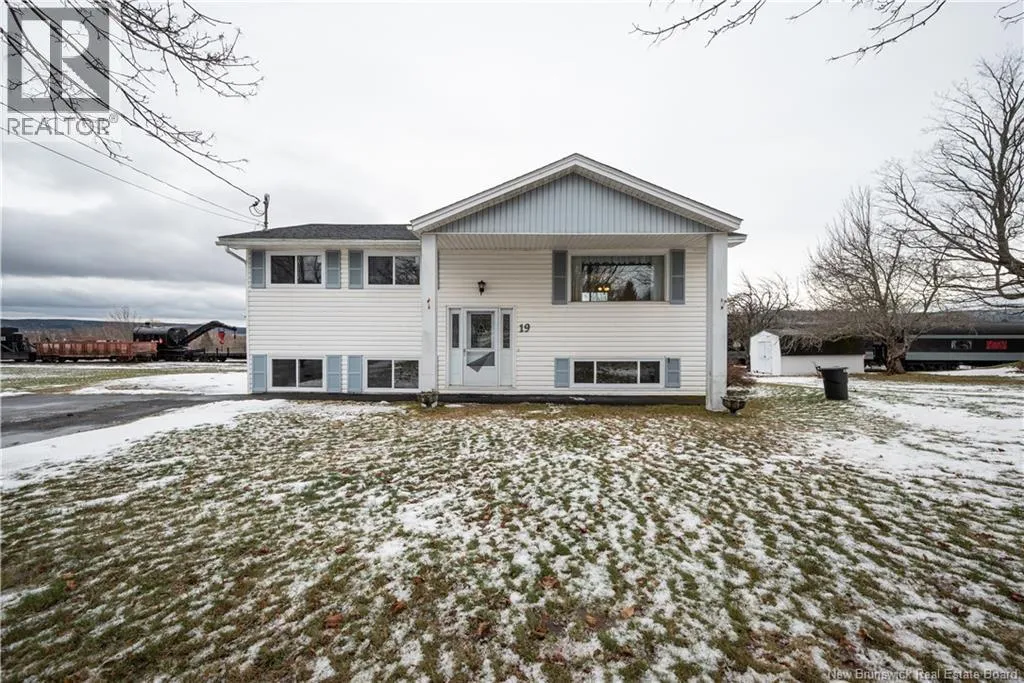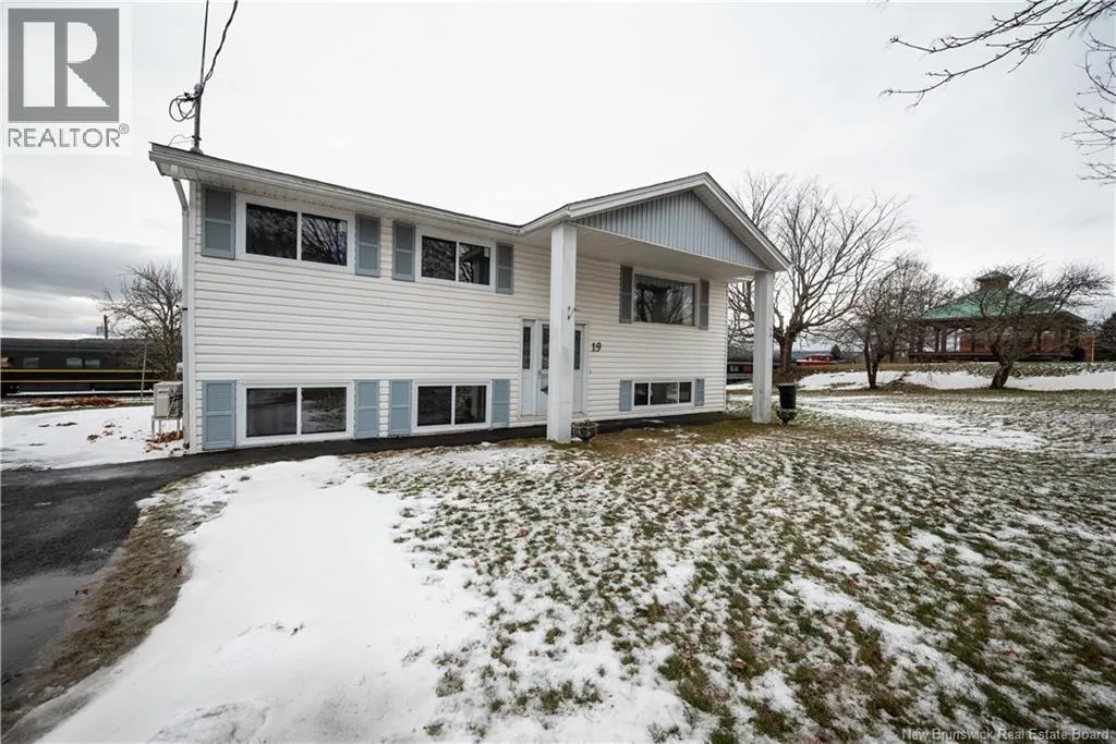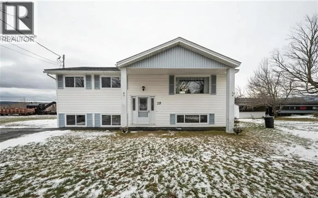 Route 114 onto Legion St Welcome to 19 Legion St, Hillsborough.This well maintained home is warm & inviting with 2 large pillars at the front door adding character. With an open concept kitchen, living room & dining room on main level along with 2 bedrooms & a 4 piece bathroom.Large patio doors in the dining room lead to the back deck (2021) with a picturesque view of the river in the distance. The kitchen is spacious with lots of counter space & custom made oak cabinets. The lower level features a large family room, rec room/gym, 2 bedrooms & 2 piece bathroom & laundry room. The home has oversized windows (2024 & 2025). Heated by electric baseboard, 2 mini splits (2018 & 2022) & a propane fireplace. The property also has a large storage shed & is landscaped with apple, pear and maple trees & is tucked away on a quiet street with no back neighbors. The NB Railroad Museum, operating in Jul & Aug, borders the property to the rear, is a mecca for railroad enthusiasts. This inviting home offers the perfect balance of small-town charm and outdoor lifestyle. Just minutes from your doorstep, enjoy leisurely walks around the local duck ponds, where quiet paths and natural scenery create a calming start or end to the day. Nearby is a golf course and the White Rock Rec Area with mountain bike, cross country skiing and ATV trails. If you are looking for a peaceful rural family home close to schools (K-12), cafe, gas stn, grocery store & more-here is your chance!Contact your REALTOR® today to book a showing. (id:27476)