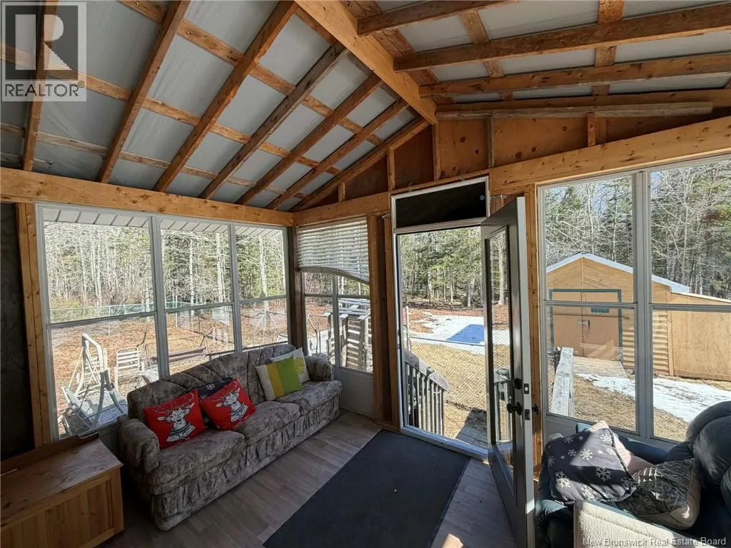 From NB112 take Hunter's Home Lane to Pine Tree Lane Welcome to 140 Pine Tree Lane in Hunter's Home, NB! Sitting on almost 5 acres of stunning forest, teeming with wildlife, and located only 1 hour from Moncton, 40 mins from Sussex or 20 mins to Havelock, this beauty of a Camp is looking for its new owners! Well built with purpose and intention, this solid off grid camp has a super cool and functional layout with two distinct sections, each with its own living room and 2 bedrooms, one with bunkbeds. Enough room for the whole family and friends! Hassle free metal roof and skirting. 12 X 16 storage shed with panel connection for generator. Close to ATV and snowmobile trails. Immerse yourself in nature and enjoy its calm tranquility and peaceful energy. Must be seen to be fully appreciated. TONS of value here! It wont last long. Book your showing today. (id:27476)