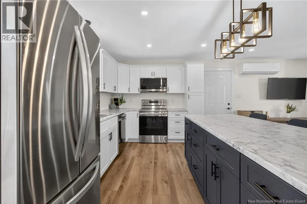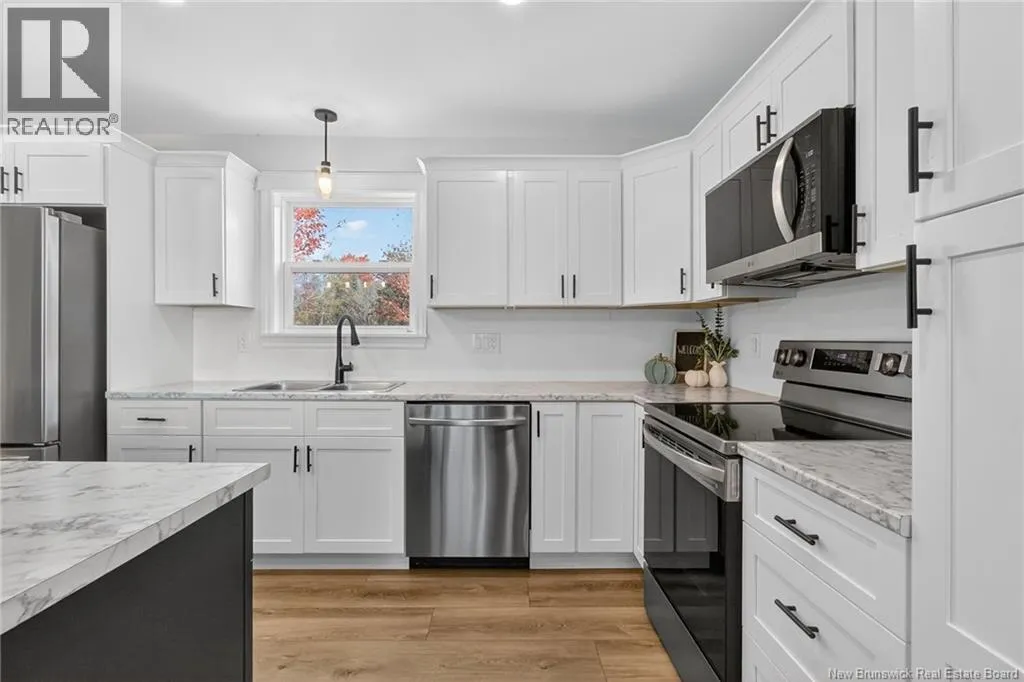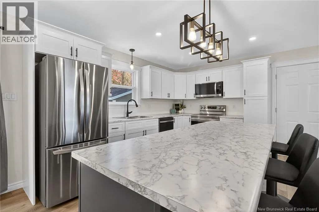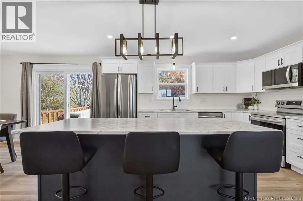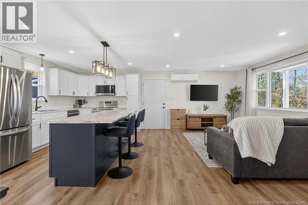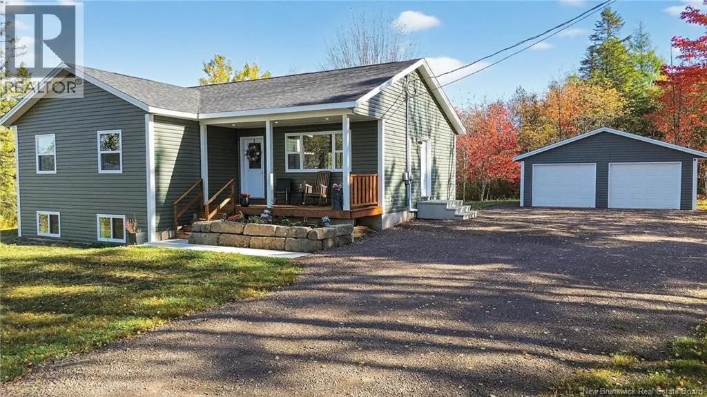 Approximately 5 km from Lyons Country store on NB-126. House is on the right. This stunning, move-in-ready 1-year-old bungalow offers modern living, unbeatable privacy, and a prime locationsituated on over 1 acre in a quiet, country-like setting, yet just minutes from the city and all its amenities. - Inside, you'll fall in love with the bright open-concept design, where the living room flows effortlessly into the kitchen and dining area. The bright and spacious kitchen features a large island offering extra seating and prep space, all framed by oversized windows that fill the space with natural light. - The main level offers 3 spacious bedrooms and 2 full bathrooms, including a luxurious primary suite with a walk-in closet and private ensuite. Main floor is complete with laundry and an energy-efficient mini split heat pump which keeps the home comfortable year-round. - A beautiful open staircase with custom railing leads to a large finished family room in the basement, featuring generous windows that brings in plenty of natural light. The basement also includes an unfinished area with three large windows and a bathroom already framedoffering incredible potential for future development. The double detached garage provides ample space for vehicles, hobbies, or additional storage. This move-in-ready home is perfect for those looking for privacy, space, room to grow, and unbeatable locationall in one incredible package! (id:27476)