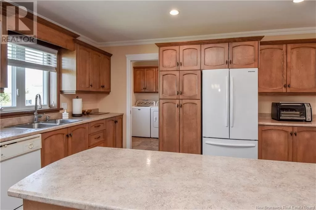Nestled on the waterfront in Inkerman, in the heart of the magnificent Acadian Peninsula, this splendid 4-bedroom, 2-full-bathroom property has it all! Upon entering, you'll be greeted by a storage area leading to a superb open-concept kitchen, perfect for entertaining, adjacent to a cozy dining room. The large living room bathes in natural light and offers a warm and inviting space. There are also two bedrooms, including a spacious master bedroom, as well as a sumptuous, modern bathroom with heated floors, ideal for your moments of relaxation, as well as the practical and well-located laundry room. A heat pump ensures your comfort all year round. The fully finished basement includes two additional bedrooms and a second full bathroom. This property offers several amenities: a generator panel, central vacuum, air exchanger, and an alarm system. The attached garage is equipped with a kitchenette. You'll also enjoy a solarium with stunning water views, beautifully landscaped grounds, a composite front porch, a paved entrance, and a shed. A true favorite awaits! (id:27476)