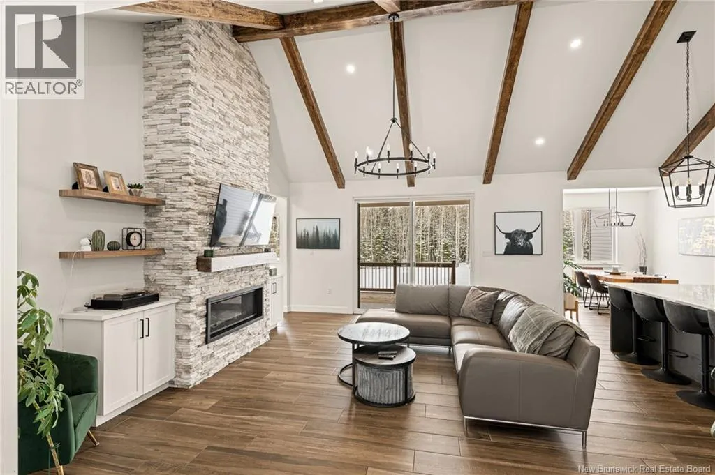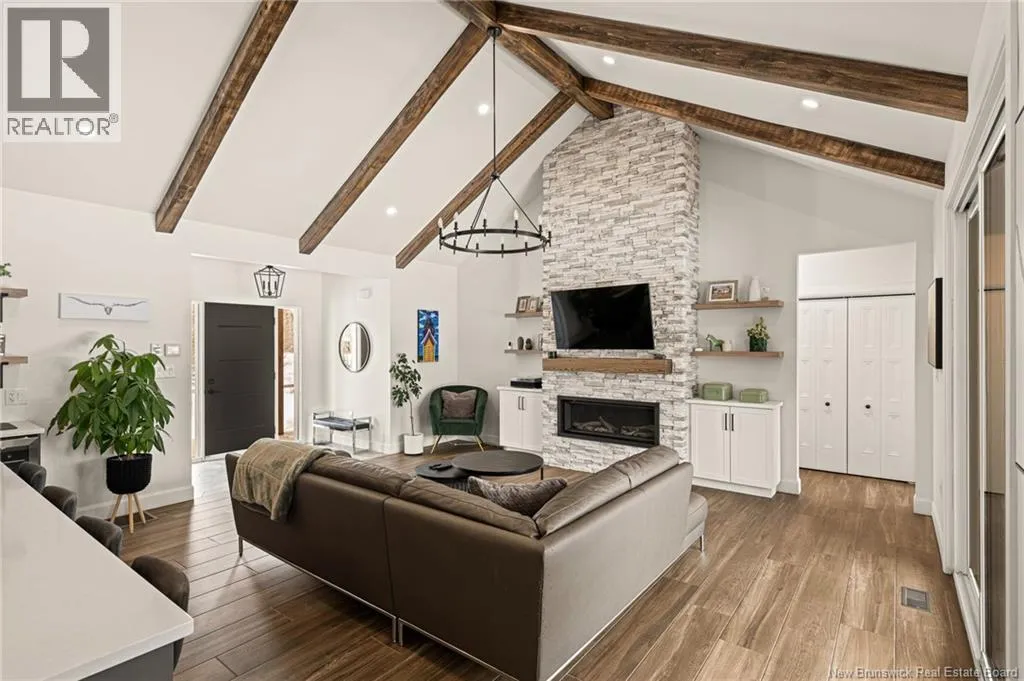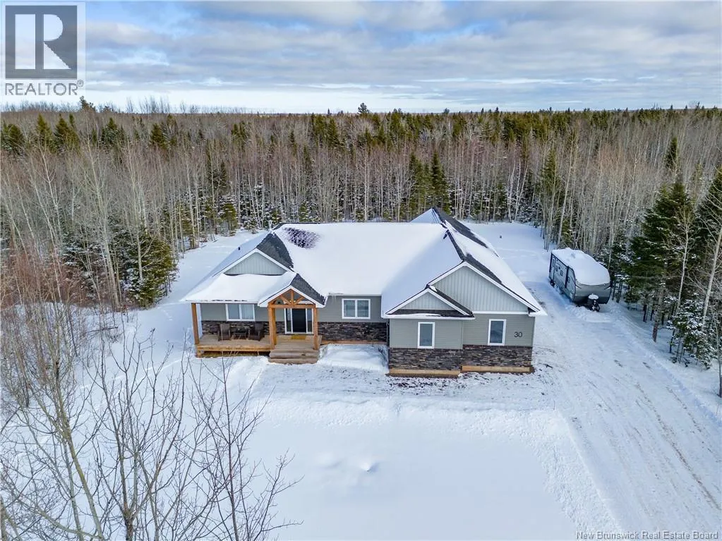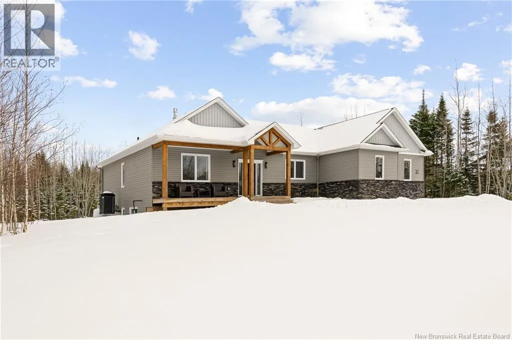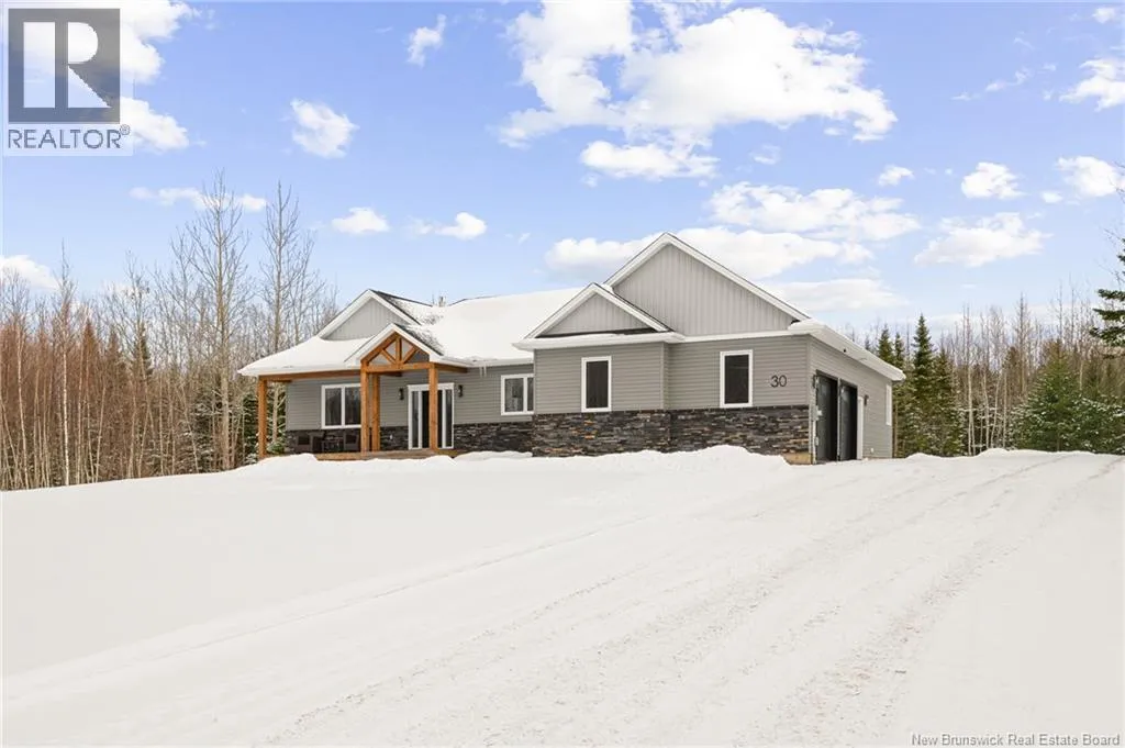 Elmwood Dr to Rte 115 Irishtown, right onto Cape Breton Rd, right onto Des Jardins. *** BEAUTIFUL BUNGALOW ON 1.35 ACRE PRIVATE WOODED LOT // FORCED AIR HEAT PUMP // EXTRA LARGE ATTACHED DOUBLE GARAGE *** Welcome to 30 Des Jardins, a stunning Craftsman-style home built in 2023, nestled on a large treed lot. The attractive exterior features vinyl, stone, and SOLID BEAMS. Inside, enjoy year-round heating/cooling comfort with a TRANE forced air heat pump. A spacious front entrance with closet welcomes you into the open concept main living area. The living room is a showstopper with its 13ft CATHEDRAL CEILING adorned with wooden beams, PROPANE FIREPLACE, and striking STONE ACCENT WALL. The kitchen features QUARTZ COUNTERTOPS, PROPANE RANGE, WALK-IN PANTRY, and COFFEE STATION. Youll also enjoy a cozy dining room and patio door access to the COVERED CEDAR DECK WITH SKYLIGHT, perfect for relaxing or entertaining. Retreat to the primary bedroom, featuring TRAY CEILING, LUXURIOUS 5pc ENSUITE with dual sink, soaker tub, custom tiled shower, and walk-in closet. 2 spare bedrooms (one with walk-in closet), 4pc bath, large linen closet, LAUNDRY ROOM, and MUDROOM with BUILTS-IN complete this level. Descend the hardwood staircase to the partially finished basement, offering VINYL PLANK flooring, potlights, HUGE FAMILY ROOM, gym, and ample space for 2 more egress bedrooms and roughed-in for a full bath! Additional features include QUARTZ COUNTERTOPS in bathrooms, VINYL PLANK flooring in bedrooms, underground gutters, drainage, and power. A meticulous find! (id:27476)