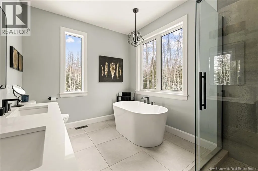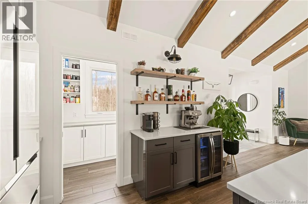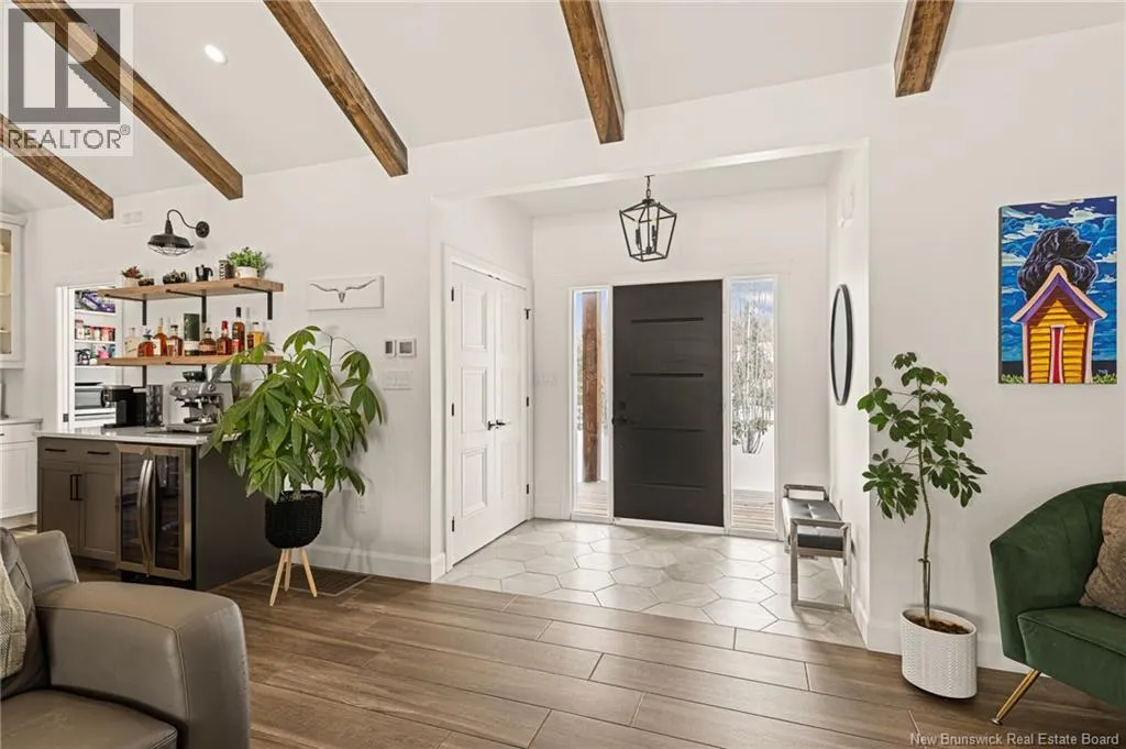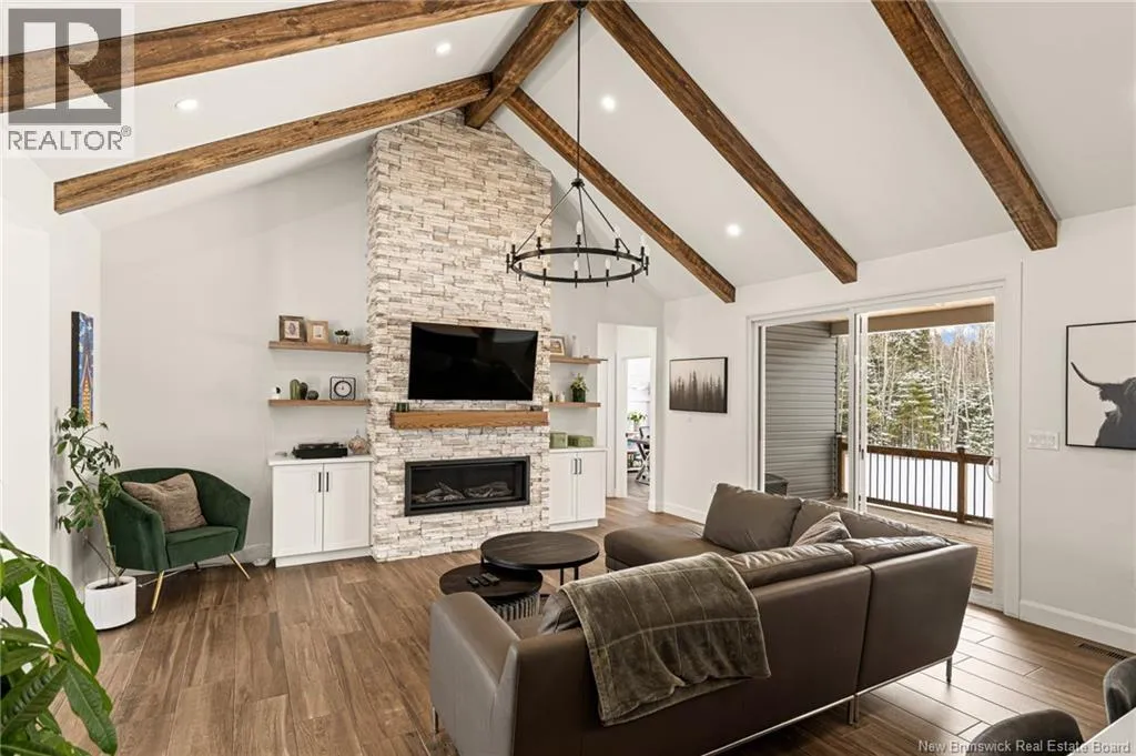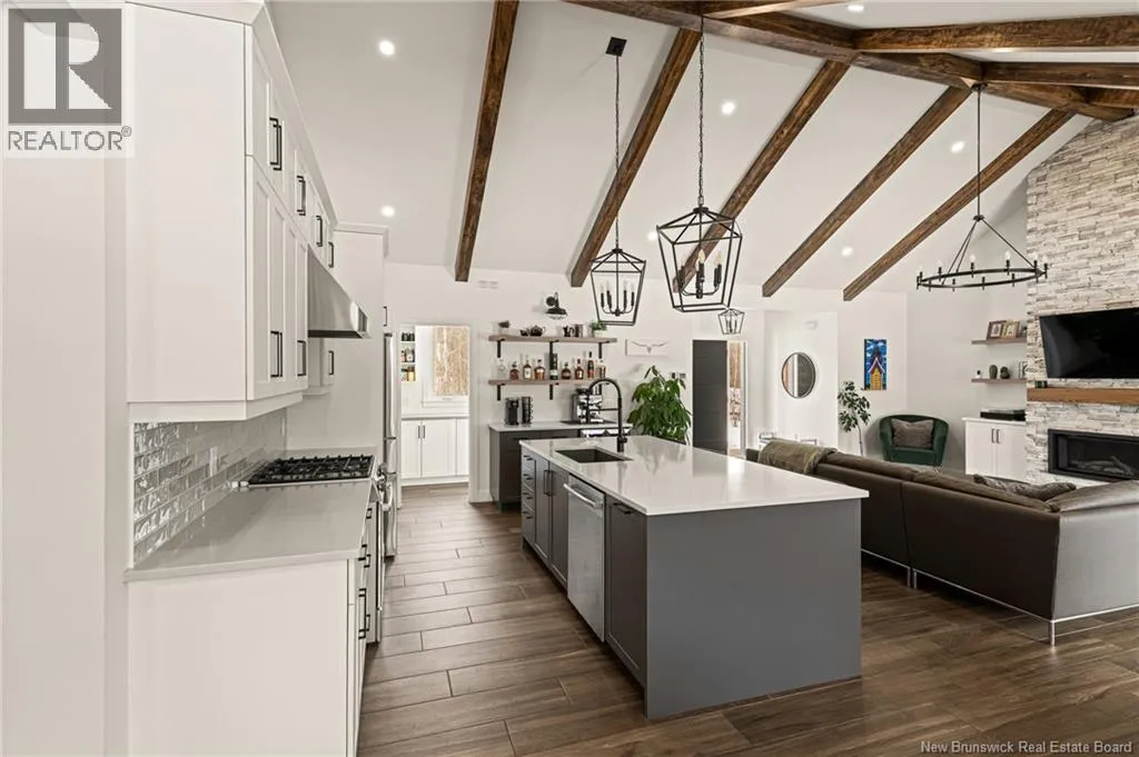 Elmwood Dr to Rte 115 Irishtown, right onto Cape Breton Rd, right onto Des Jardins. *** BEAUTIFUL BUNGALOW ON 1.35 ACRE PRIVATE WOODED LOT // FORCED AIR HEAT PUMP // EXTRA LARGE ATTACHED DOUBLE GARAGE *** Welcome to 30 Des Jardins, a stunning Craftsman-style home built in 2023, nestled on a large treed lot. The attractive exterior features vinyl, stone, and SOLID BEAMS. Inside, enjoy year-round heating/cooling comfort with a TRANE forced air heat pump. A spacious front entrance with closet welcomes you into the open concept main living area. The living room is a showstopper with its 13ft CATHEDRAL CEILING adorned with wooden beams, PROPANE FIREPLACE, and striking STONE ACCENT WALL. The kitchen features QUARTZ COUNTERTOPS, PROPANE RANGE, WALK-IN PANTRY, and COFFEE STATION. Youll also enjoy a cozy dining room and patio door access to the COVERED CEDAR DECK WITH SKYLIGHT, perfect for relaxing or entertaining. Retreat to the primary bedroom, featuring TRAY CEILING, LUXURIOUS 5pc ENSUITE with dual sink, soaker tub, custom tiled shower, and walk-in closet. 2 spare bedrooms (one with walk-in closet), 4pc bath, large linen closet, LAUNDRY ROOM, and MUDROOM with BUILTS-IN complete this level. Descend the hardwood staircase to the partially finished basement, offering VINYL PLANK flooring, potlights, HUGE FAMILY ROOM, gym, and ample space for 2 more egress bedrooms and roughed-in for a full bath! Additional features include QUARTZ COUNTERTOPS in bathrooms, VINYL PLANK flooring in bedrooms, underground gutters, drainage, and power. A meticulous find! (id:27476)