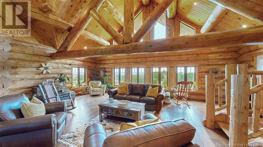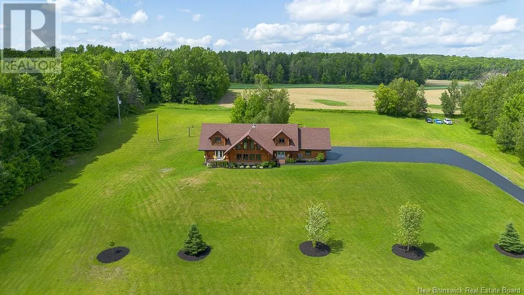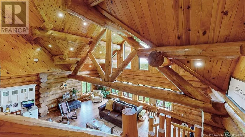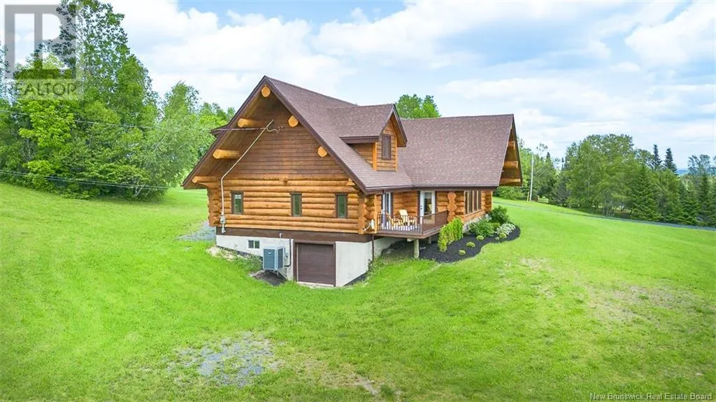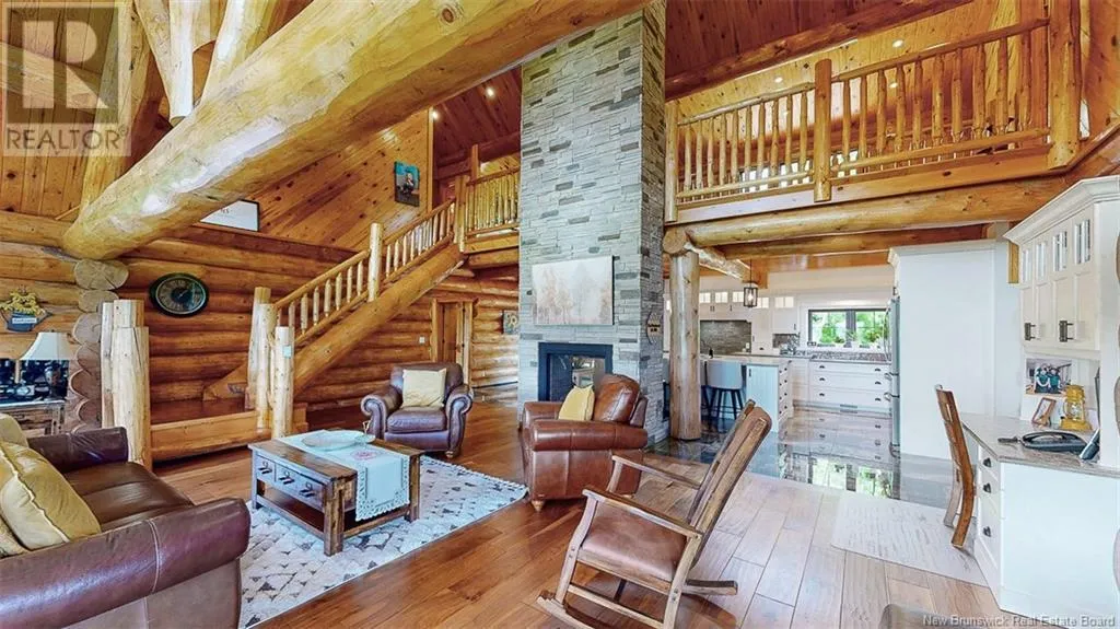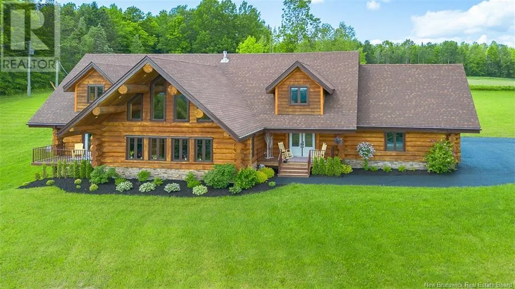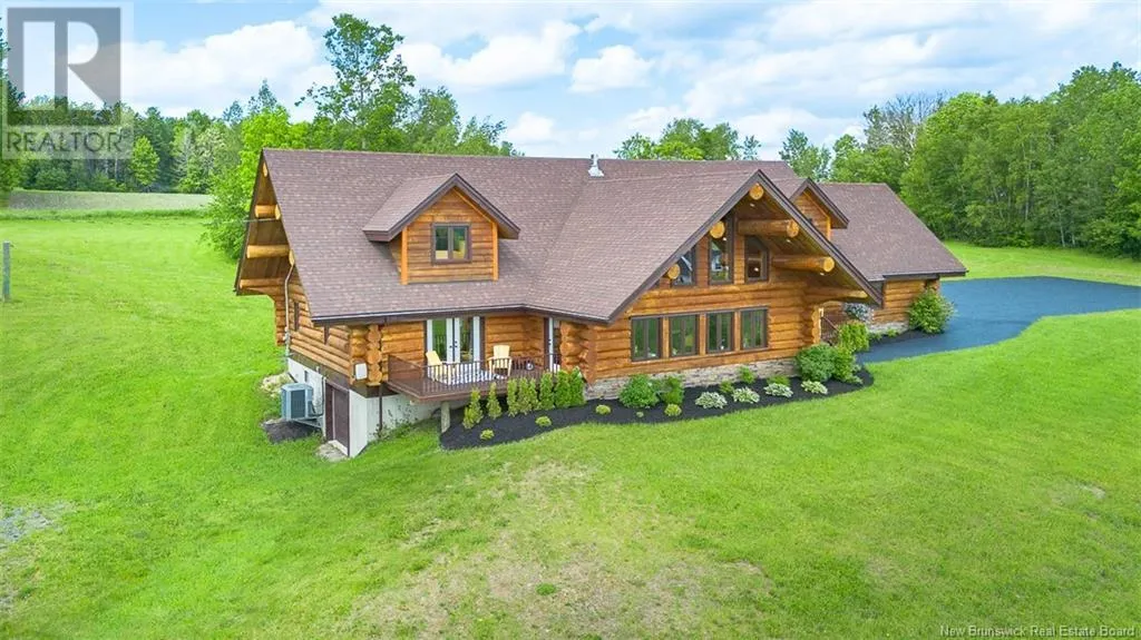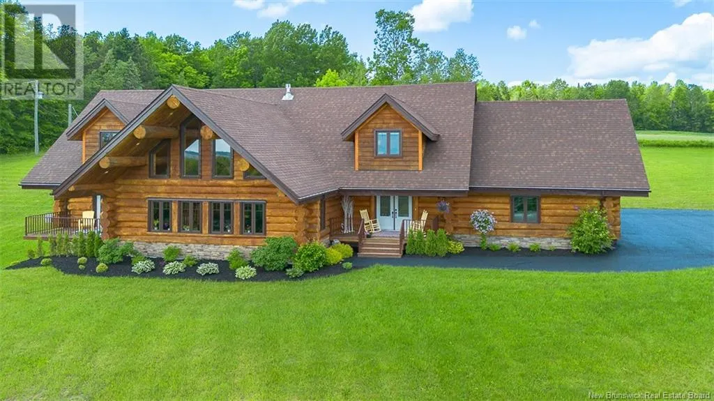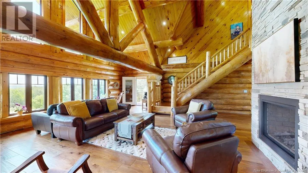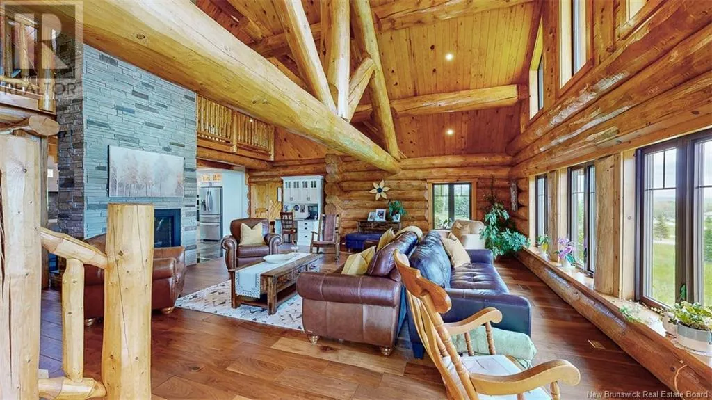 Just 2 minutes from Woodstock and the TCH, this stunning 3.3-acre property offers the perfect blend of rustic charm and luxury living. The custom log home features a massive great room with soaring 22' ceilings and 2 sided propane fireplace, open to a custom chefs kitchen and dining area. A hidden door leads to a butlers pantry, while the main level also includes a spacious mudroom, laundry, and a showstopping primary suite with a handmade copper tub and unique tile shower. Step outside to enjoy two covered porches and a large back deck with a hot tub. Upstairs boasts 3 large bedrooms, full bath, office, den, and a striking catwalk overlooking the main living space. A 3-car fully finished garage with epoxy floor, full basement with overhead door, ducted heat pump, and standby generator complete this one-of-a-kind dream home. (id:27476)