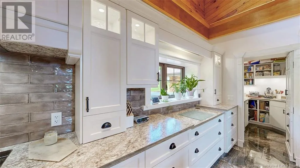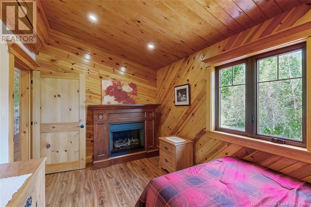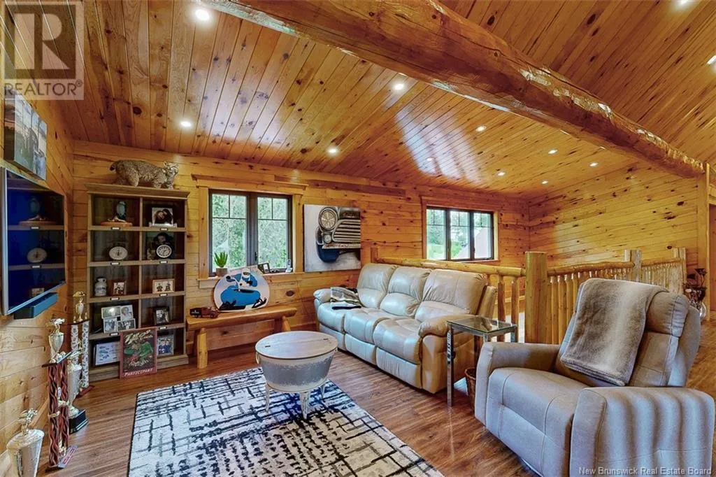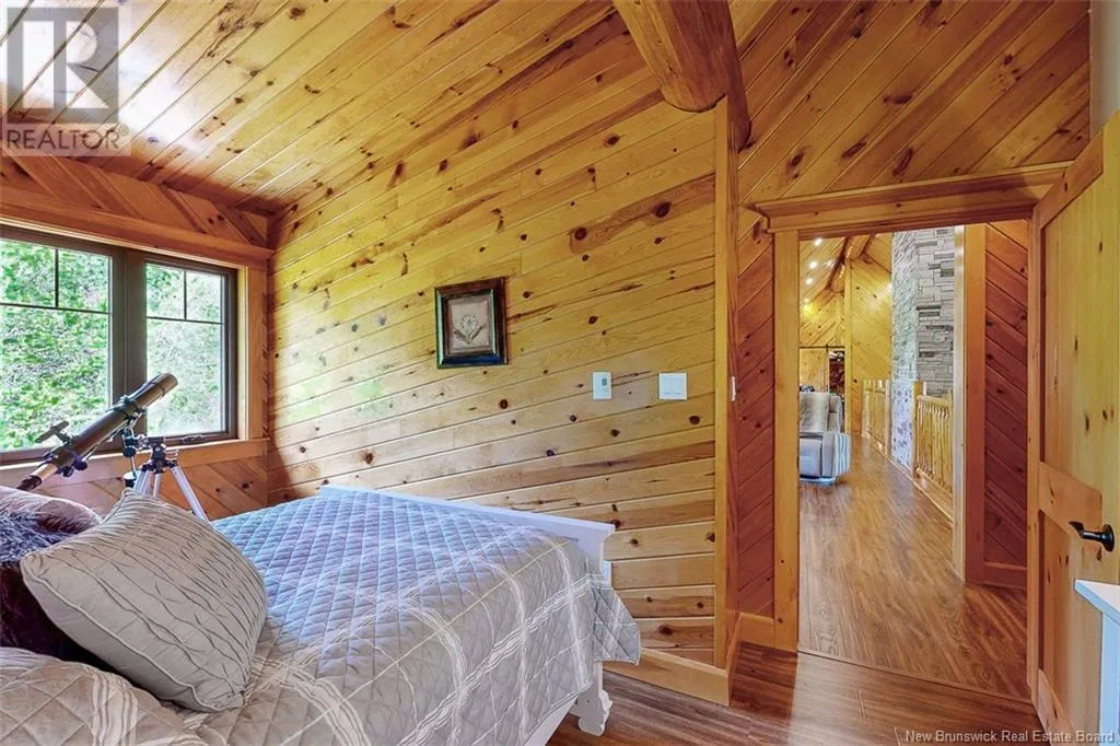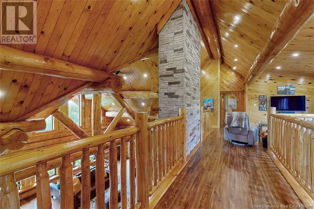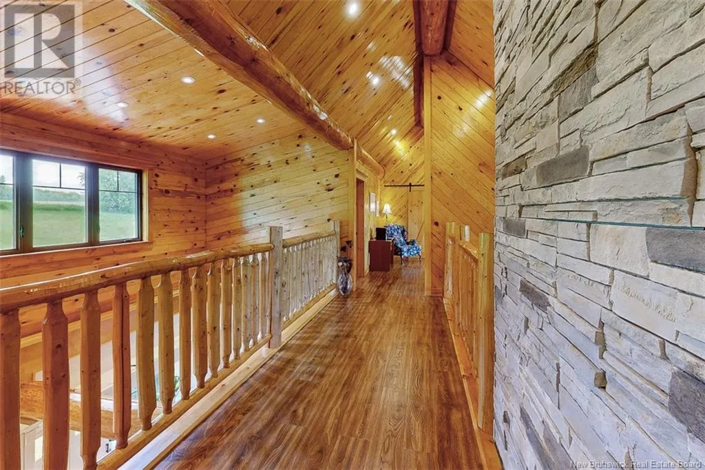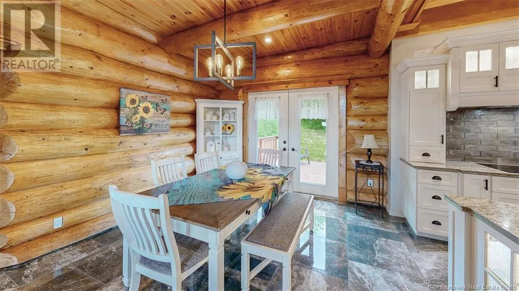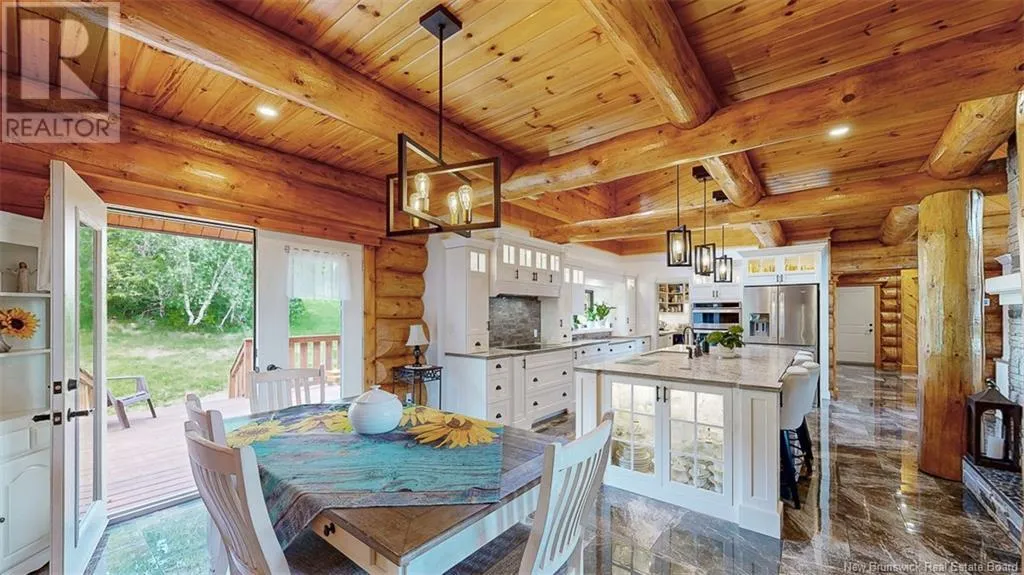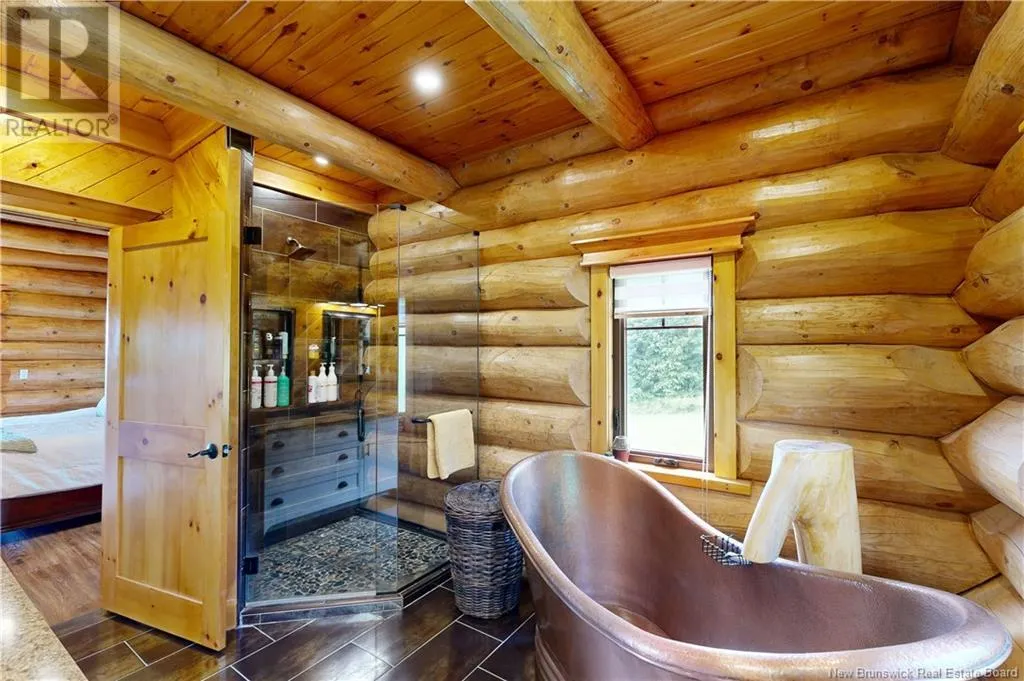 Just 2 minutes from Woodstock and the TCH, this stunning 3.3-acre property offers the perfect blend of rustic charm and luxury living. The custom log home features a massive great room with soaring 22' ceilings and 2 sided propane fireplace, open to a custom chefs kitchen and dining area. A hidden door leads to a butlers pantry, while the main level also includes a spacious mudroom, laundry, and a showstopping primary suite with a handmade copper tub and unique tile shower. Step outside to enjoy two covered porches and a large back deck with a hot tub. Upstairs boasts 3 large bedrooms, full bath, office, den, and a striking catwalk overlooking the main living space. A 3-car fully finished garage with epoxy floor, full basement with overhead door, ducted heat pump, and standby generator complete this one-of-a-kind dream home. (id:27476)
