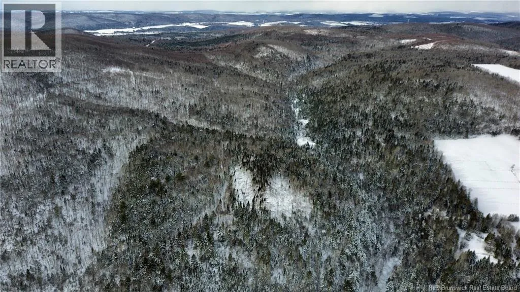 From Florenceville-Bristol stay on Route 105 through Bath NB to Muniac Rd. Stay on Muniac Rd for approx 2.4 kms and then Slight left on to Kintore Rd. approx. 5.5 kms Lot is on the left. From Perth NB take Route 105 through to Muniac Rd., Stay on Muniac Rd for approx 2.4 kms and then Slight left on to Kintore Rd. approx 5.5kms Lot is on the left. 197.4 Acres of Wooded Land featuring mature forest growth and a rich natural setting. The property includes an old structure that is not safe for entry and is being sold as-is. Access is provided via Kintore Road through a registered right-of-way, ensuring legal access to the property. A forest cruise report is available for review done in 2024. Ideal for forestry investment, recreation, or conservation purposes. Limited forestry activities have occurred on the property during the last century. A cutting and replanting of approximately 20 acres took place around 2005, with possible select cutting occurring earlier, potentially in the 1960s. MacDonald Brook runs through the property. Electricity runs from Kintore road to structure. (id:27476)