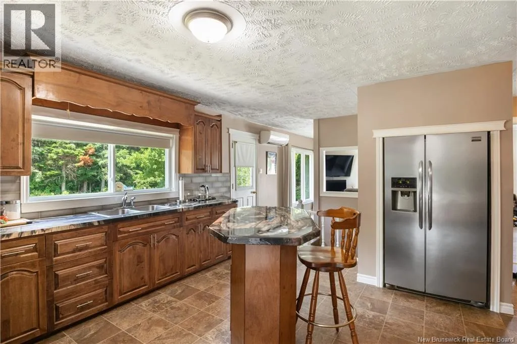 Civic #92 on South Kouchibouguac Rd Welcome to 92 South Kouchibouguac Rd, this bungalow sits on a nice and quiet street and is the perfect starter home. The main level features an entrance area, leading into your newly designed kitchen that features plenty of cabinet space. From here you will be able to access your living room, ideal spot to entertain friends and family. The main level is completed with a full bathroom along side 2 bedrooms. The lower level is partially finished and features a potential third bedrooms (non conforming). The home is heated with the help of a mini split heat pump providing both warmth and AC all while being energy efficient and also features a wood furnace. Outside you will find an immaculately landscaped lot with mature trees, your very own patio with gazebo, multiple large storage sheds and structures along side a large detached garage, ideal for storing cars, ATVs, snowmobiles or use as a potential workshop! Situated in proximity to restaurants, grocery stores, pharmacies, clinics, community centres, banks and many local schools just to name a few! Plenty of tourist attractions in the area the Kouchibouguac national park 5 minutes away where a series of Summer and winter activities awaits! Roughly 55 minutes to Moncton and 35 minutes to Miramichi, this place makes it quick and easy to get to a major cities & access major retail stores such as Costco. Multiple rivers in the area, where you can boat, canoe, jetski & kayak and enjoy the beach. (id:27476)
