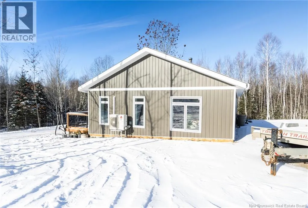 TCH to Exit 253 for Kings Landing / Lake George - continue on rte 635 past Dennys to civic on right Discover peaceful rural living with this affordable and newly constructed 2 bed / 1 bath bungalow setting on 13 acres for total privacy. Crafted with ICF construction for exceptional year round energy efficiency this contemporary style home is fresh & bright making it perfect for relaxed country living. The one level layout consists of an open concept kitchen& dining, living room, 2 good sized bedrooms, full bath and large mudroom / laundry area at rear. This home has a nice curb appeal with it's full length deck at front and covered entryway and is complimented with On demand hot water, a cozy woodstove, & ductless mini split heat pump. As an added bonus the home is completely solar powered for extra efficiency (connection to the grid can be done). Wether you're just getting started or ready to downsize, this quiet retreat offers a chance for a manageable homestead or simple rural tranquility that's located just 25 mins west of Fredericton in a desirable countryside setting. Move-in ready & built to last. (id:27476)