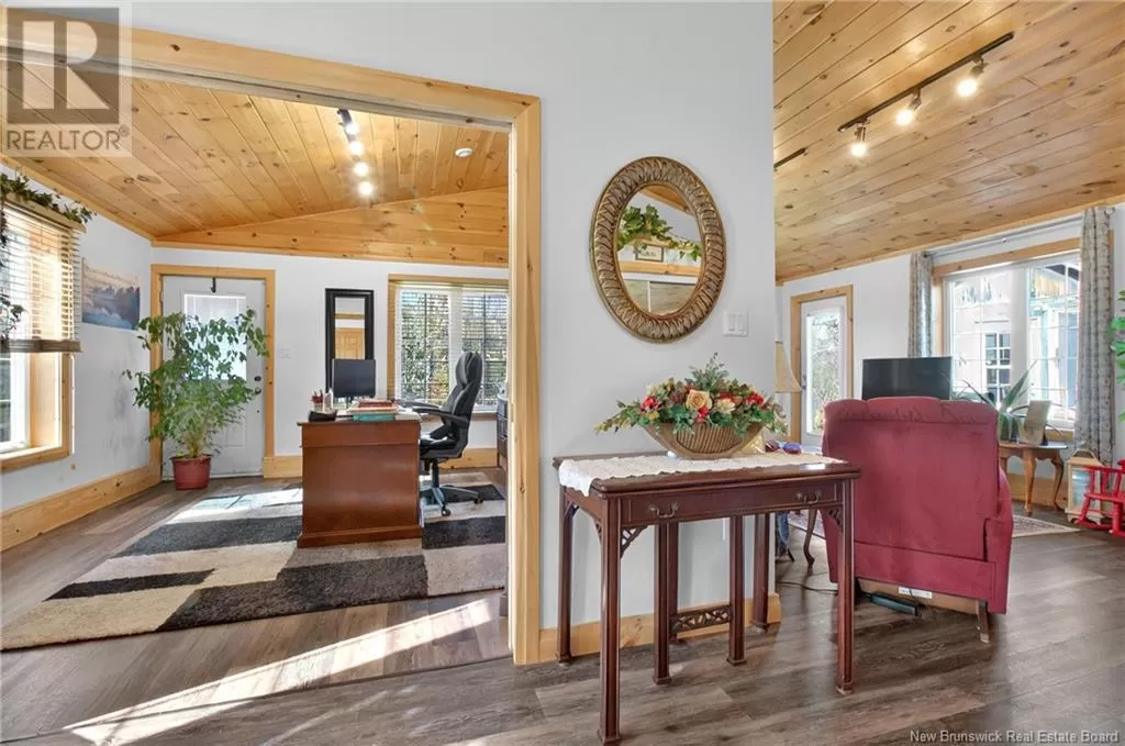 Take Dieppe Blvd for approximately 4.3 km. At the roundabout, take the third exit onto Melanson Road. Continue for 800 m, the destination will be on your right. 1 000 $ bonus for potential buyers (payable at closing, to cover legal fees). Location, privacy, and peace just minutes from Dieppe! Set on 1.67 acres, this charming home is surrounded by mature trees, offering rare privacy in a peaceful country setting. A perfect blend of quiet living and easy access to the city. Step into a home that instantly feels like the ONE. With 3 bedrooms, 2 full bathrooms, and two inviting living areas, every room is thoughtfully designed for comfort, flow, and connection. Just off the entrance, a serene office with its own private access sets the tone ideal as a workspace, studio, or easily converted into a 4th bedroom. Cathedral ceilings elevate the ambiance as you move toward the heart of the home: a warm, light-filled kitchen that opens onto a second living room perfect for gathering, relaxing, and creating lasting memories. This property has been extensively upgraded for comfort and peace of mind: In-floor heating in two sections, three mini-splits (2019), enhanced R60/R40 insulation, new windows, fireplace (2017), and pressure-treated decks. The roof on sections 1 and 2 was redone 8 years ago, and a new deck was recently added. Step outside to enjoy the screened-in gazebo, your private retreat to soak in the quiet surroundings. This isn't just a house it's a lifestyle. Come experience it. (id:27476)