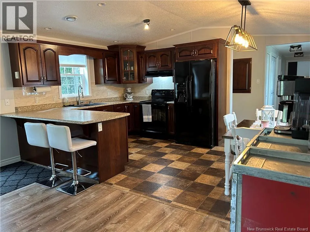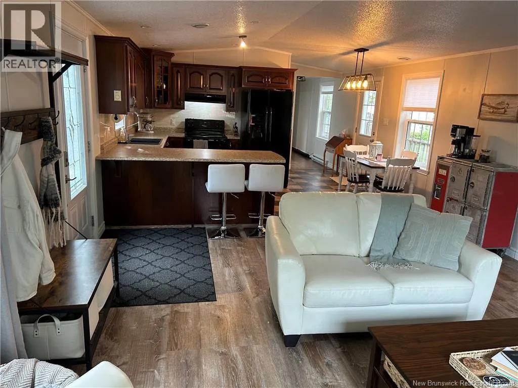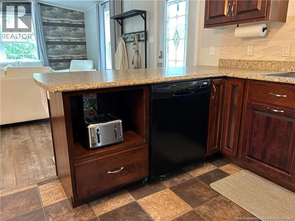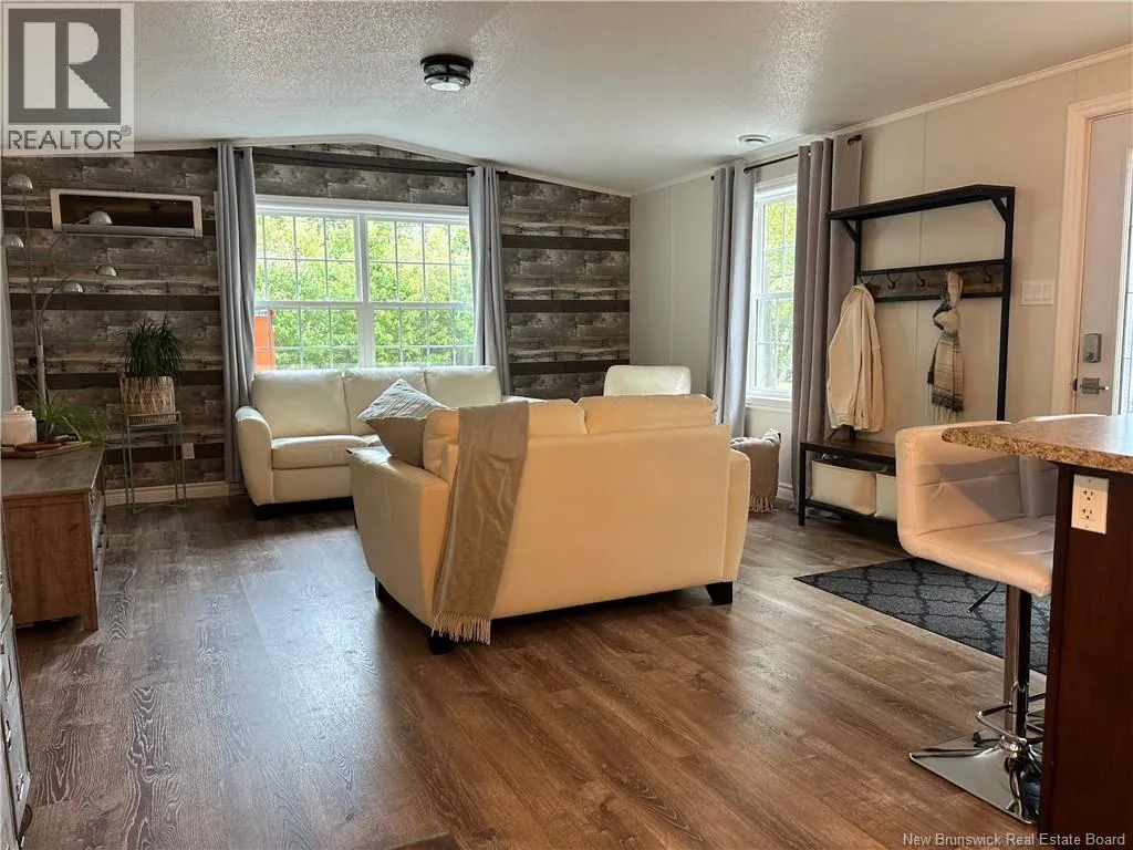 Shediac rd travelling East up to Lakeville. Take Weisner rd all the way down to Kenshaw on your right. Turn on and McNulty at the stop sign, turn right and civic will be on your left. Beautiful, WHEEL CHAIR ACCESSIBLE minihome on OWNED LAND! You will love the location tucked back in a semi private area with a forest view, parklike surroundings and low traffic movement. Drive up and be pleasantly surprised by the oversized paved driveway (inviting all the family to come visit), an appealing storage shed (that may become an awesome mancave or 'she shed!'), and a wheelchair ramp leading to a spacious patio for your outdoor entertainment and bbq's. Inside opens up with cathedral ceiling to a cozy inviting Livingroom with large picture window, feature wall, minisplit and plenty of room to hang your coat and sit and relax. The open concept walks you right into the eat in kitchen with seating area breakfast peninsula, spacious floor plan to add a coffee counter, room for dining table next to window allowing the natural light in, accessible cabinetry with microwave nook, lower drawers and corner doors, ample upper space, black appliances and deep stainless farmhouse sink. Down the hall offers back door foyer area, large 3 pc bath with wheel chair accessible shower and ample cabinetry. The hallway has your laundry closet, pantry closet, access to the first spacious bedroom and the primary at the end of the hall waiting for your king size bed and belongings. Built with larger doors, ample floor space, large windows and lots of storage makes this home a pleasure to view. (id:27476)