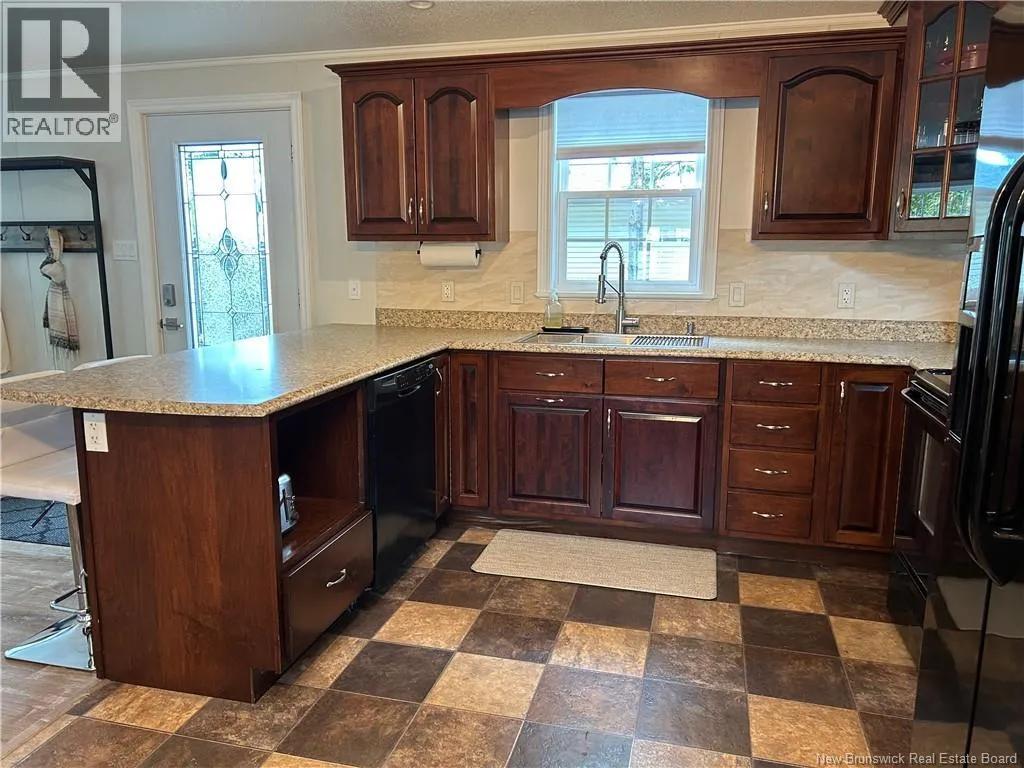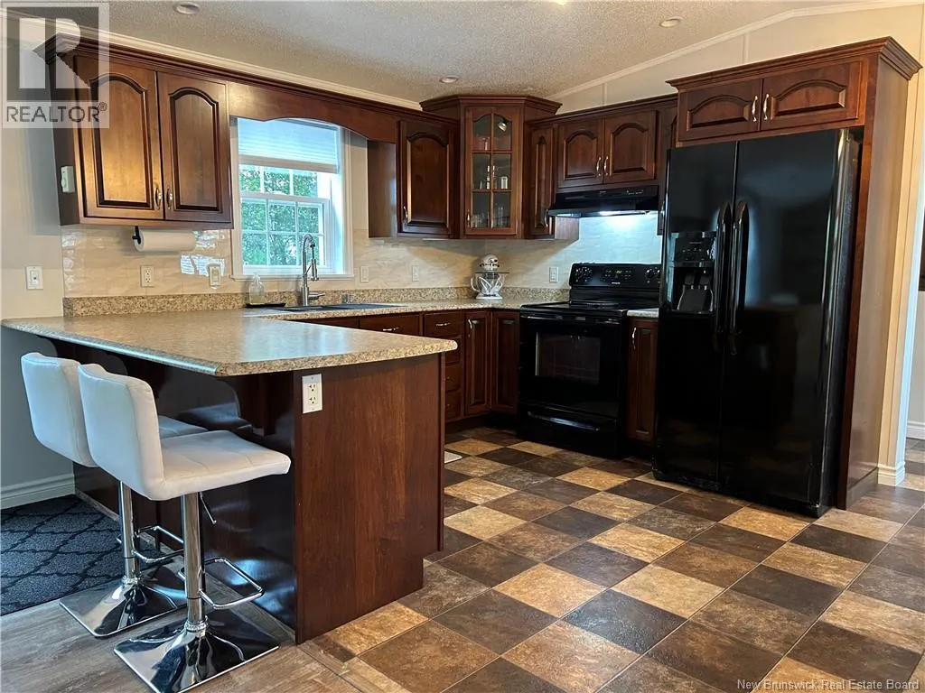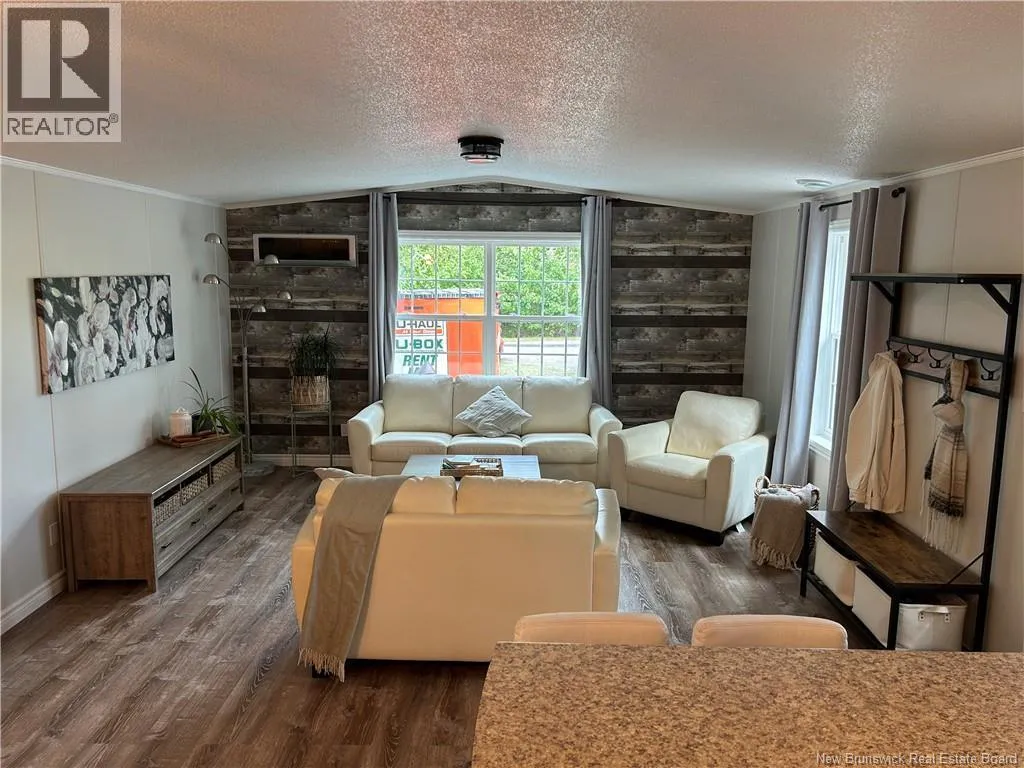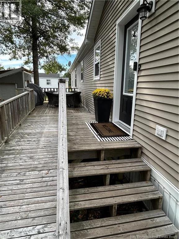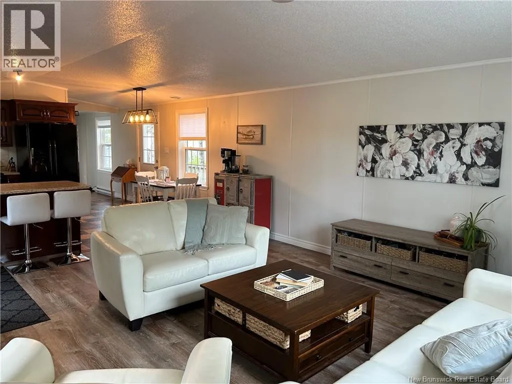 Shediac rd travelling East up to Lakeville. Take Weisner rd all the way down to Kenshaw on your right. Turn on and McNulty at the stop sign, turn right and civic will be on your left. Beautiful, WHEEL CHAIR ACCESSIBLE minihome on OWNED LAND! You will love the location tucked back in a semi private area with a forest view, parklike surroundings and low traffic movement. Drive up and be pleasantly surprised by the oversized paved driveway (inviting all the family to come visit), an appealing storage shed (that may become an awesome mancave or 'she shed!'), and a wheelchair ramp leading to a spacious patio for your outdoor entertainment and bbq's. Inside opens up with cathedral ceiling to a cozy inviting Livingroom with large picture window, feature wall, minisplit and plenty of room to hang your coat and sit and relax. The open concept walks you right into the eat in kitchen with seating area breakfast peninsula, spacious floor plan to add a coffee counter, room for dining table next to window allowing the natural light in, accessible cabinetry with microwave nook, lower drawers and corner doors, ample upper space, black appliances and deep stainless farmhouse sink. Down the hall offers back door foyer area, large 3 pc bath with wheel chair accessible shower and ample cabinetry. The hallway has your laundry closet, pantry closet, access to the first spacious bedroom and the primary at the end of the hall waiting for your king size bed and belongings. Built with larger doors, ample floor space, large windows and lots of storage makes this home a pleasure to view. (id:27476)