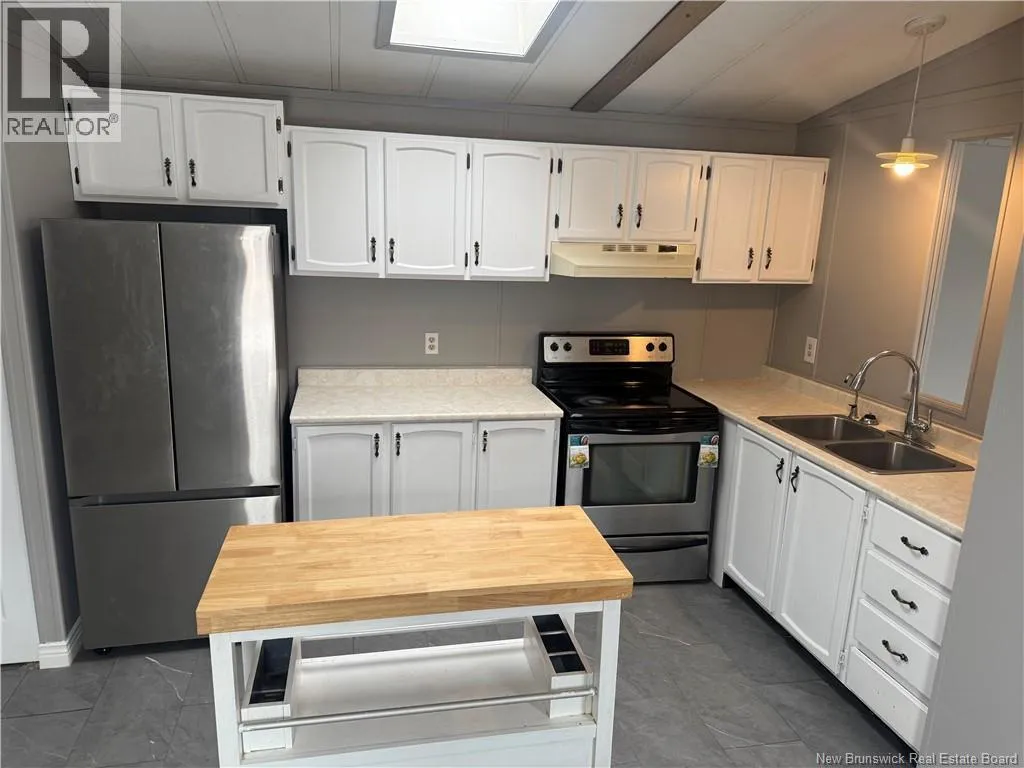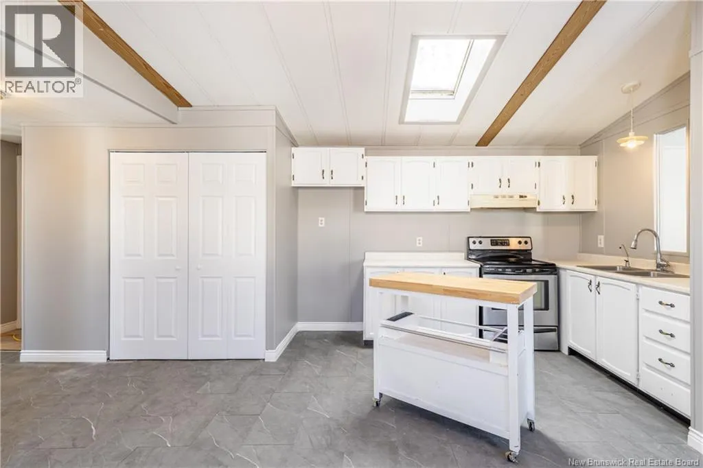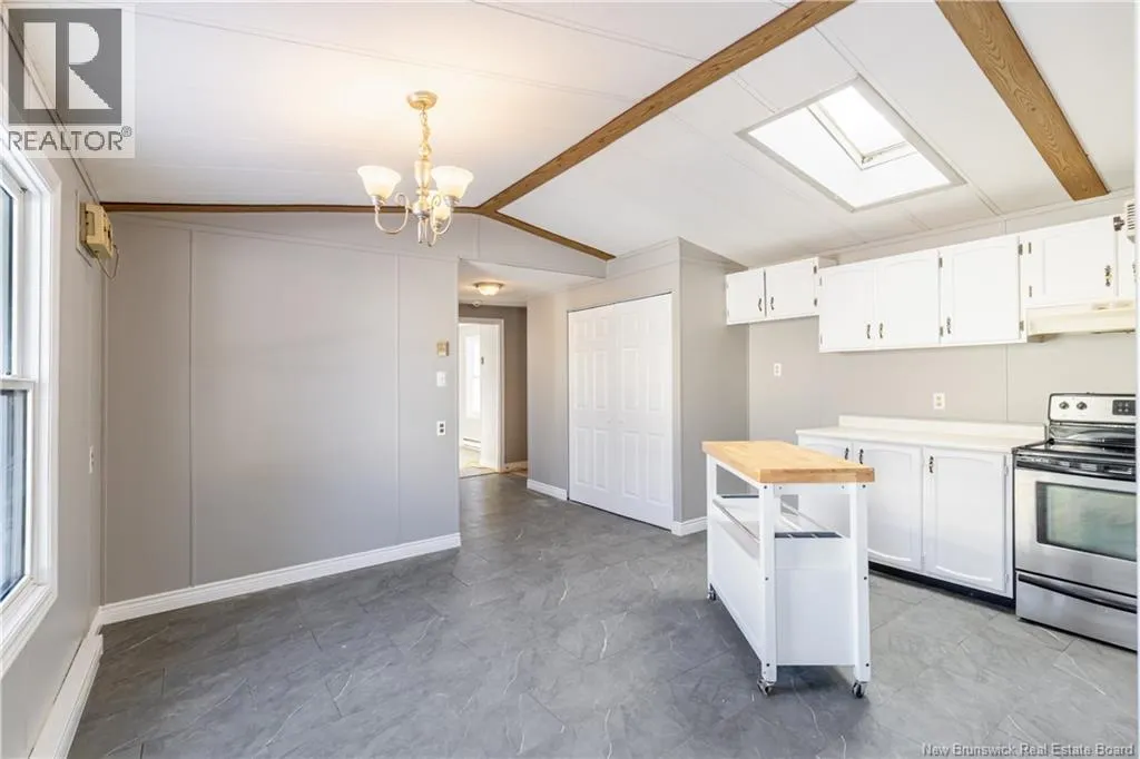 Lincoln Road to Tamarack Drive to Glenrose Street, to Roy Street, civic #6 Located on a quiet street in the Tamarack neighbourhood of Lincoln, this renovated three-bedroom mini home offers an excellent opportunity for affordable living. Conveniently situated between Fredericton & Oromocto, the property provides easy access to both communities & nearby amenities. The home features a bright, open-concept kitchen & dining area with a cathedral ceiling, a skylight, & white cabinetry, creating an airy & welcoming atmosphere. From the kitchen, the layout flows naturally through the home, offering both functionality & comfort. Down the hall, youll find a laundry area, a full bathroom complete with a jetted tub/shower, & two of the three bedrooms. On the opposite end of the home is the spacious living room, offering plenty of room for daily living, while the generously sized primary bedroom provides a comfortable & private retreat from the rest of the home. 2026 upgrades include fresh paint throughout, updated flooring, new interior trim, doors, & baseboards, new baseboard heaters, & additional improvements that enhance both comfort & efficiency. Outside, the property offers a large front deck, a storage shed, & a double-wide gravel driveway. A well-maintained home that delivers great value in todays market, ideal for those seeking a cost-effective housing solution. (id:27476)