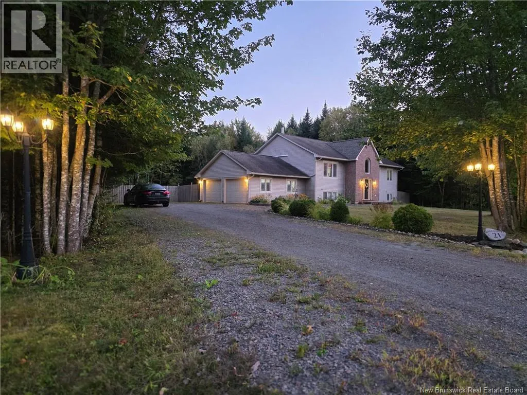Enter Benerin Court from Route 655. Turn left onto 21 Benerin Court. Contemporary Comfort Meets Rural Charm- Experience the best of both worlds in this gorgeous home. Nestled on over an acre lot within a prestigious, family-oriented community this impressive 3000+ square foot home home is located just minutes from the town of Oromocto, the NB Trail System, easy access to the Trans Canada Highway and a short 15 minute commute to Fredericton, Costco and Walmart. The home welcomes you with a spacious foyer that leads into a refined, semi-open-concept living area. The heart of the home is anchored by a magnificent floor-to-ceiling fireplace with a high-efficiency wood insert, creating a warm and inviting atmosphere. The kitchen is a standout feature, offering an abundance of cabinetry, extensive counter space, and an oversized island ideal for hosting and daily family life. This level also includes a laundry room and three well-appointed bedrooms, including a master complete with a private ensuite and a walk-in closet. The fully finished lower level features a sprawling family room, a full bathroom, a fourth and fifth bedroom(non-conforming) or use the space as an exceptionally large recreation room. Practicality is prioritized with a walk-in storage room, a utility room, and a walk-out entrance leading to the 24x22 attached double-car garage. The exterior is designed for leisure and privacy. The fully-fenced in backyard serves as a secluded retreat, featuring a private deck positioned for maximum sun exposure and a 24-foot above-ground pool. (id:27476)